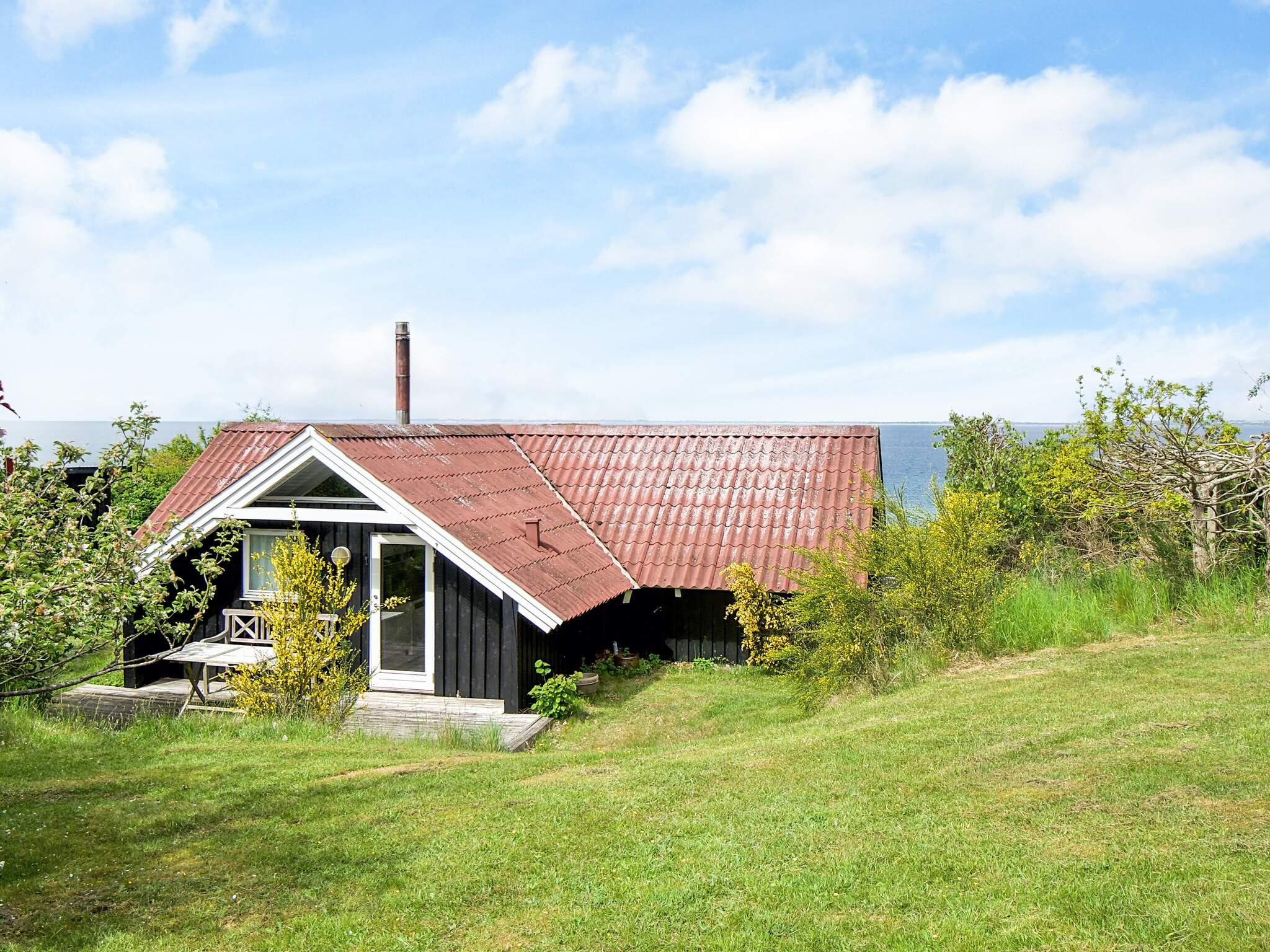 Sommerhus i Veddinge Bakker med panoramaudsigt over vand og afskærmet have, perfekt til en afslappende ferie.