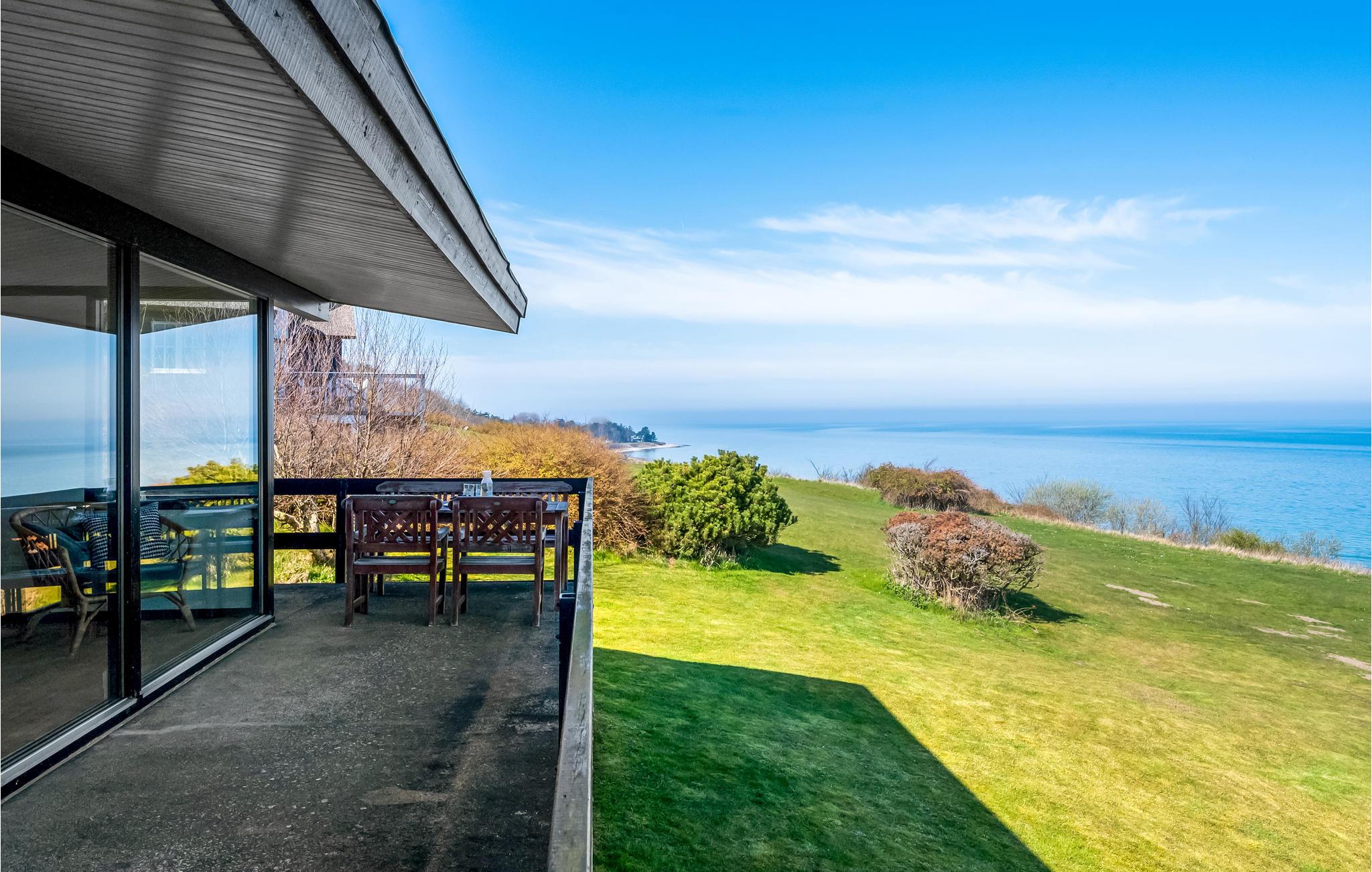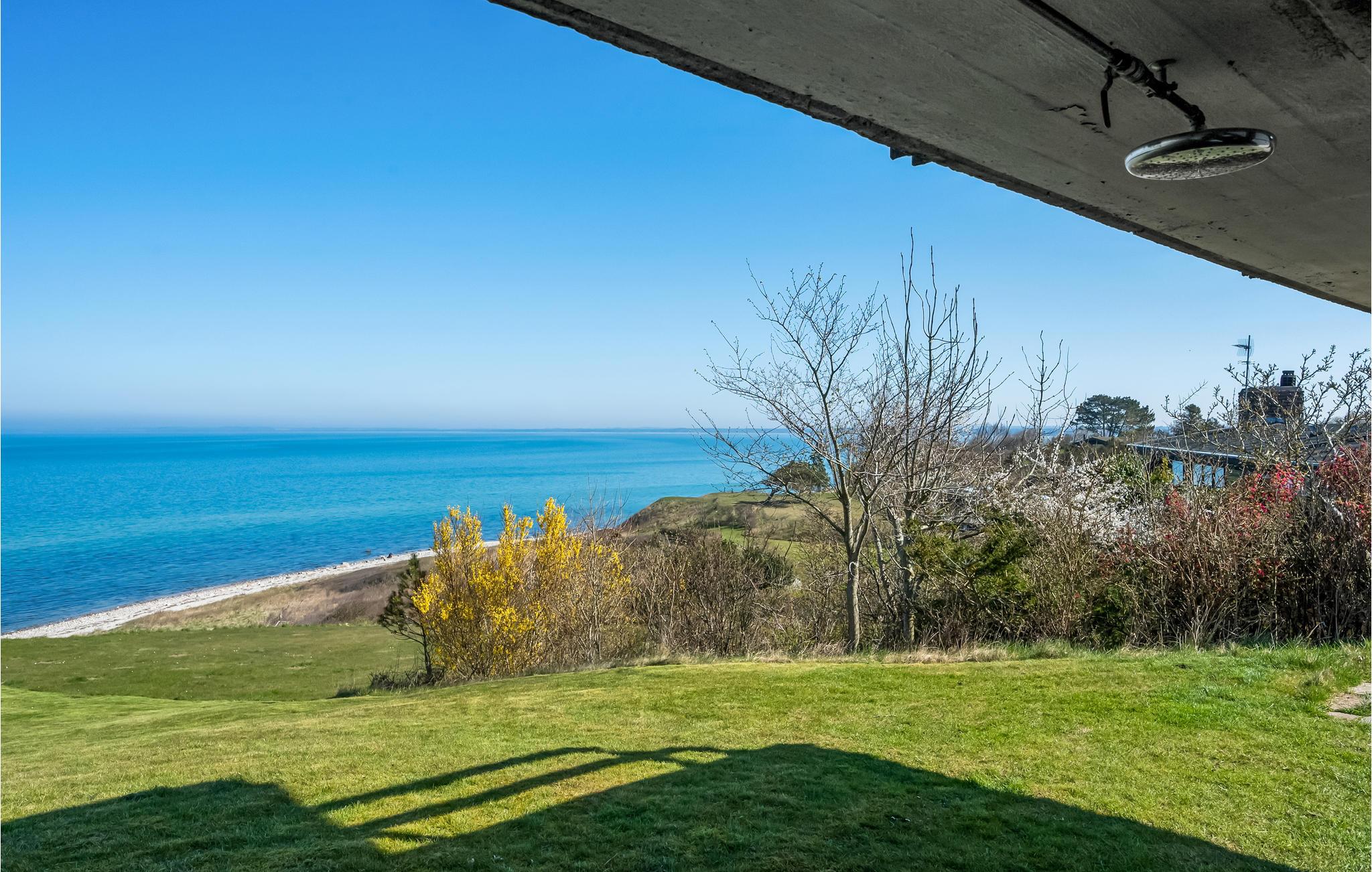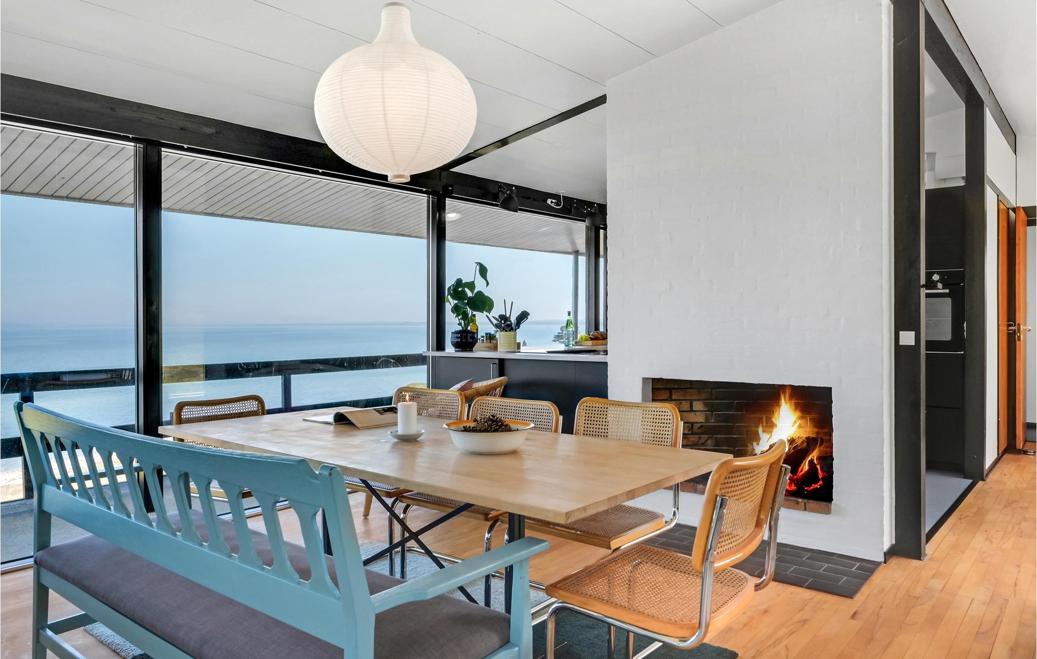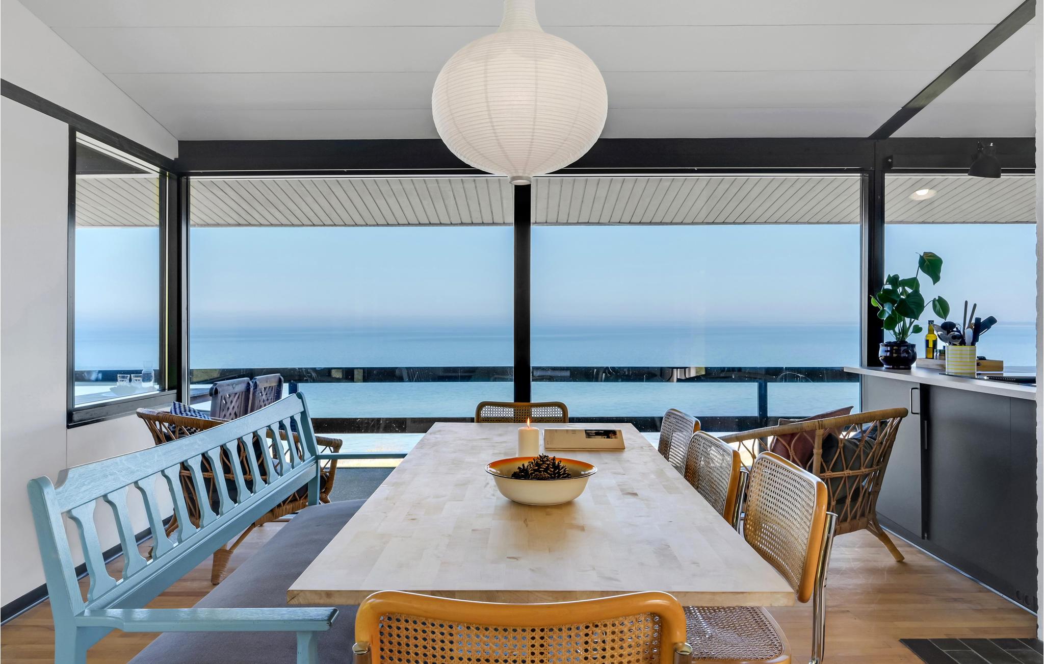 Nyd panoramaudsigt og direkte adgang til stranden i dette arkitekttegnede sommerhus ved Veddinge Bakker.