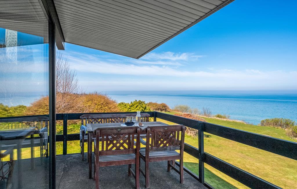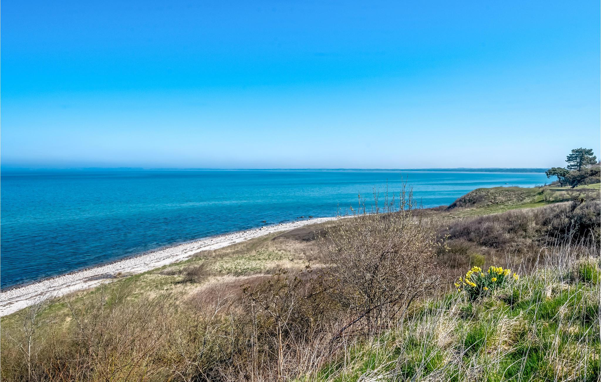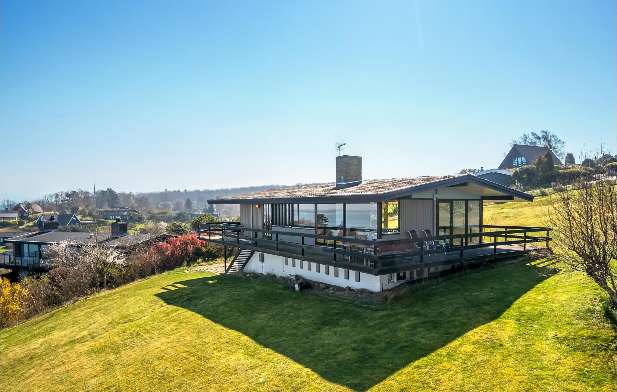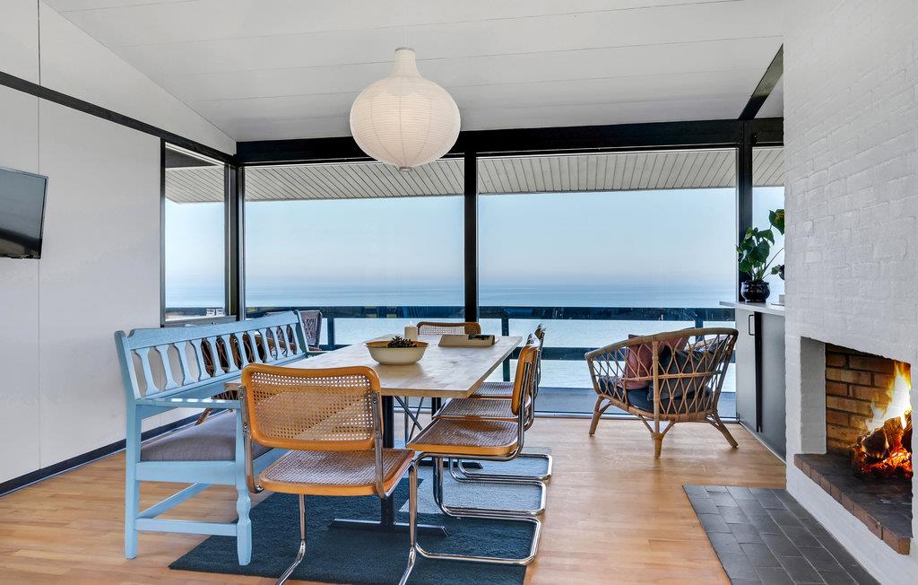 Nyd panoramaudsigt og direkte adgang til stranden i dette arkitekttegnede sommerhus ved Veddinge Bakker.