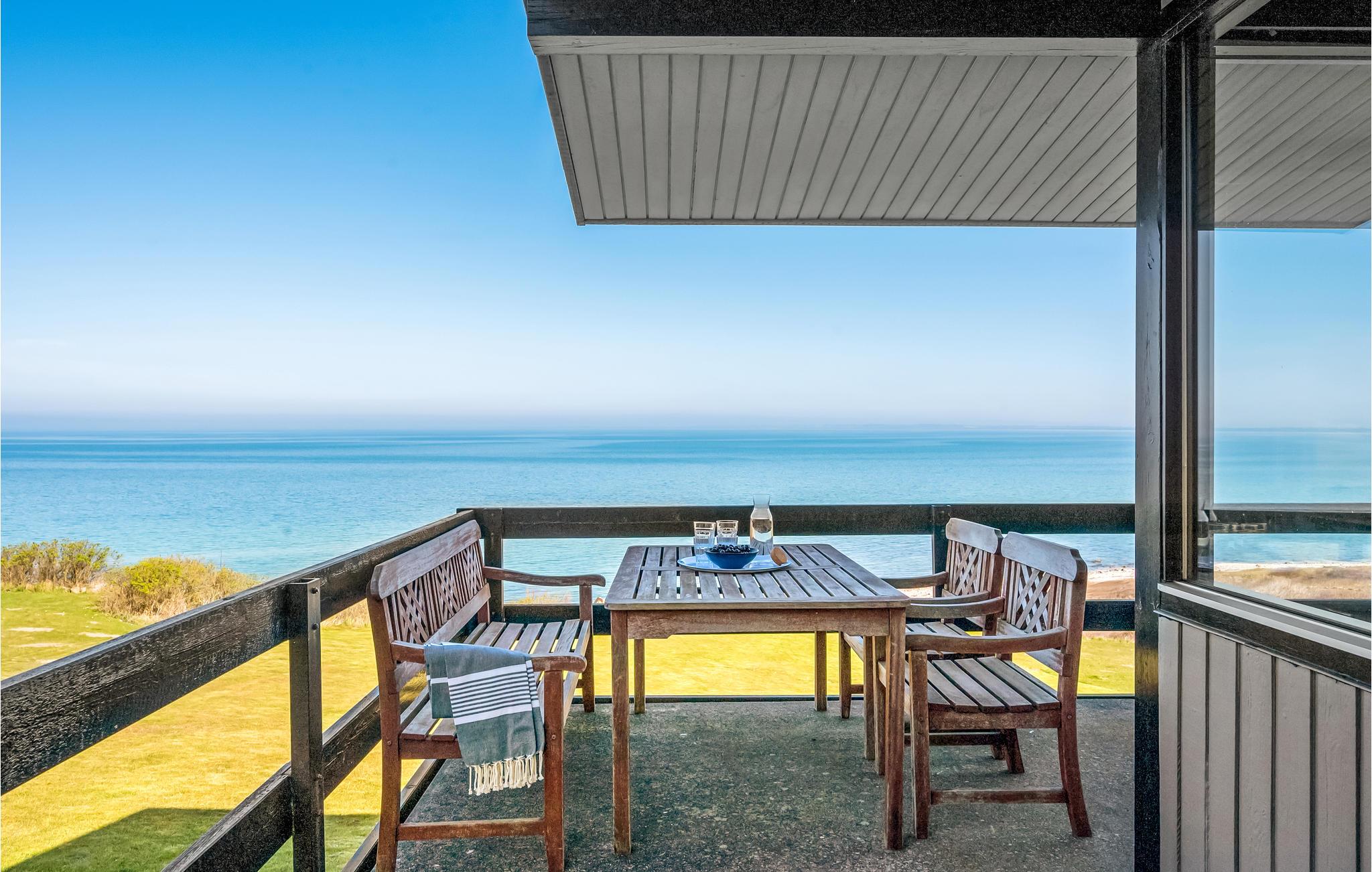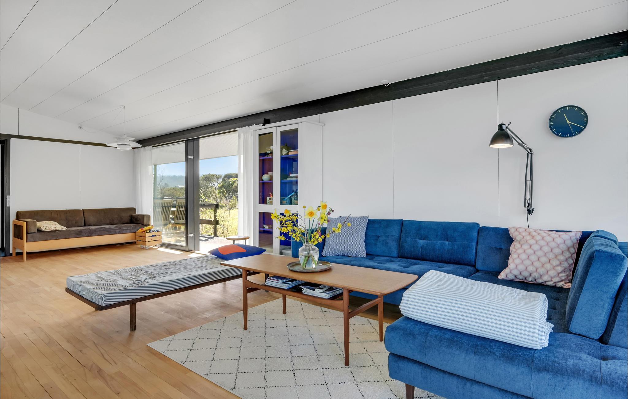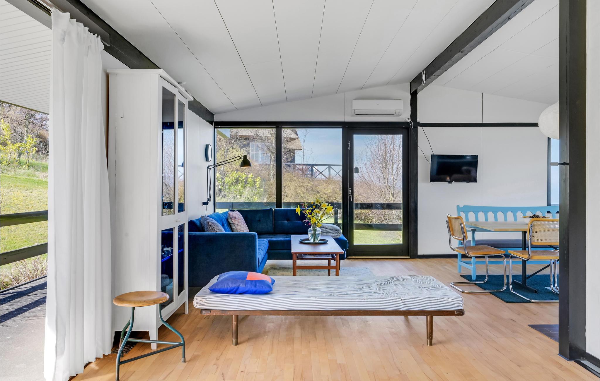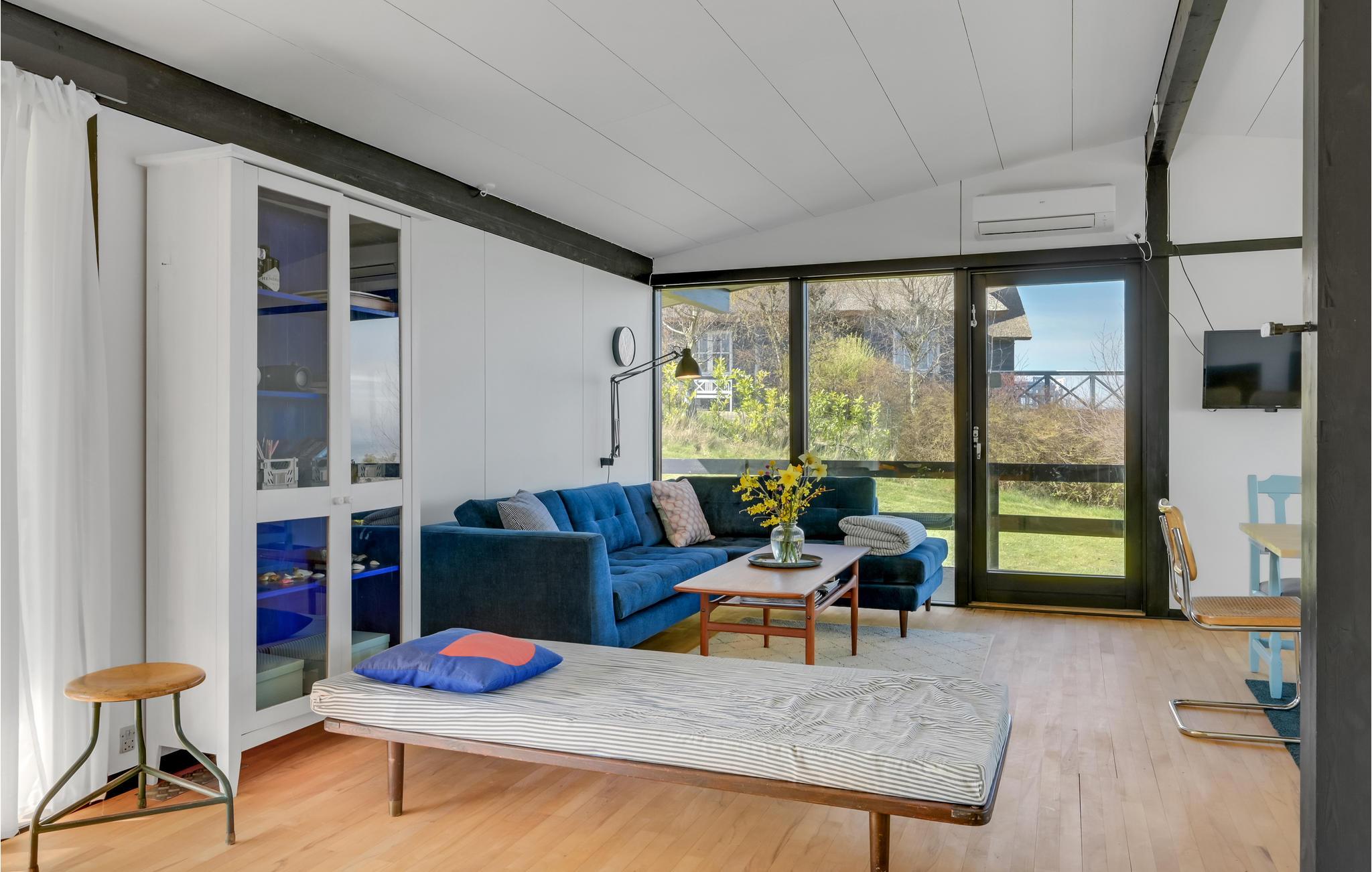 Nyd panoramaudsigt og direkte adgang til stranden i dette arkitekttegnede sommerhus ved Veddinge Bakker.