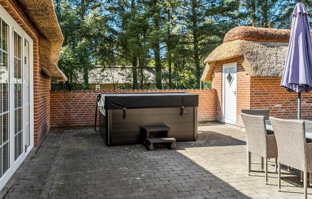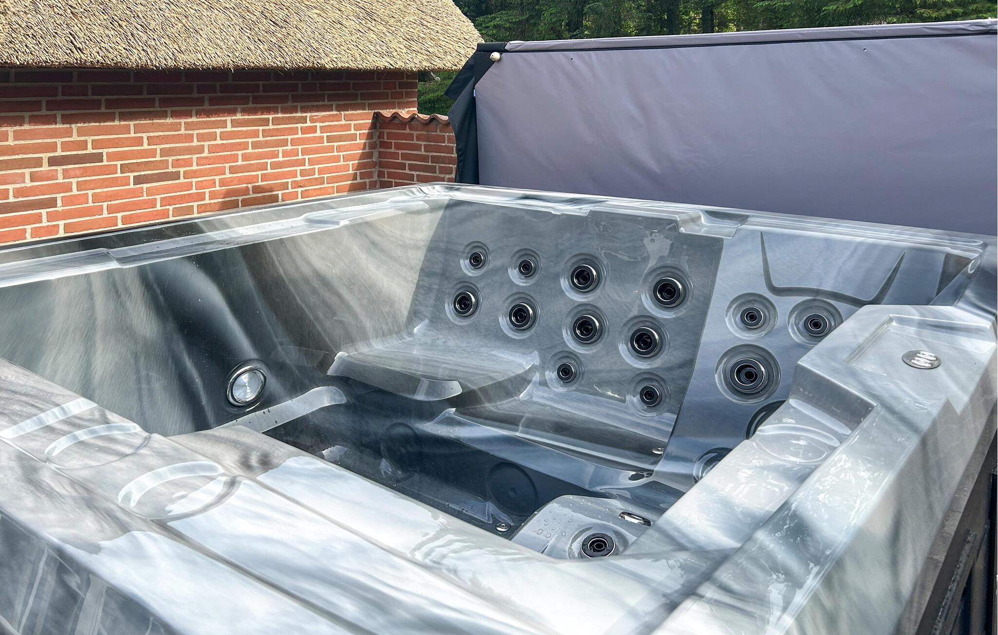 På den solrige terrasse kan I grille og spise udendørs med en stor gruppe, mens jeres små gæster nyder de forskellige legemuligheder i den store have. Forkæl jer selv med en afslappende oplevelse i spabadet og nyd solen på de behagelige liggestole.