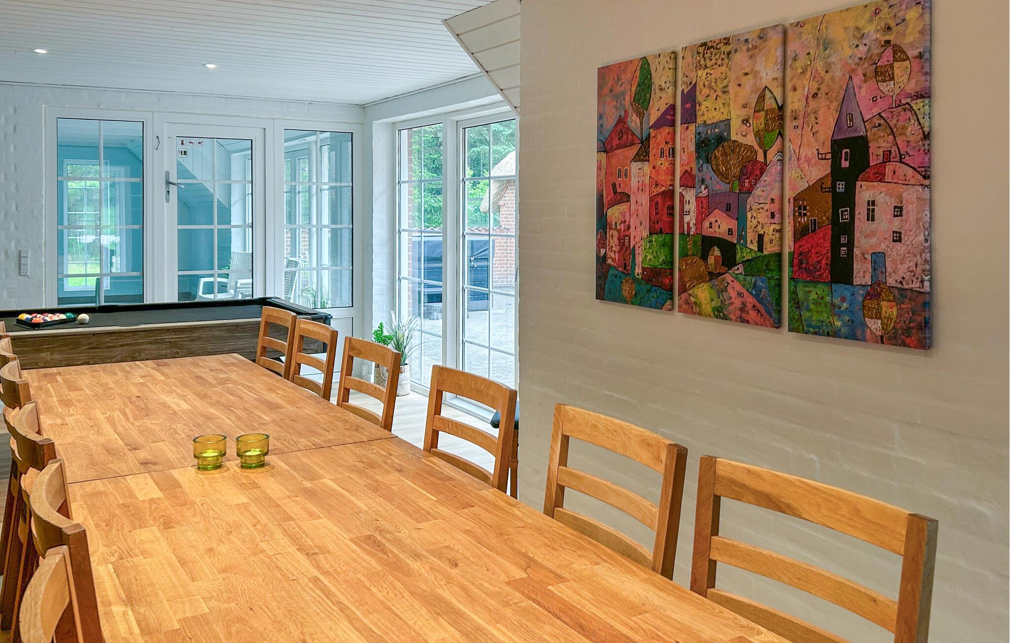 Velkommen til dette komfortable bondehus, udstyret med mange fantastiske ekstrafunktioner, som tilbyder jer den optimale base for afslappede familiesammenkomster eller ferier med venner. Glæd jer til fælles madlavningsaftener og hyggelige måltider ved det lange spisebord. Lær børnene at svømme i poolen, nyde rolige øjeblikke i saunaen, spille PlayStation eller billard eller streame en spændende film.