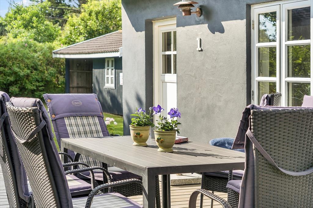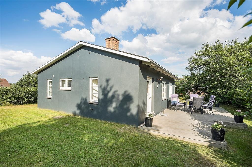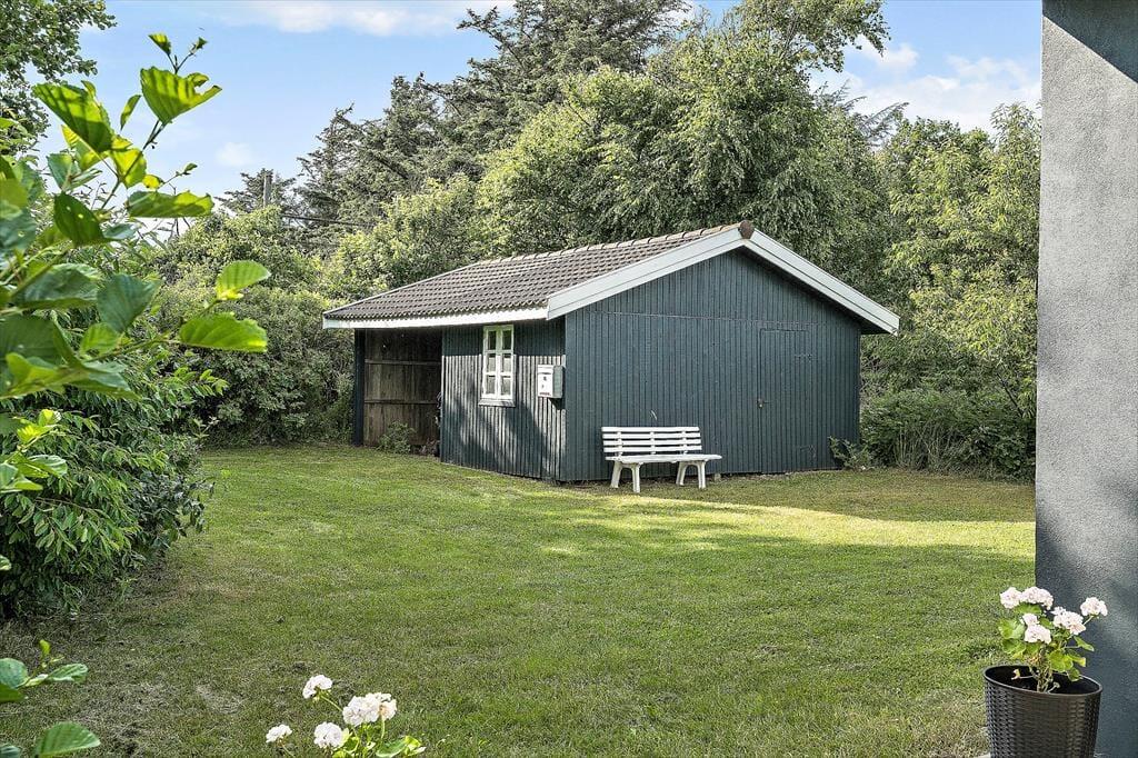 Det charmende sommerhus er placeret på en smuk grund der er lettere afskærmet fra naboer med træer og buske, I vil dog stadigvæk have mulighed for at kunne hilse på de andre sommerhus-lejere. På grunden har I også masser af plads til boldspil eller leg, og når I har fået sved på panden i den friske luft, kan I slå jer ned på den sydvest vendte terrasse og nyde solens sidste stråler eller I kan tage aftensmaden med udenfor og nyde den under åben himmel.