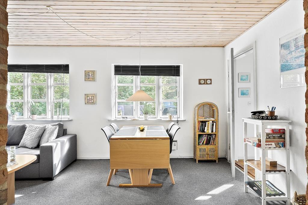 Træd ind i dette søde mindre sommerhus, her kommer I tæt på hinanden og kan virkelig nyde hinandens selskab, så tag den lille familie med, og træk stikket fra hverdagens trummerum og nyd freden der hersker over huset. Sæt jer i den hyggelige stue og glem ikke at tænde op for den ældre og utroligt charmerende brændeovn, så kan I nyde dens dejlige varme stråler og hyggelige knitrende lyd der spreder sig i rummet, imens I hører det flotte ældre urs tikken der virker beroligende. På trods af husets mindre størrelse har I god plads i køkkenet til at kaste jer ud i diverse opskrifter.