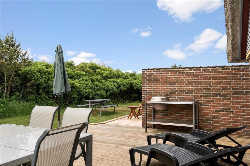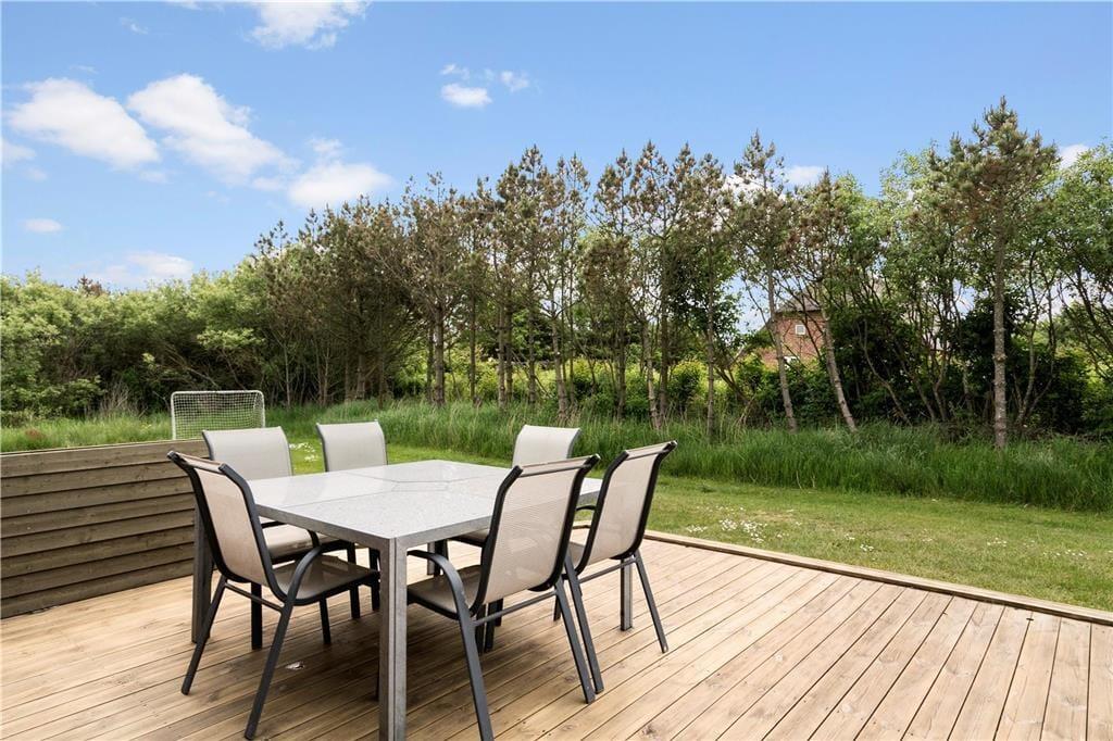 Huset finder I, i det naturskønne feriehusområde Vedersø Klit, her finder i masser af smuk natur og ikke langt fra huset, blot 900 meter, finder I en dejlig badestrand med Blåt Flag ved det skønne Vesterhav, så tag håndklædet under armen og begiv jer mod stranden. Få kilometer fra huset finder I også Husby Klitplantage hvor I kan følge nogle af de mange afmærkede ruter, eller tag en kølig dukkert i den populære badesø. Har I en dag lyst til at se lidt til fuglelivet så smut en tur forbi lavvandede Nissum Fjord som er et vigtigt ynglested for vadefugle og flere steder langs fjorden kan I opleve fredede reservater med et utroligt rigt fugle- og planteliv.