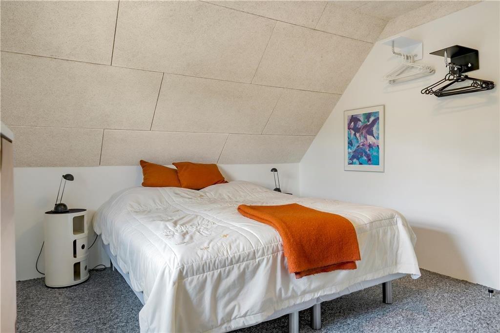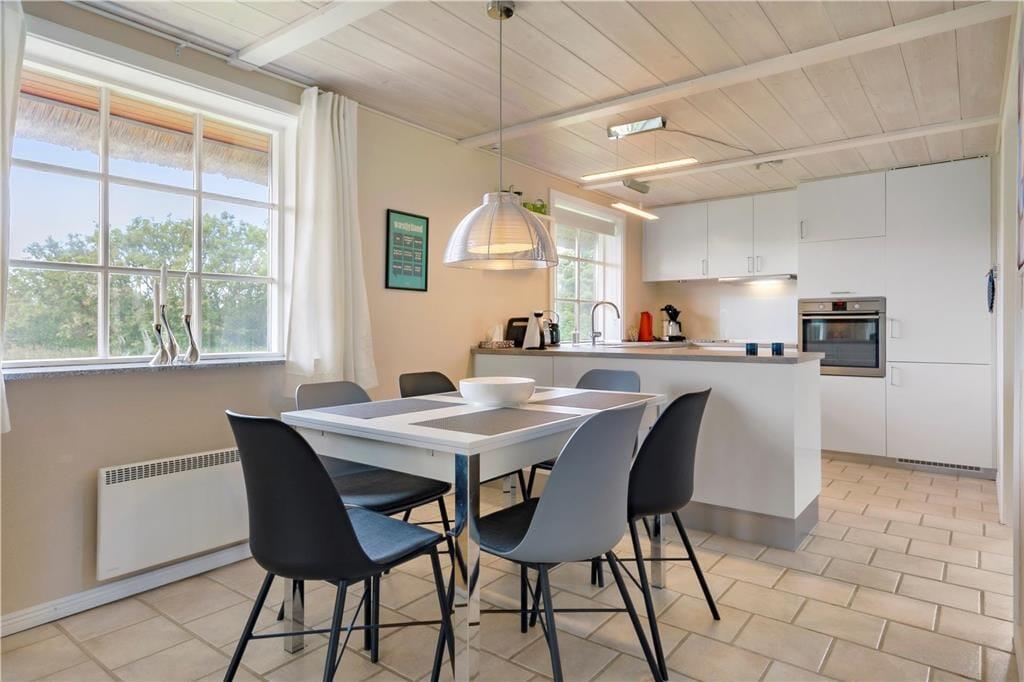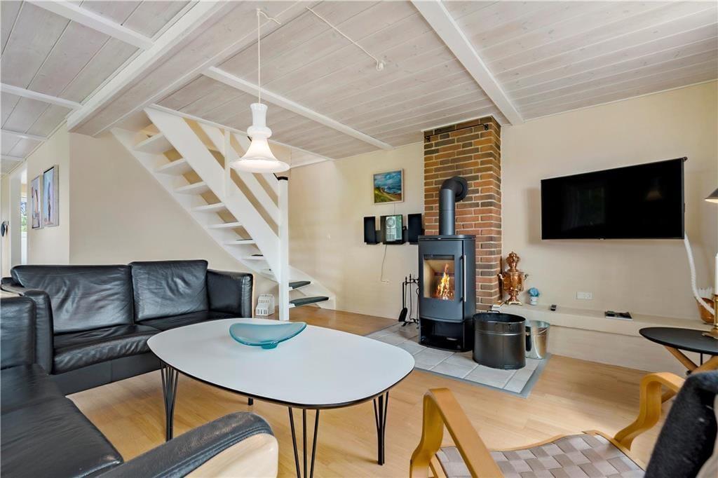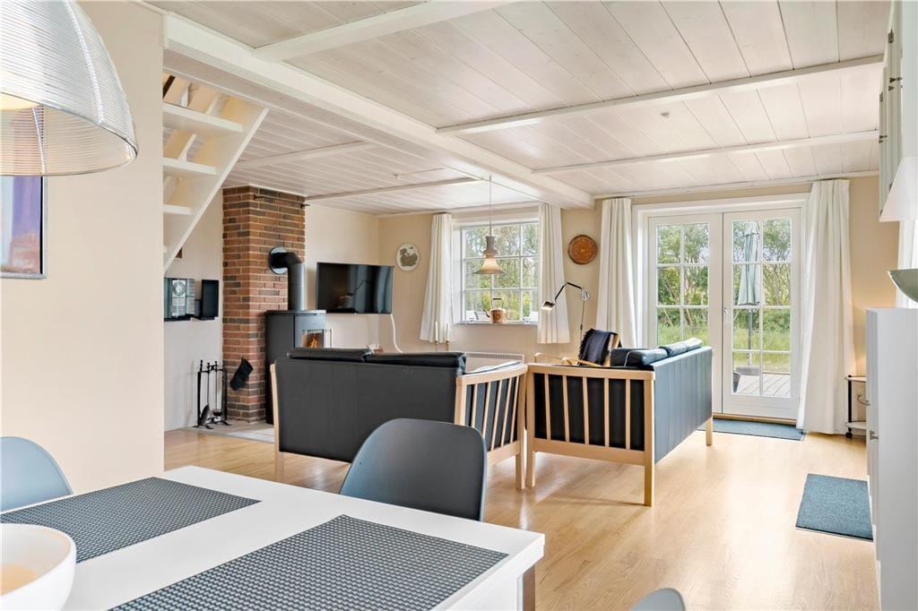 Når I træder ind i dette smukke feriehus, bliver I mødt af et skønt lysindfald der lyser rummene op og giver det en dejlig rolig atmosfære. Det store kombinerede køkken og opholdsstue giver jer mulighed for at være sammen på trods af at aftensmaden skal laves, her kan I stadigvæk være med i den samtale der kører rundt om spisebordet. På de kølige sommeraftner kan I tænde op for den hyggelige brændeovn og nyde dens dejlige varme og behagelige knitrende lyd der spreder sig i rummet. Har I en dag brug for alene tid gør husets værelser det muligt for jer, så træk jer tilbage med en bog eller tag et velfortjent hvil på en af de skønne værelser.