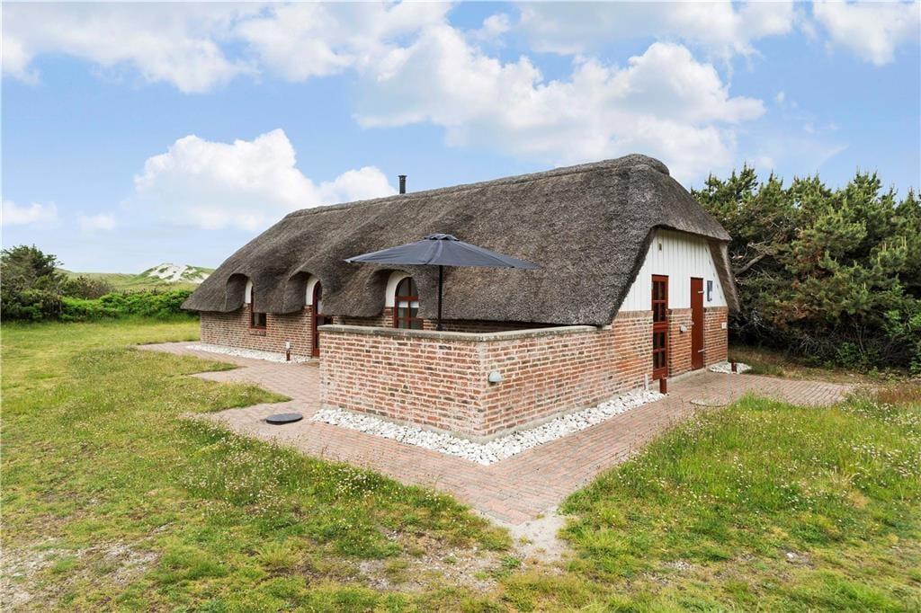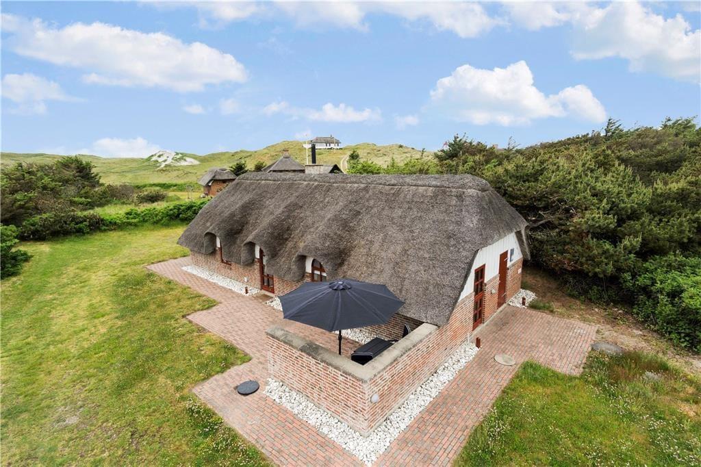 Feriehuset ligger skønt på en herlig naturgrund med en smuk udsigt udover klitterne og i det fjerne kan I hører havets brusende lyd der blander sig med fuglenes kvider. Sæt jer på den vestvendte terrasse og nyd solens stråler imens bøfferne steger på grillen og et dejligt glas vin bliver hældt op, når maden er spist og der er et glas vin tilbage så sæt jer godt til rette og se solen gå ned bag klitterne mod vest, så bliver det ikke meget bedre.