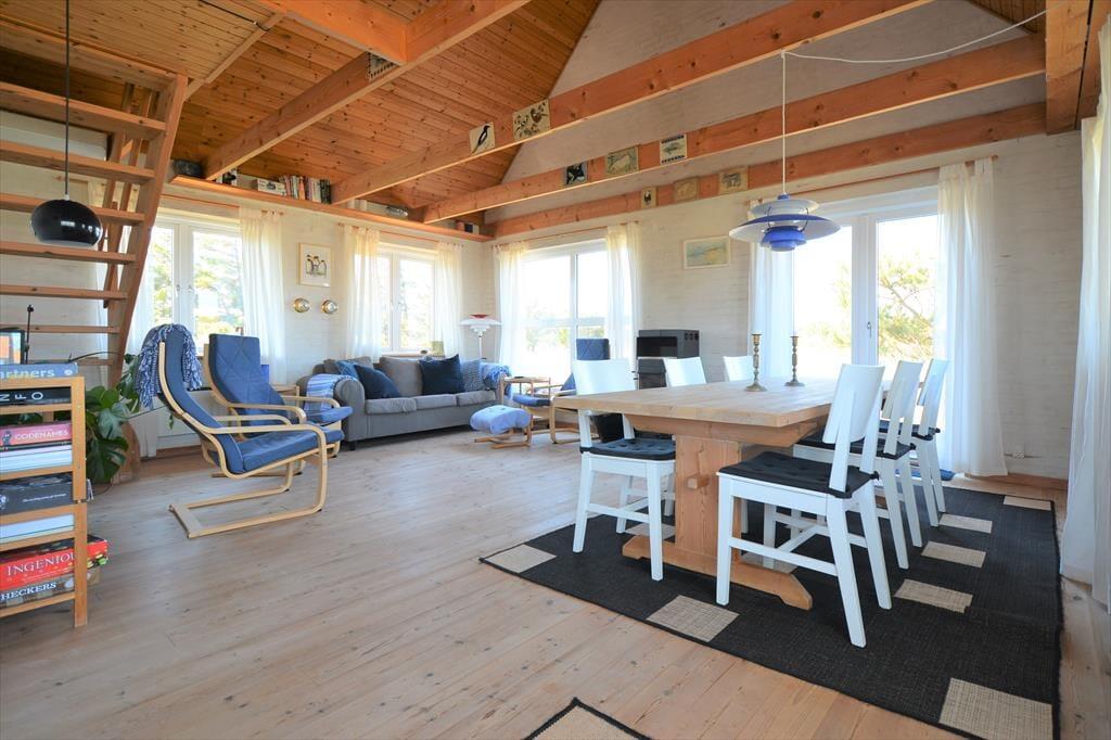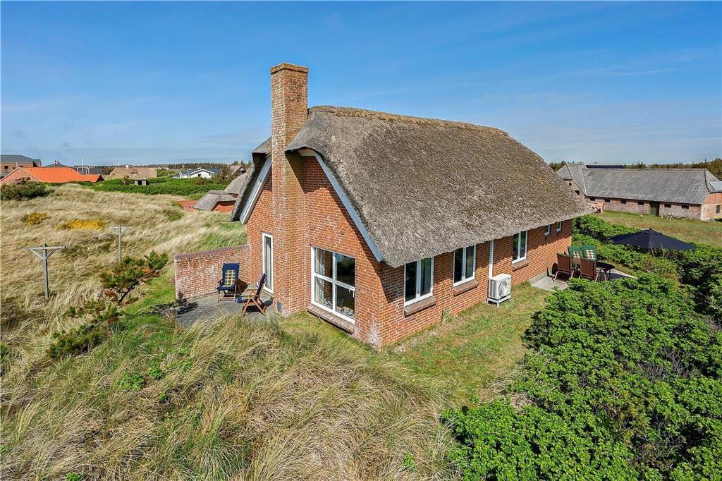 Huset befinder sig på en skøn yderst smuk og kuperet klitgrund, og fordi huset ligger højt har I god udsigt ud over områdets ikoniske sømærke og klitter der bugter sig så langt øjet rækker. Nyd den store grunds mange muligheder og duften af hybenroserne der spreder sig i luften. Sæt jer godt til rette på den sydvestvendte terrasse og nyd den gode udsigt i læ for vinden, og når dagen når sin ende og mørket stille sænker sig kan I nyde et lækkert glas vin og se den smukke solnedgang i det fjerne.