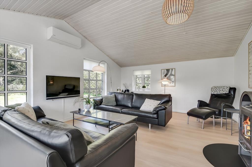 Når I træder ind i dette skønne feriehus, vil den rummelige og lyse indretning straks få skuldrene til at sænke sig. Her er plads til både afslapning og hyggelige stunder med dem, I holder af.