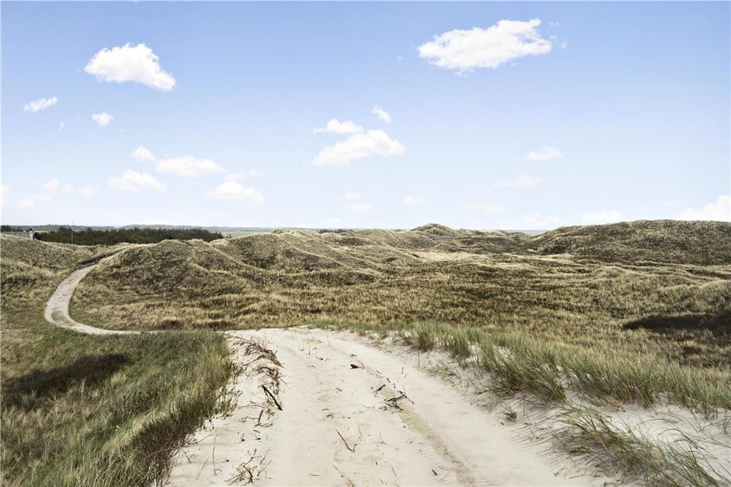 I Vedersø Klit finder I dette skønne feriehus, midt i den smukke vestjyske natur der lever vildt og frodigt, og I har da også kun 350 meter ned til det fantastiske og, til tider, vilde Vesterhav her kan I nyde det kølige blå vand, solbade på stranden eller gå en tur langs vandkanten imens I beundrer den smukke solnedgang i det fjerne. Mulighederne for udendørsaktiviteter er mange for ikke langt fra feriehuset finder I skønne Husby Klitplantage hvor I kan prøve kræfter med orienteringsløb eller blot følge en af de mange vandre- og cykelruter der er i plantagen, men I plantagen finder I også både badesø og hundeskov.