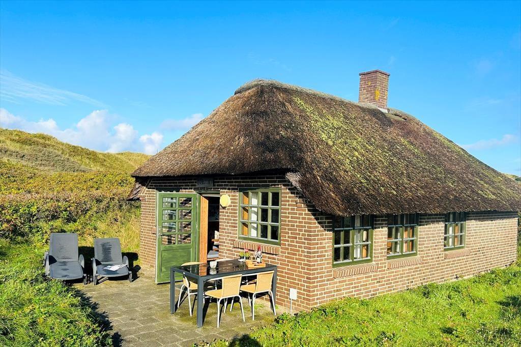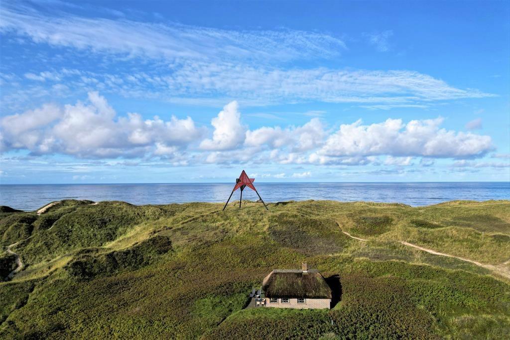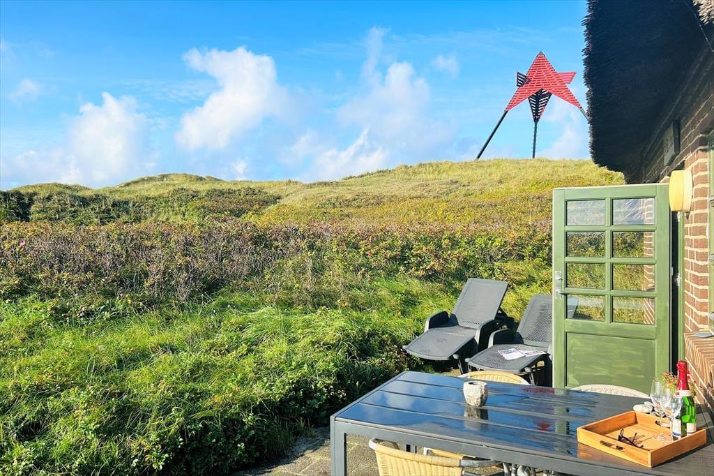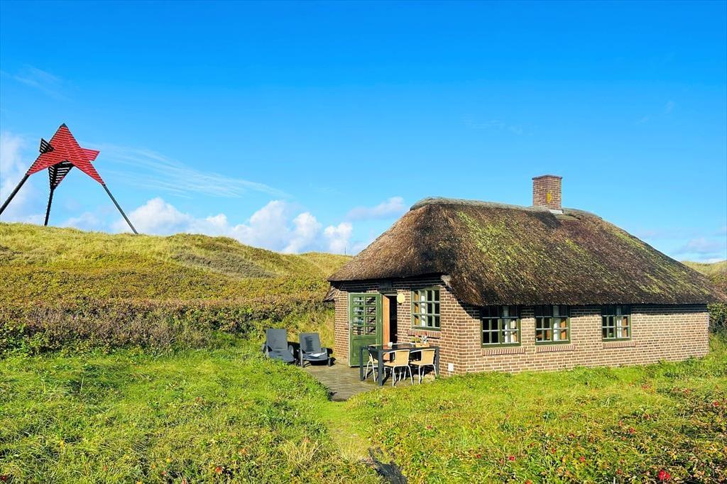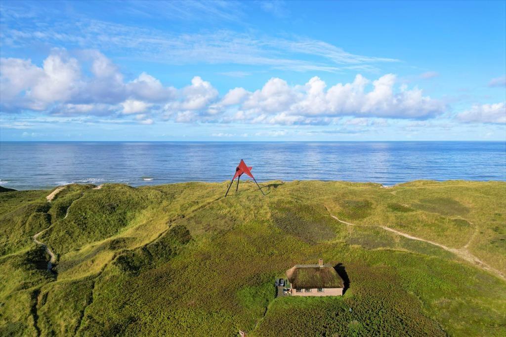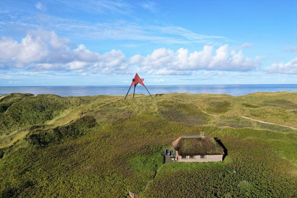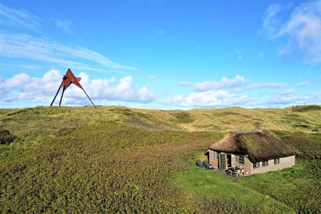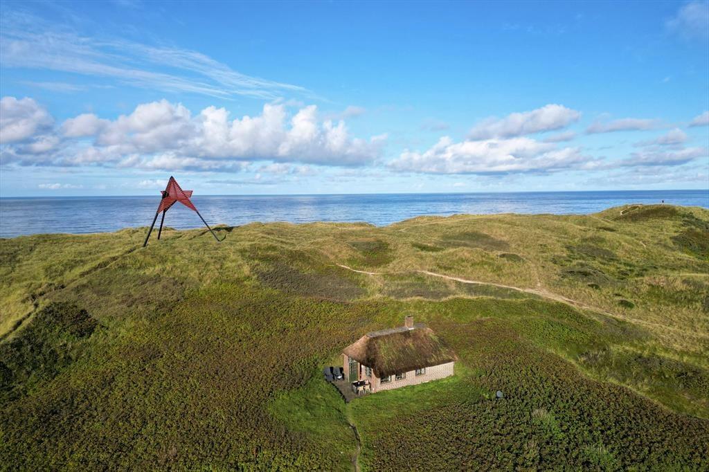 Dette skønne feriehus ligger på en stor naturgrund med direkte adgang ud til et fredet område og med et smuk kig ud til sømærket som er et kendemærke for området. Sæt jer på terrassen og nyd den fantastiske panoramaudsigt ud til klitterne, og når I bliver sultende, kan I tænde op for grillen og smide et par lækre bøffer på imens I nyder den fantastisk solnedgang bag klitterne. Huset ligger godt placeret midt i de skønne klitter, men det betyder også at I skal op at et par trapper for at komme op til huset, og vi vil derfor mene huset ikke er egnet for gangbesværede.