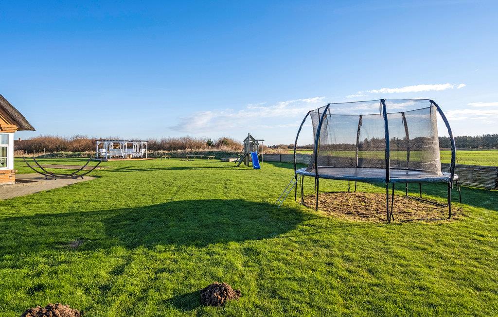 Skønt stråtækt feriehus ved Vedersø med wellness, aktivitetsrum og smuk udsigt over klitter og enge.