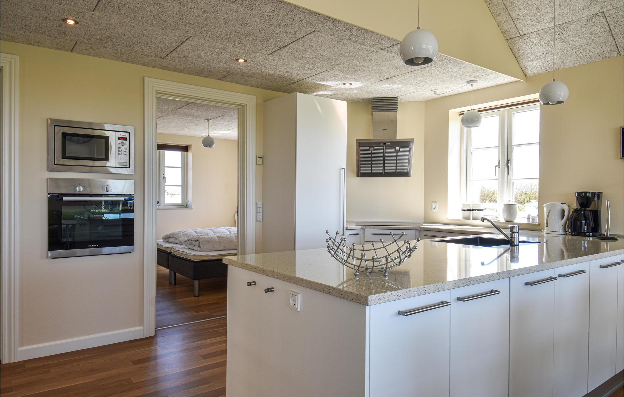 Stråtækt idyl på over 200 m² beliggende med en dejlig udsigt over engene i Vedersø. Huset indeholder alt, hvad I kan ønske jer til en dejlig ferie. Her findes bl.a. et åbent køkken i forbindelse med stuen, der har adgang til terrassen. Et aktivitetsrum, hvor I bl.a. kan hygge jer med et spil pool. Desuden to store badeværelser, hvoraf det ene indeholder spabad og sauna, der adgang til terrassen hvor der står et 6 personers standvands spabad, som kan bruges hele året. Hertil kommer fire store soveværelser.