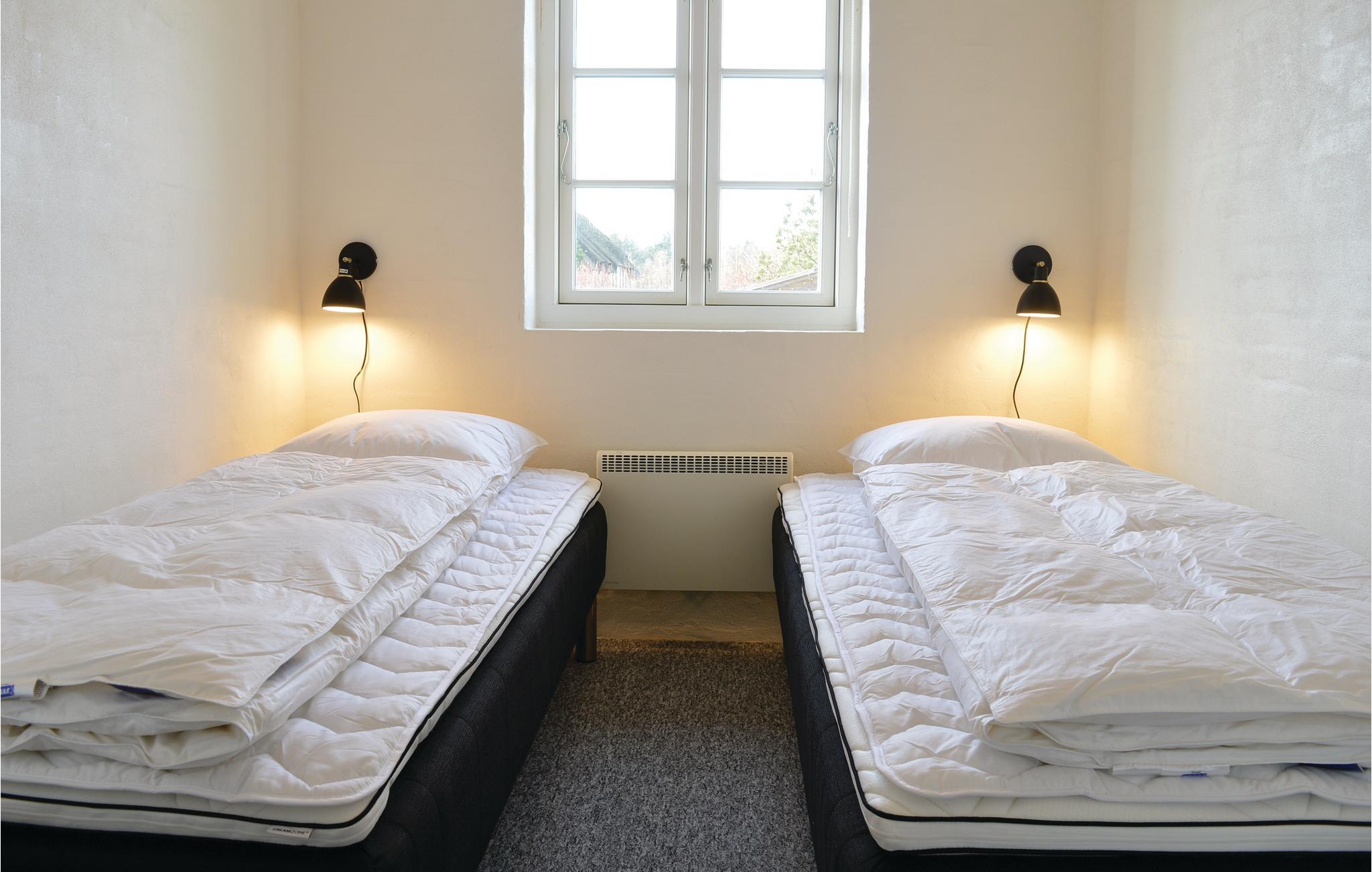 I den ene ende af huset er der to gode soveværelser samt et dejligt stort badeværelse med spabad, dampkabine og infrarød sauna (bliver 60 grader varm). Den anden ende af huset indeholder yderligere to gode soveværelser samt et godt badeværelse med brus. Hvis I en dag ikke har lyst til at stå for madlavningen selv, ligger der både restaurant, købmand, udendørs badeland, minigolf m.m. blot 5 minutters gang fra huset.