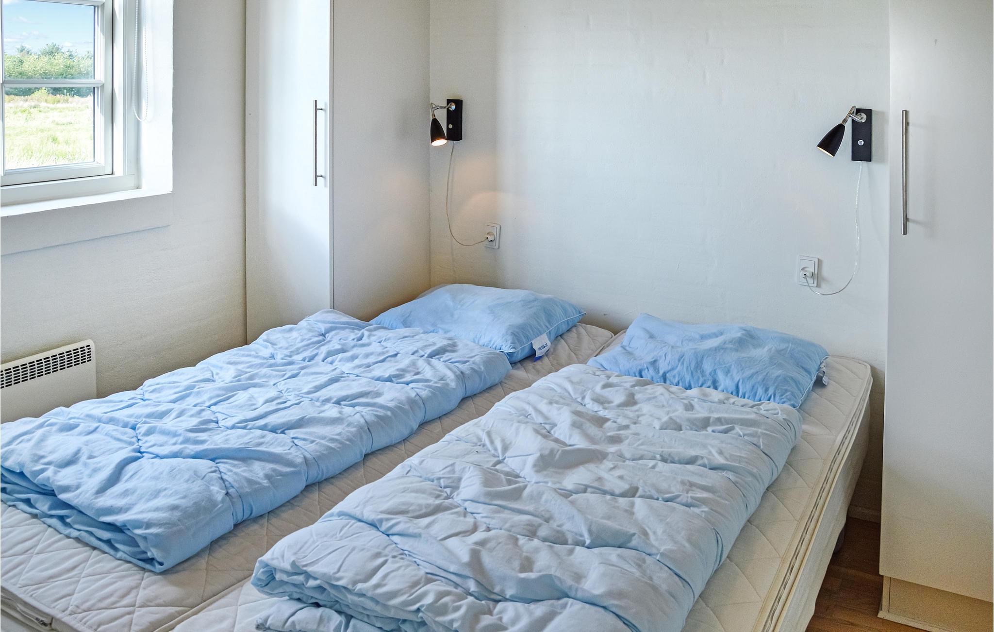 I et dejlig naturrigt område ligger dette hyggelige feriehus. Huset er pænt indrettet med kombineret stue/ køkken med brændeovn og adgang til husets terrasse, fire soveværelser samt badeværelse med både spa og sauna. Husets beliggenhed er ideel, hvis I søger rolige omgivelser med højt til himlen og masser af natur. Indenfor kort afstand finder I det unikke, og til tider brusende Vesterhav, som bestemt er et besøg værd, uanset om I kommer i januar eller juli. Området byder på store klitplantager, masser af marehalm og klitroser. I vådområderne ved Vest Stadil Fjord og Nissum Fjord ses et rigt fugleliv – specielt om for- og efteråret kan I opleve store mængder af ænder, vildgæs, svaner og rørhøge. Hele omegnen er anlagt med mange kilometers cykel- og vandrestier. Fra feriehuset har I knap 20 km til både Thorsminde og Søndervig. Thorsminde er flot beliggende mellem Vesterhavet og Nissum Fjord. Byen er en lille fiskerby med knap 400 indbyggere, og her finder I bl.a. Strandingsmuseet Sct. George, indkøbsmuligheder m.m. Her er desuden fine muligheder for at fiske fra molen, og er heldet ikke med jer, kan friske fisk købes på havnen. Søndervig er stedet, hvor der i sommerhalvåret summer af liv og aktiviteter, og hvor I bl.a. finder mange specialforretninger, spisesteder, legepladser og minigolf.