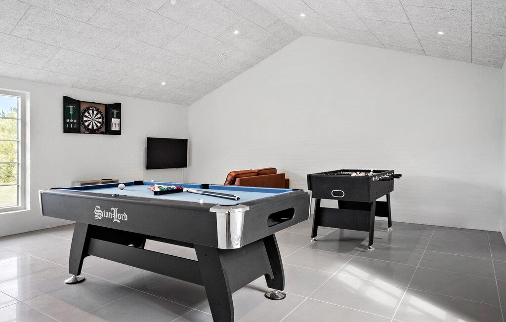 Dette charmerende stråtagshus har rigelig plads til en længe ventet familiesammenkomst eller en hyggelig ferie med vennerne. Afslapning er i højsædet her. Forkæl jer selv med afslappende øjeblikke i saunaen, lær børnene at svømme i den indendørs pool og mindsk svundne tider under muntre madlavningsaftener. Snup en dyst ved bordfodboldbordet, billard, bordtennis eller dart – eller find sammen til en hyggelig filmaften.