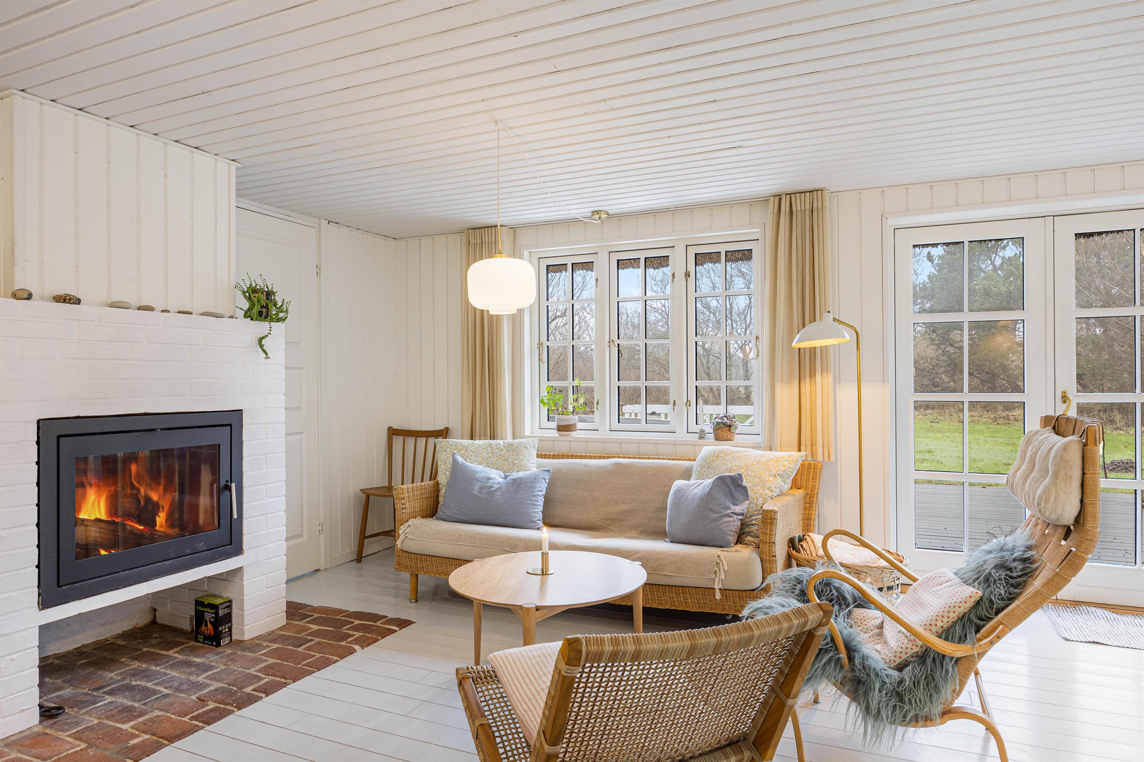 Lys og hyggelig indretning med brændeovn