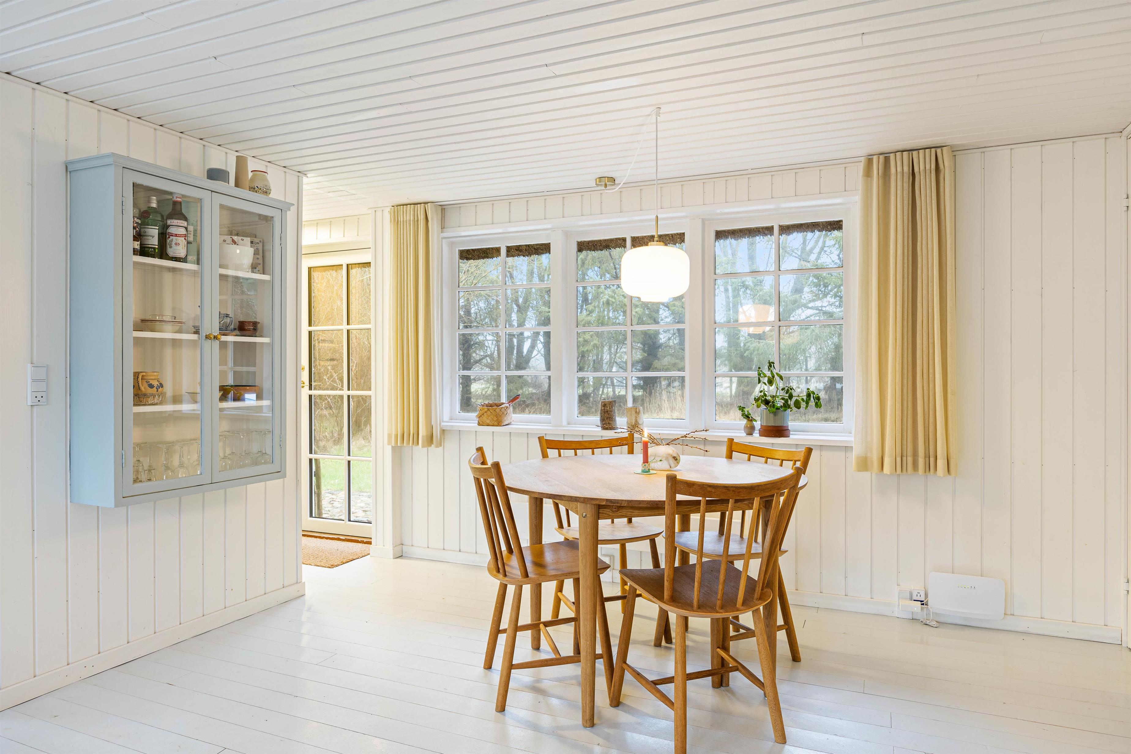 Når I træder ind i dette sommerhus, fornemmer I straks ægte sommerhusstil med lyse træpaneler og lyse trægulve. Sommerhuset på Øhusevej 15 er fordelt på 3 soverum. Det lyse og funktionelle køkken er i åben forbindelse med stuen, hvorfra der også er udgang til træterrassen. I stuen finder I også sommerhusets brændeovn, som sørger for hyggelig sommerhusstemning og varme på køligere dage. Der er desuden opvaskemaskine, fladskærms-tv og gratis fibernet, så I er garanteret en hurtig internetforbindelse på ferien.