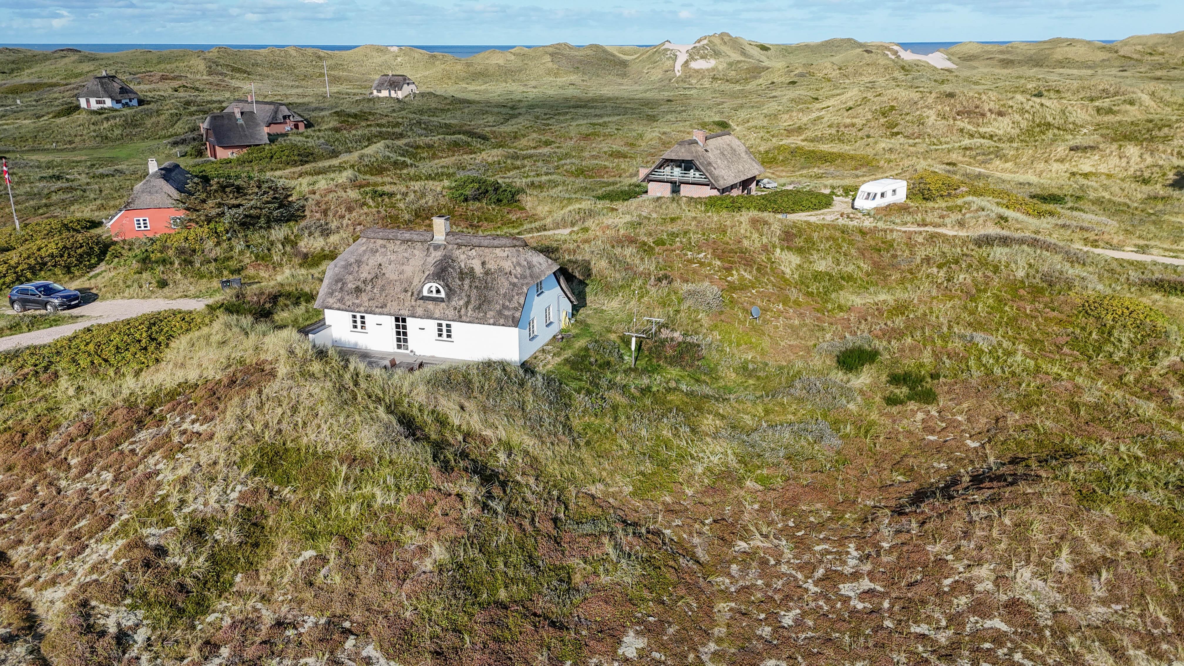 Drømmer du om en ferie midt i den vestjyske natur – med udsigt til den gamle del af Vedersø Klit og sømærket på klittoppen i horisonten?