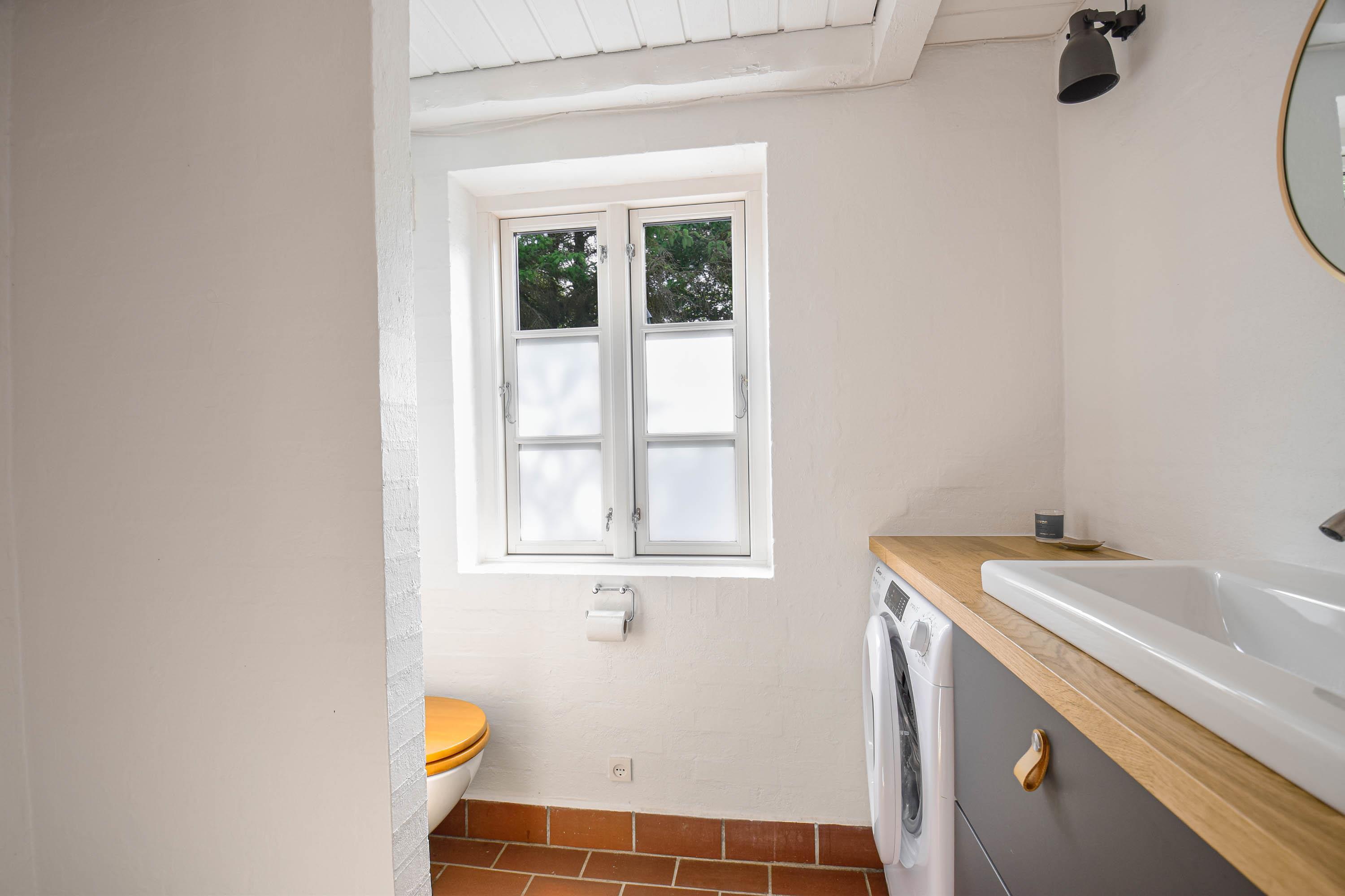 Badeværelset er lyst og funktionelt med bruser, og der er klinkegulv i køkken/alrum samt tæpper i værelserne for ekstra hygge.