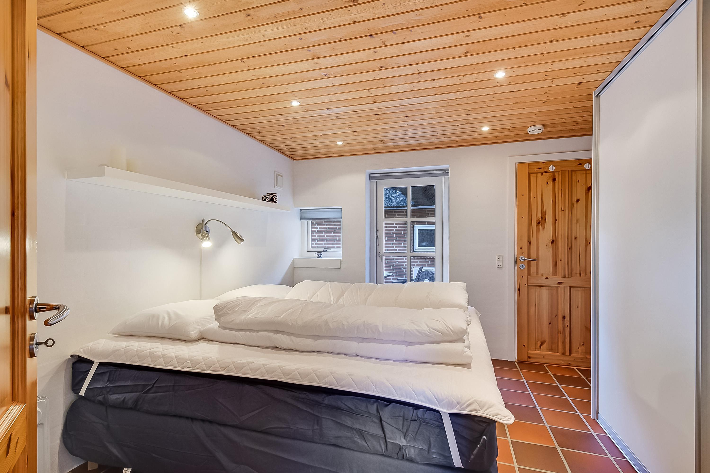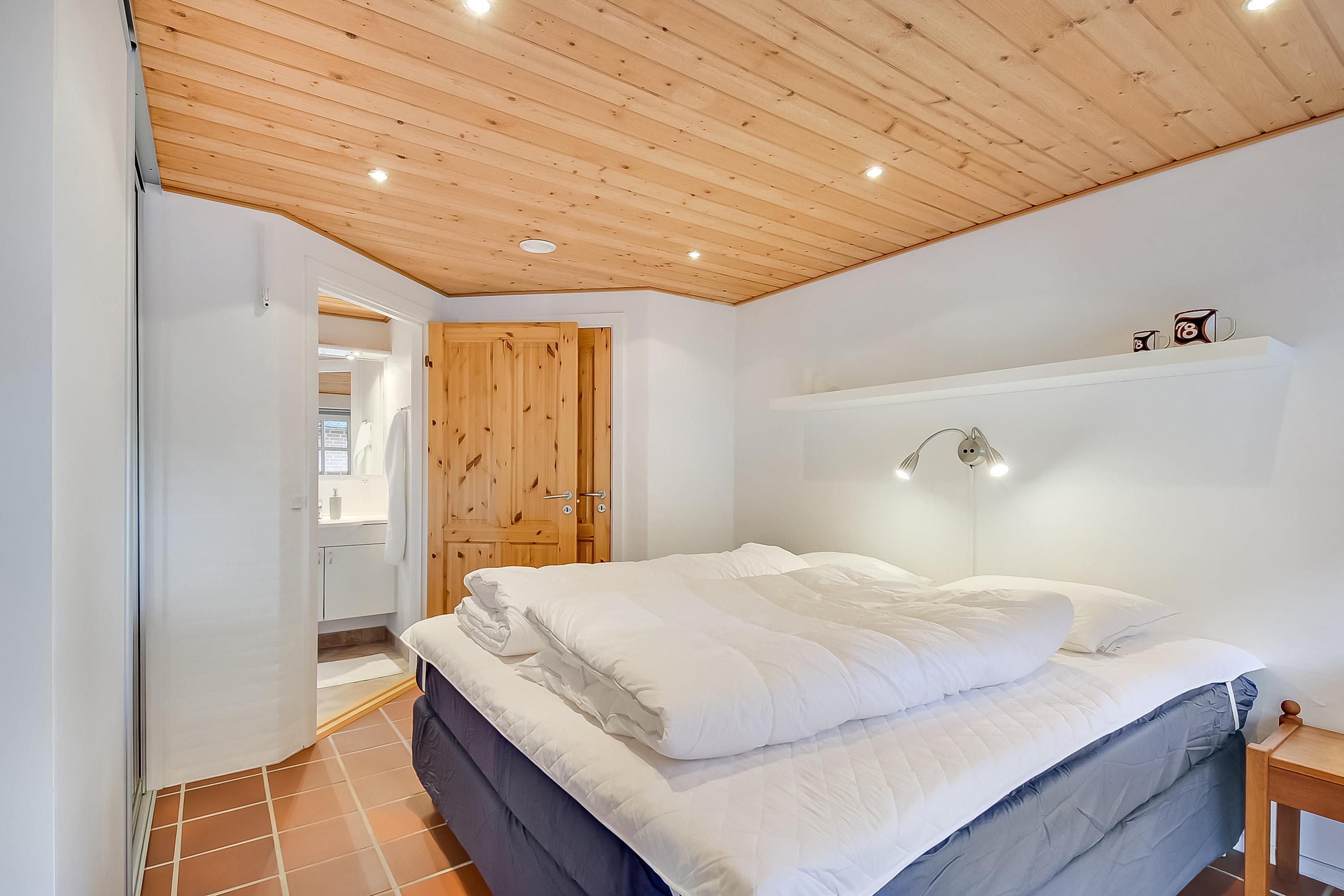 Pænt soveværelse med dobbeltseng og god skabsplads