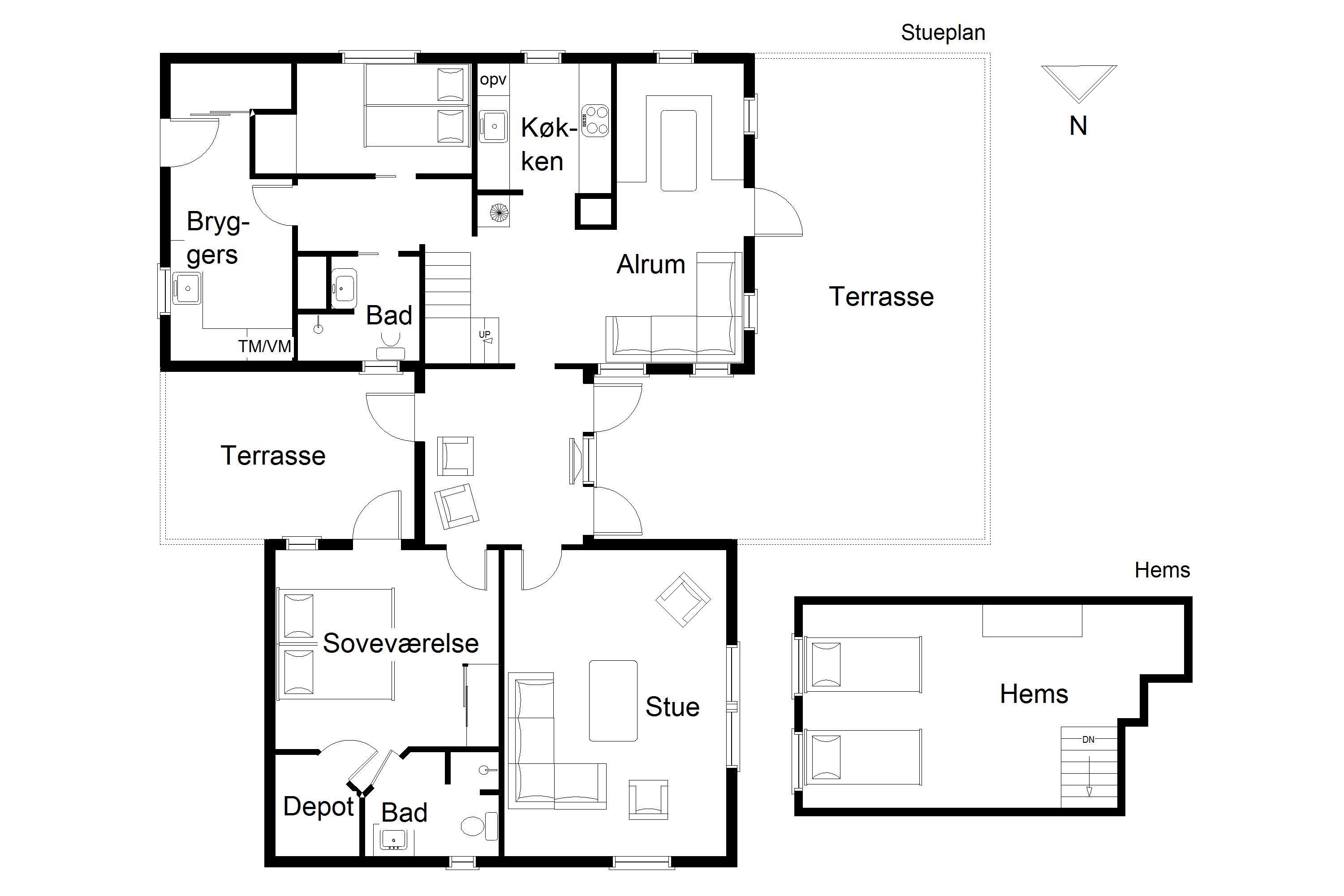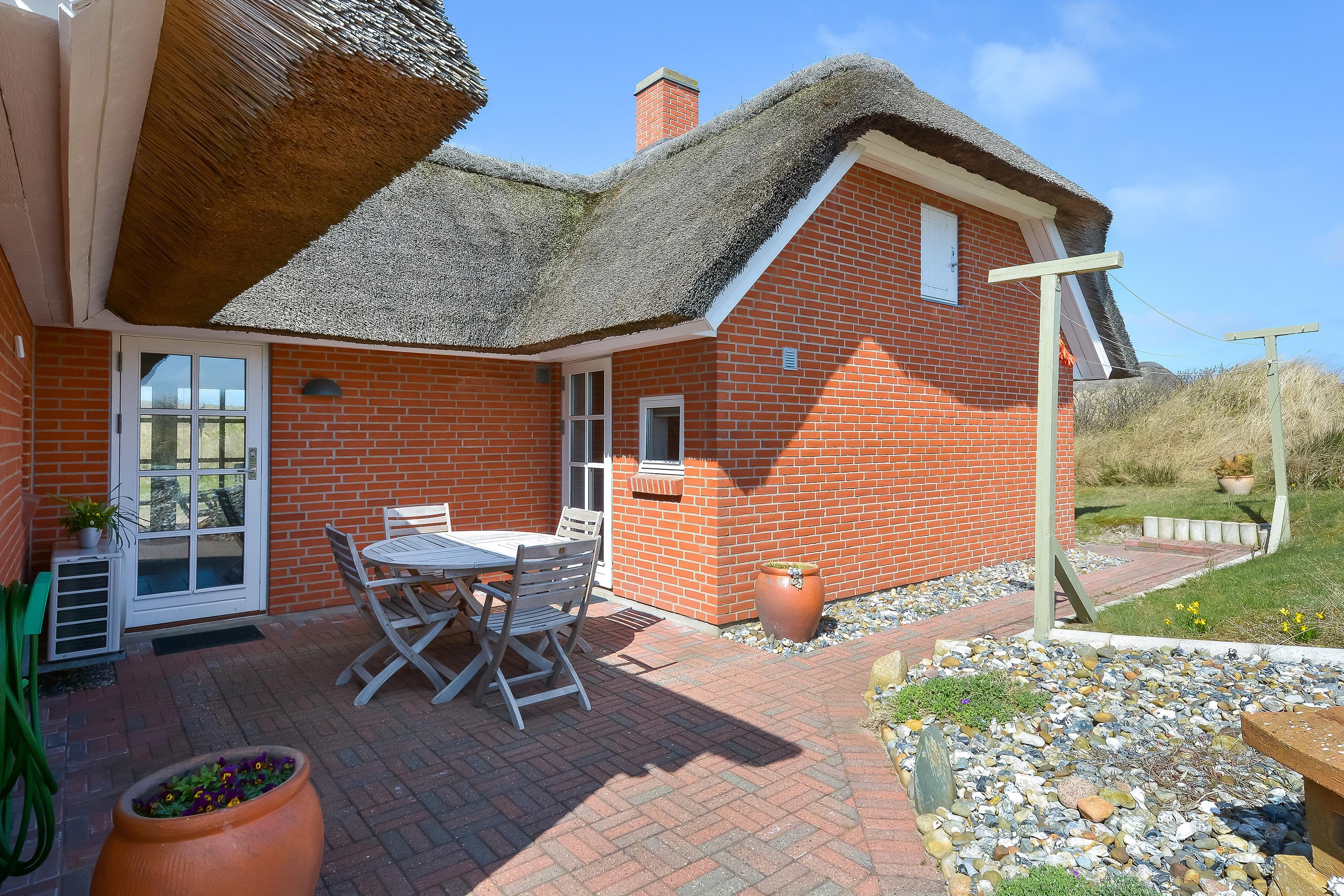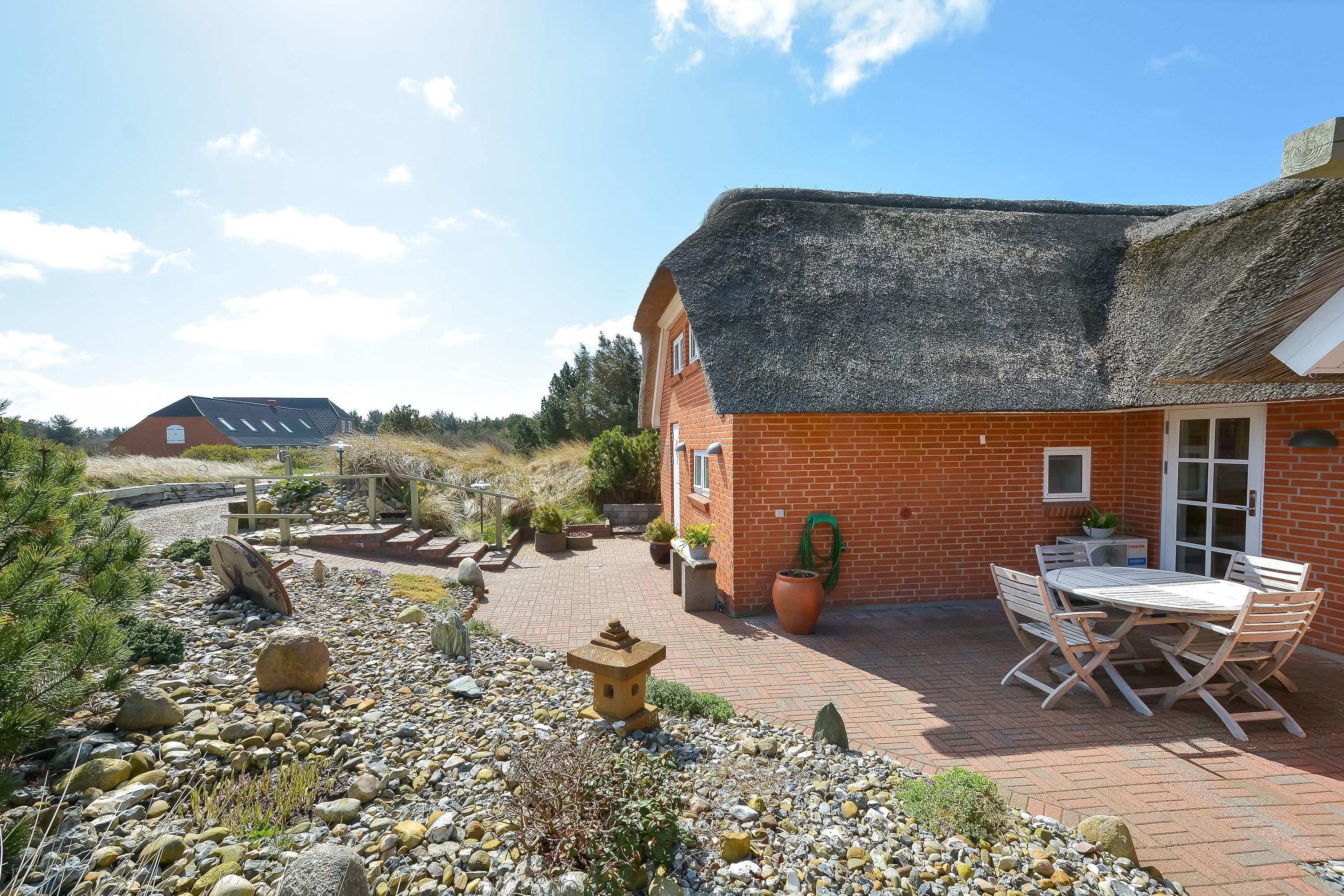 Huset ligger på en smuk klitgrund med gode læforhold og byder på flere solrige terrasser mod øst, syd og vest – samt overdækkede terrasser mod øst og vest, så I altid kan finde et godt sted at nyde dagen, uanset vind og vejr.