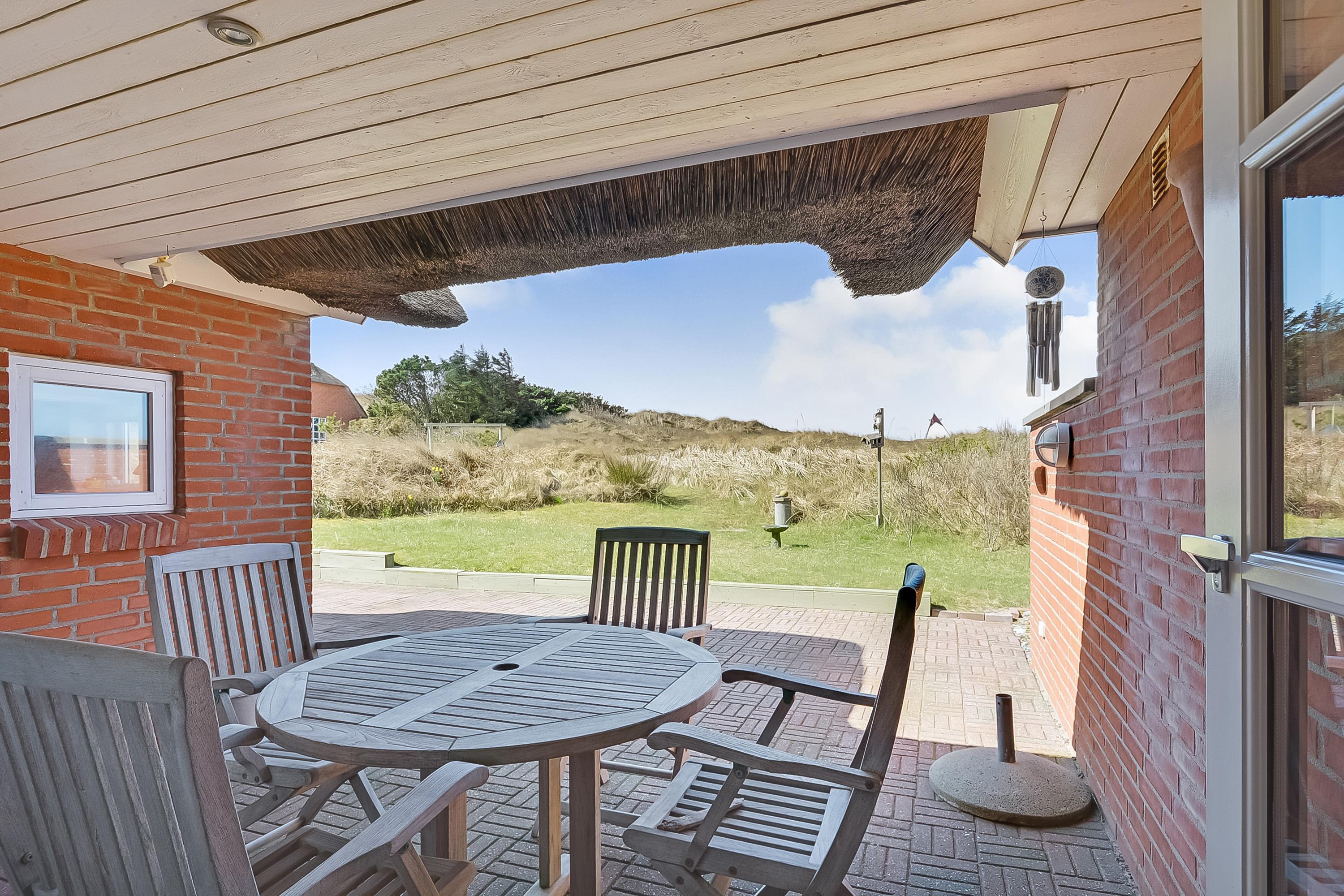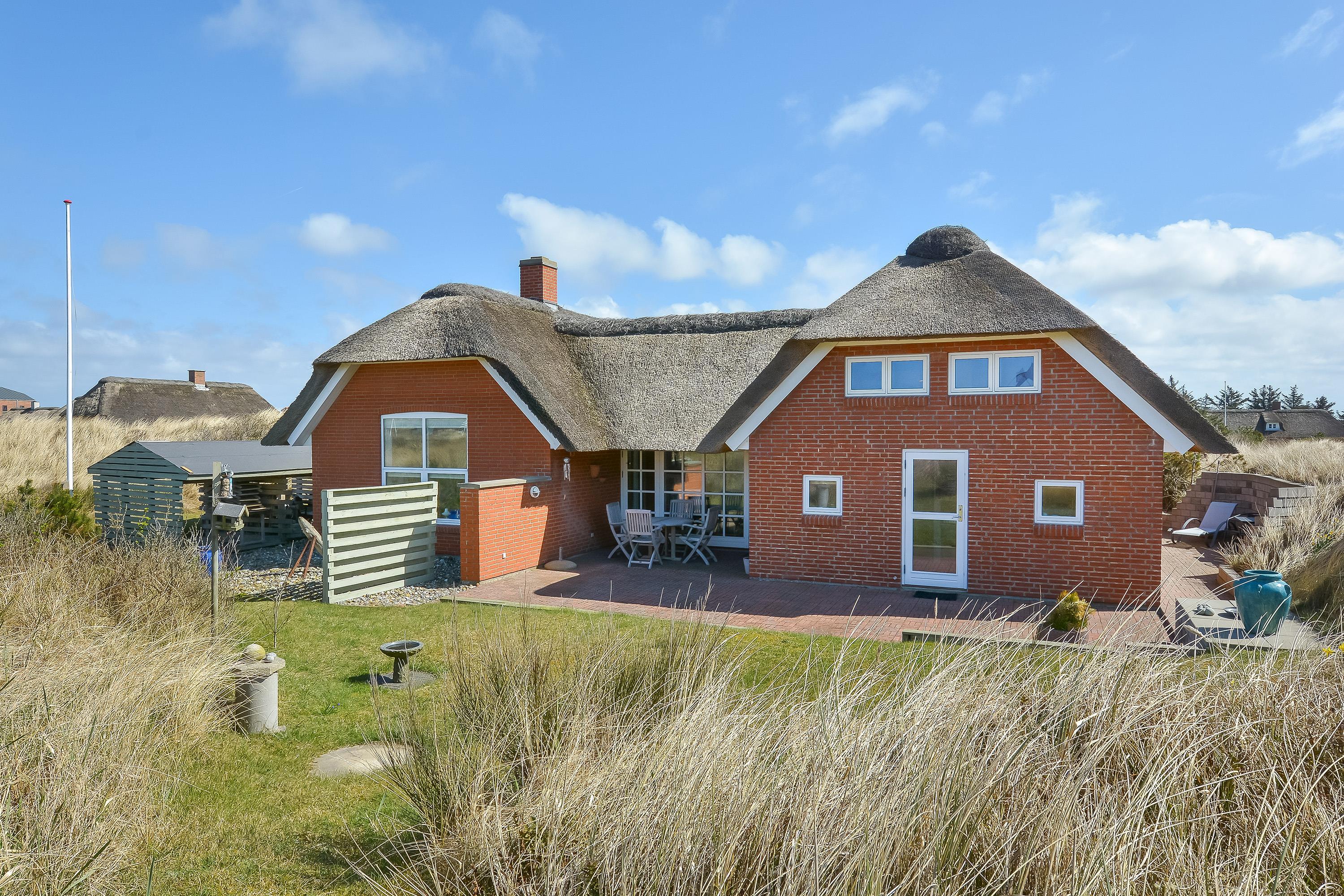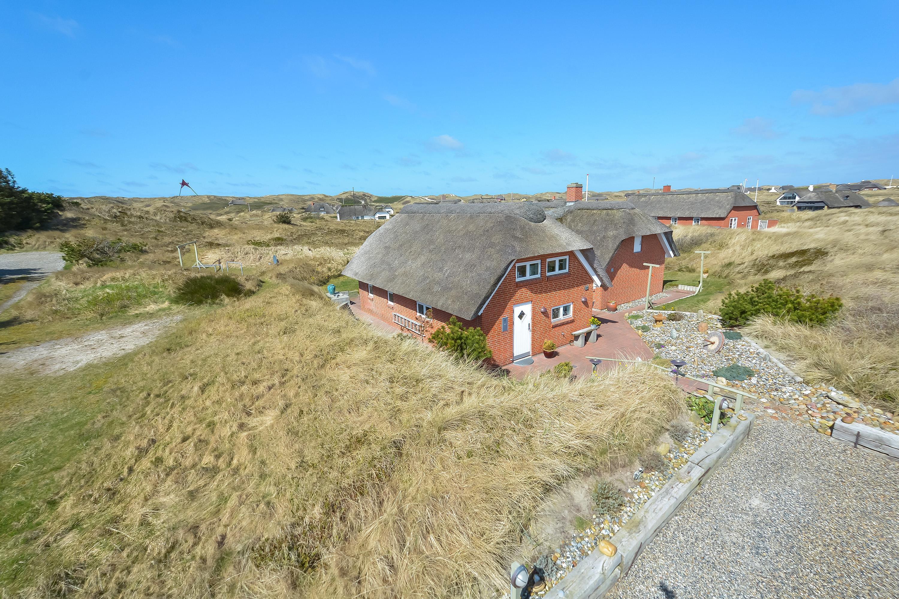 Kun 350 meter fra det brusende Vesterhav ligger dette flotte og velholdte feriehus, omgivet af den karakteristiske vestjyske natur og med en fantastisk udsigt over de naturskabte klitter.