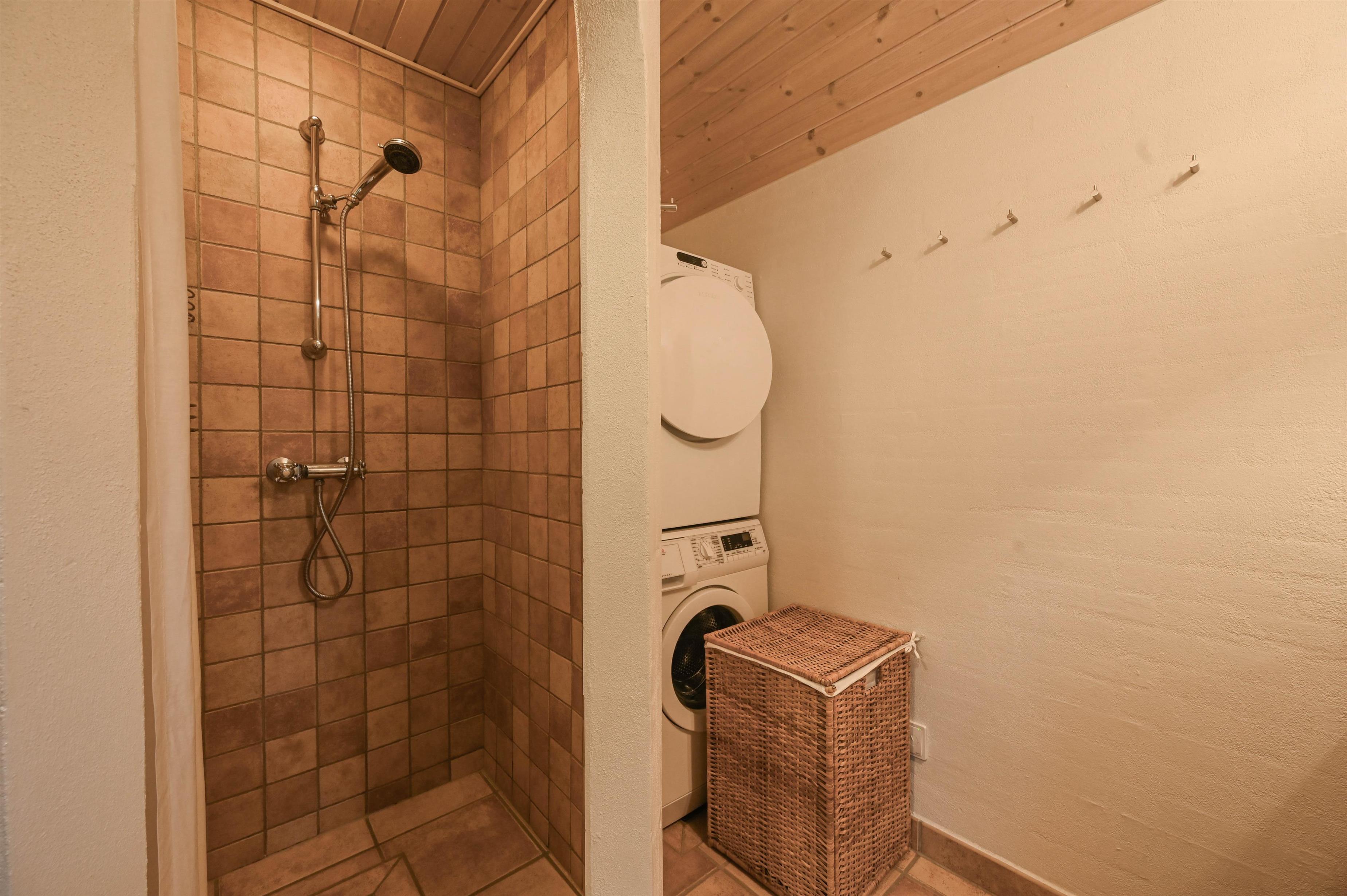 Entré med garderobe, et soveværelse med dobbeltseng og faste skabe, samt to værelser med hver en enkeltseng. Det flotte badeværelse byder på bruseniche, gulvvarme, vaskemaskine og tørretumbler.
