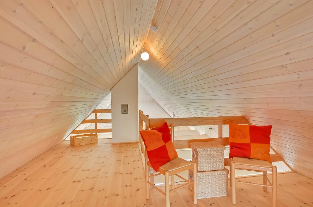 På 1. sal finder du en stor hems – perfekt som ekstra soveplads eller et hyggeligt legeområde for børnene.