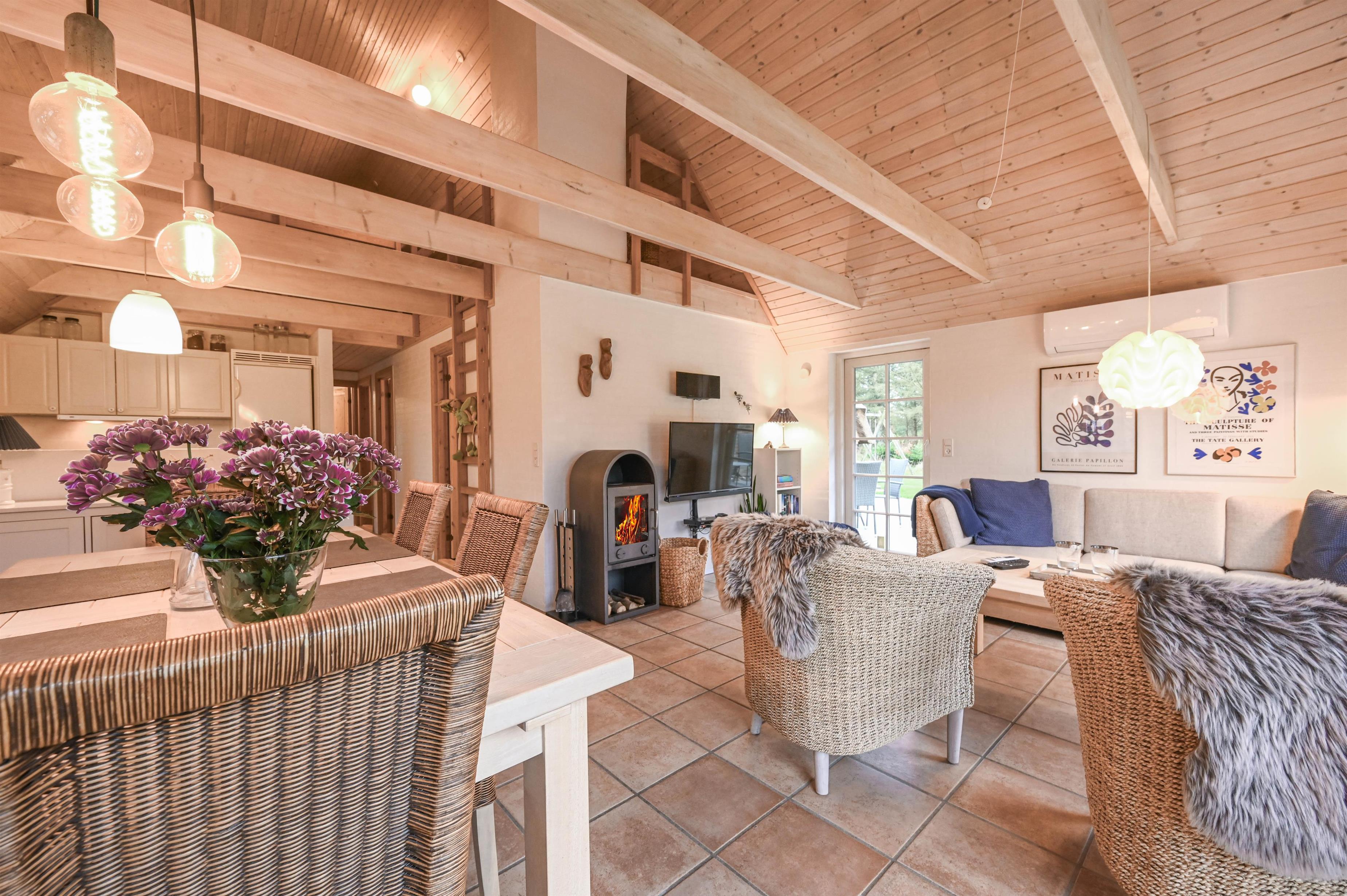 Et smukt og indbydende feriehus, hvor komfort, ro og natur går hånd i hånd – ideelt for gæster, der ønsker en afslappende ferie i fredelige omgivelser tæt på Vesterhavet