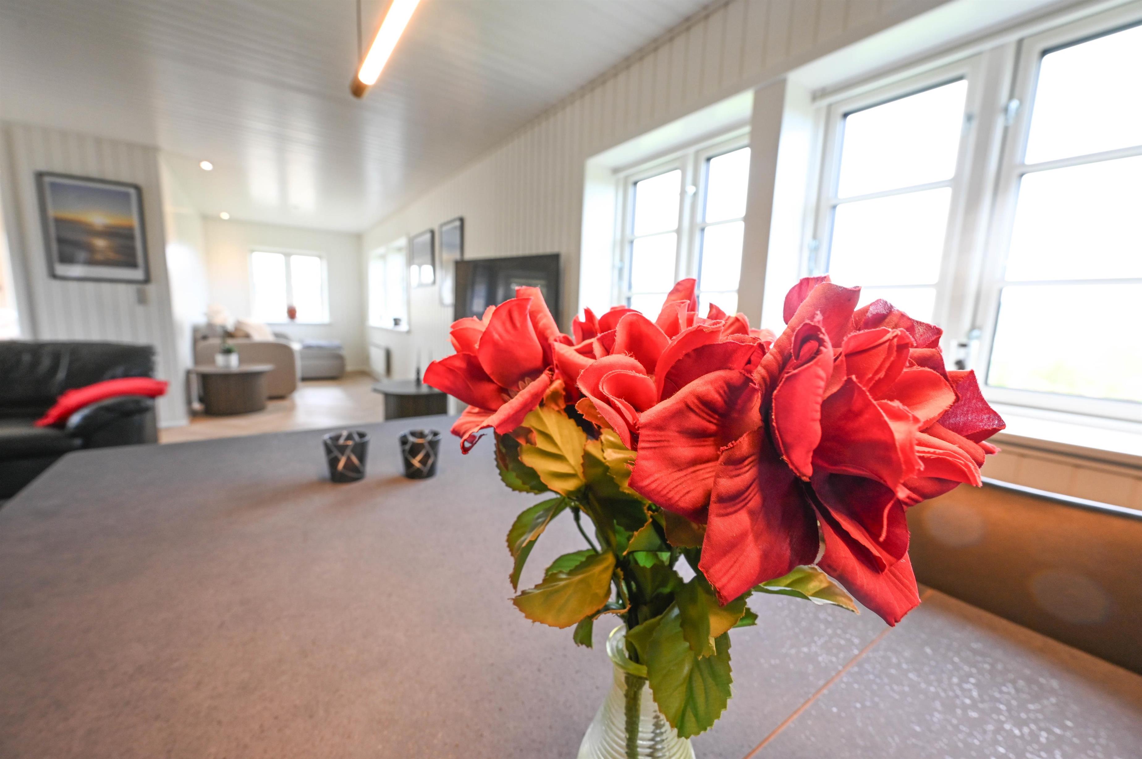 Det åbne køkkenalrum danner hjertet i huset – med spiseplads, sofaområde og en hyggelig brændeovn, der spreder varme og stemning, når vinden rusker udenfor. Herfra er der udgang til en dejlig terrasse med udsigt mod klitterne – et ideelt sted at nyde morgensolen eller dagens sidste lys.