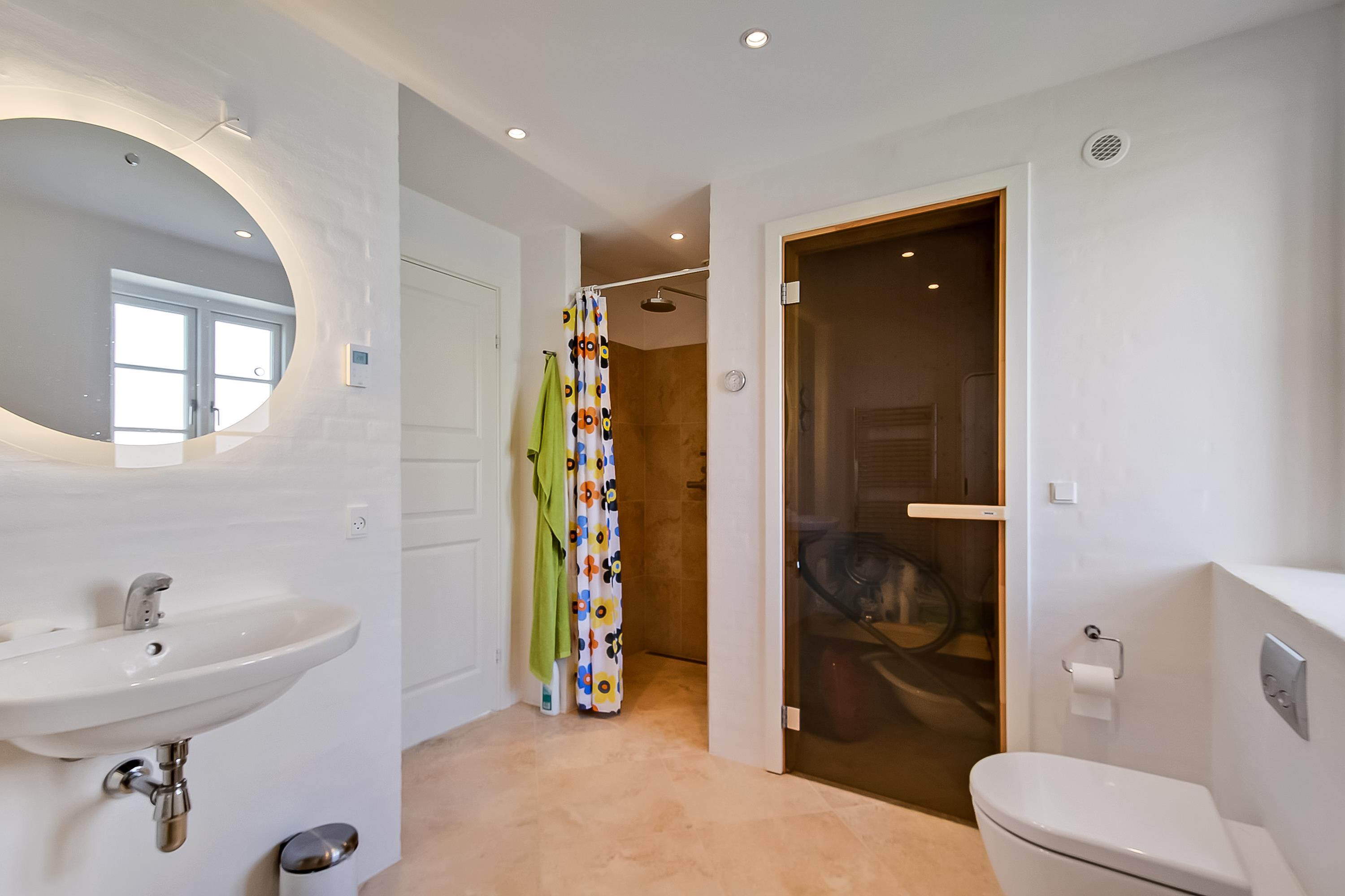 Stort badeværelse med bruseniche og sauna