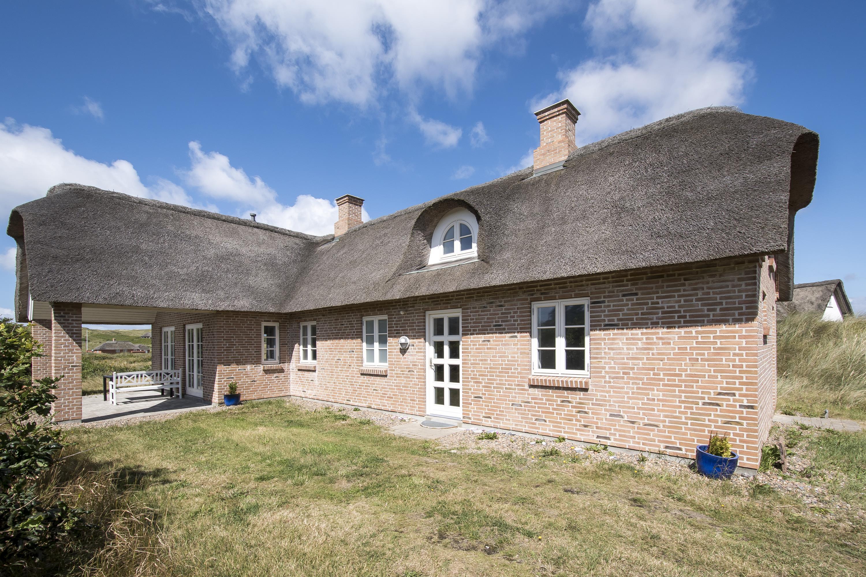 Et af de bedst beliggende feriehuse på Vedersø Klit – bygget i kvalitetsmaterialer, med smukt stråtag og en fantastisk udsigt over det unikke klitlandskab.