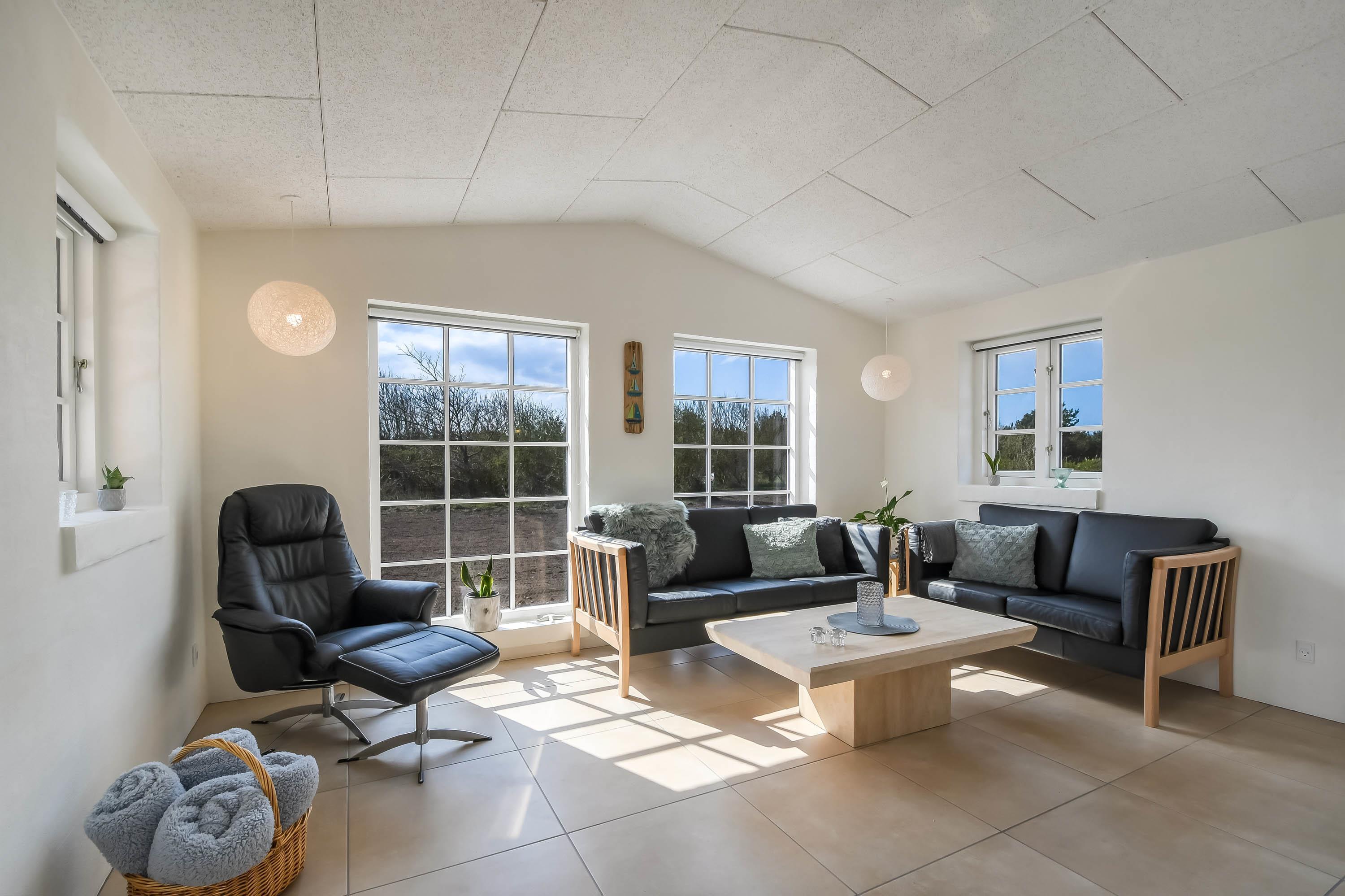 Feriehuset fremstår moderne, venligt og yderst velholdt, med smagfulde møbler, gode senge og akustiklofter, der giver en behagelig rumklang.