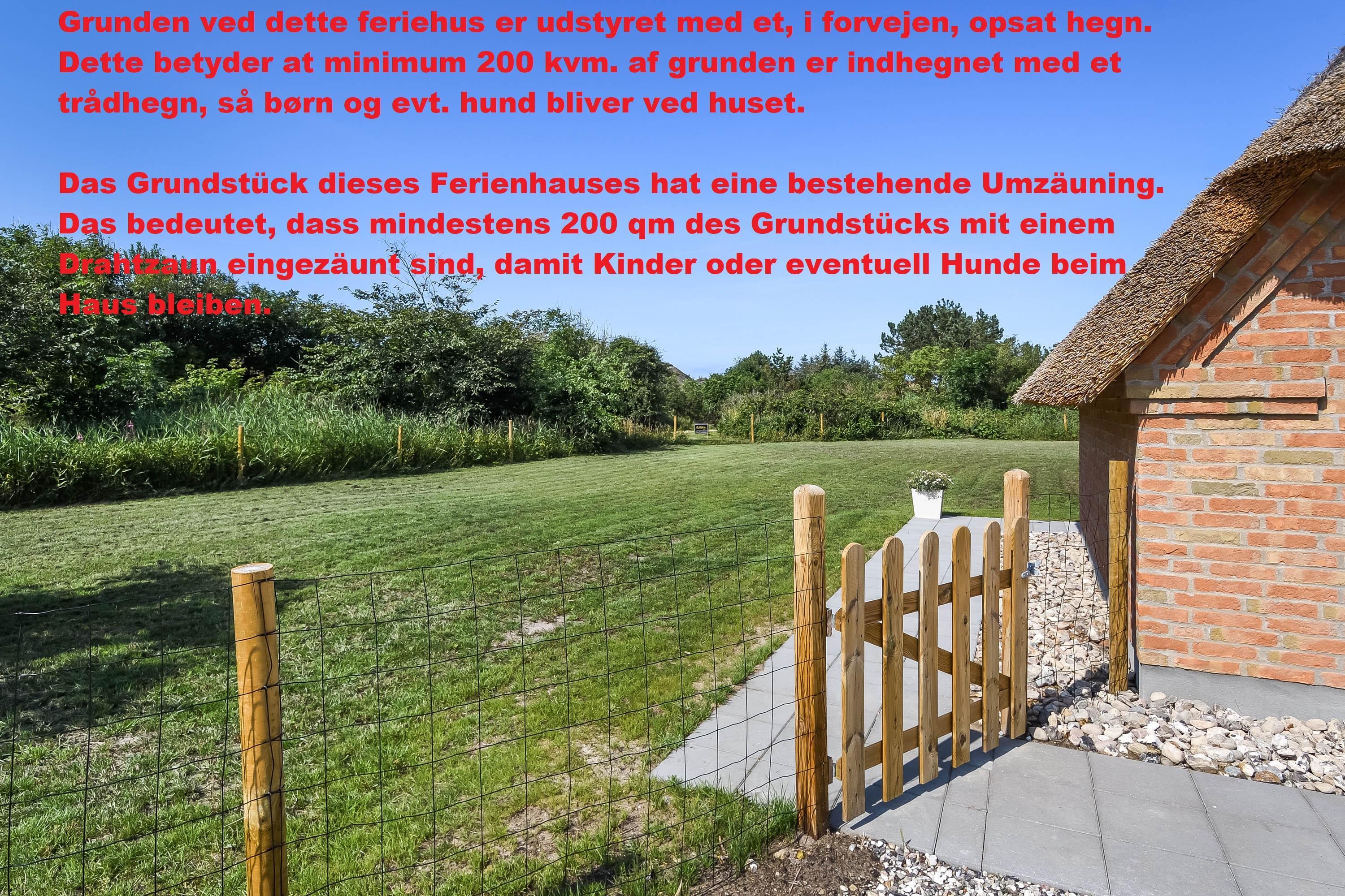 En del af grunden er indhegnet, så hunden – som naturligvis er velkommen – kan færdes frit og sikkert.