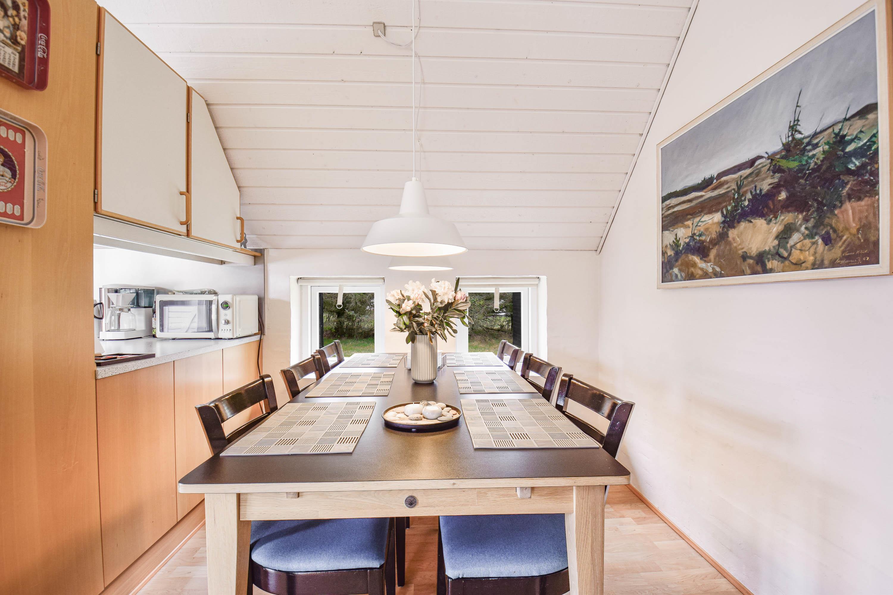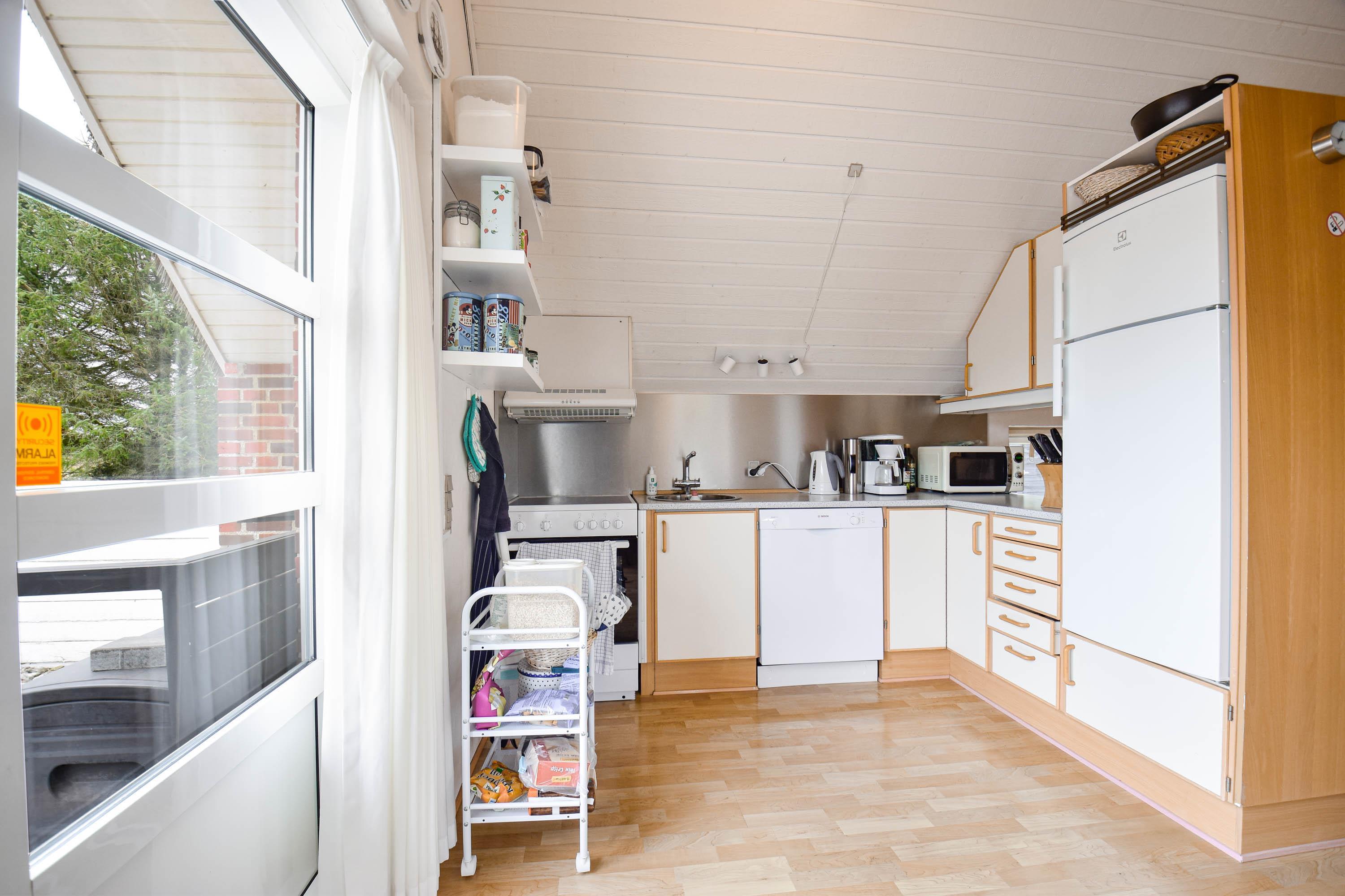 Huset er lyst og indbydende med en enkel og personlig indretning, hvor hyggen er i centrum.