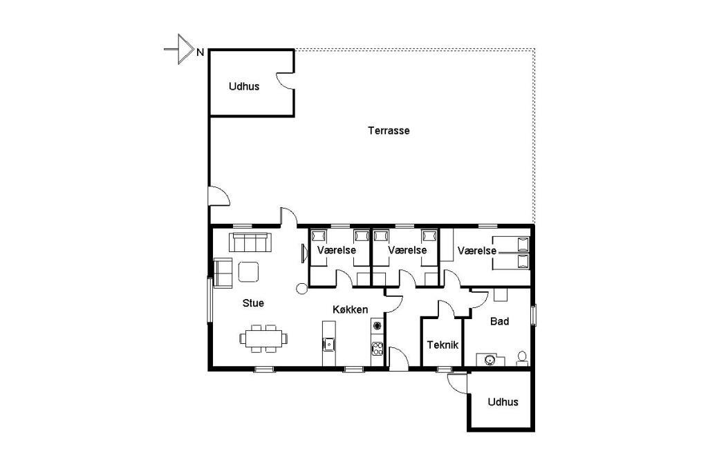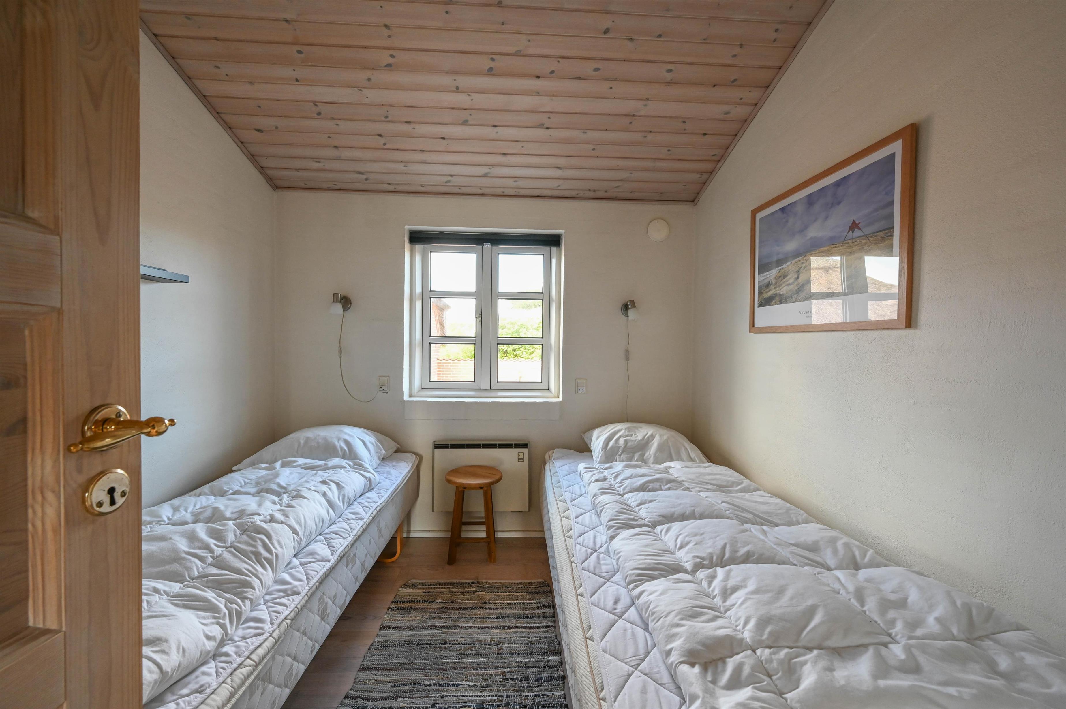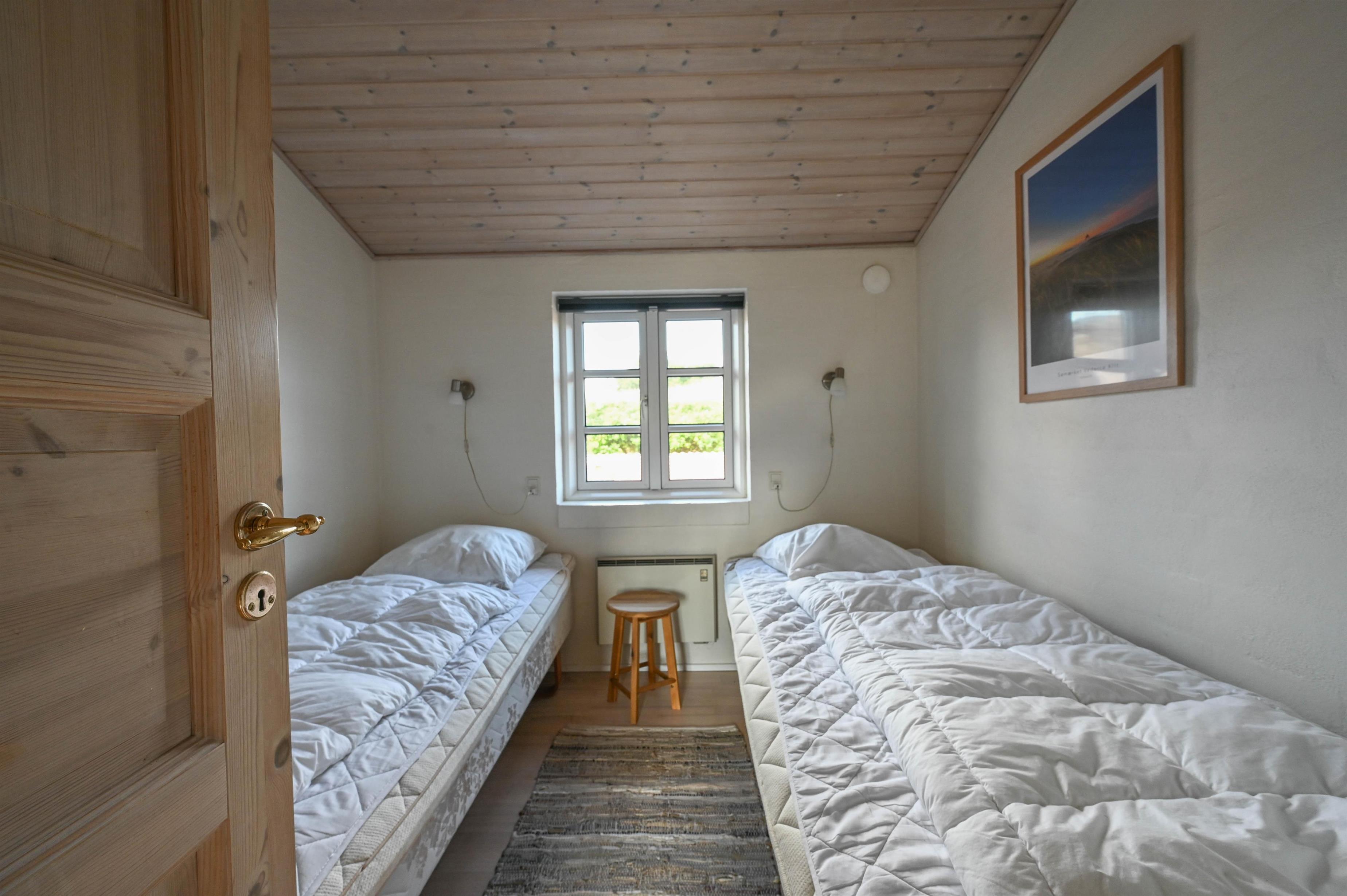 Der er tre gode soveværelser – ét med dobbeltseng og to med hver to enkeltsenge – så der er god plads til både familie og gæster.