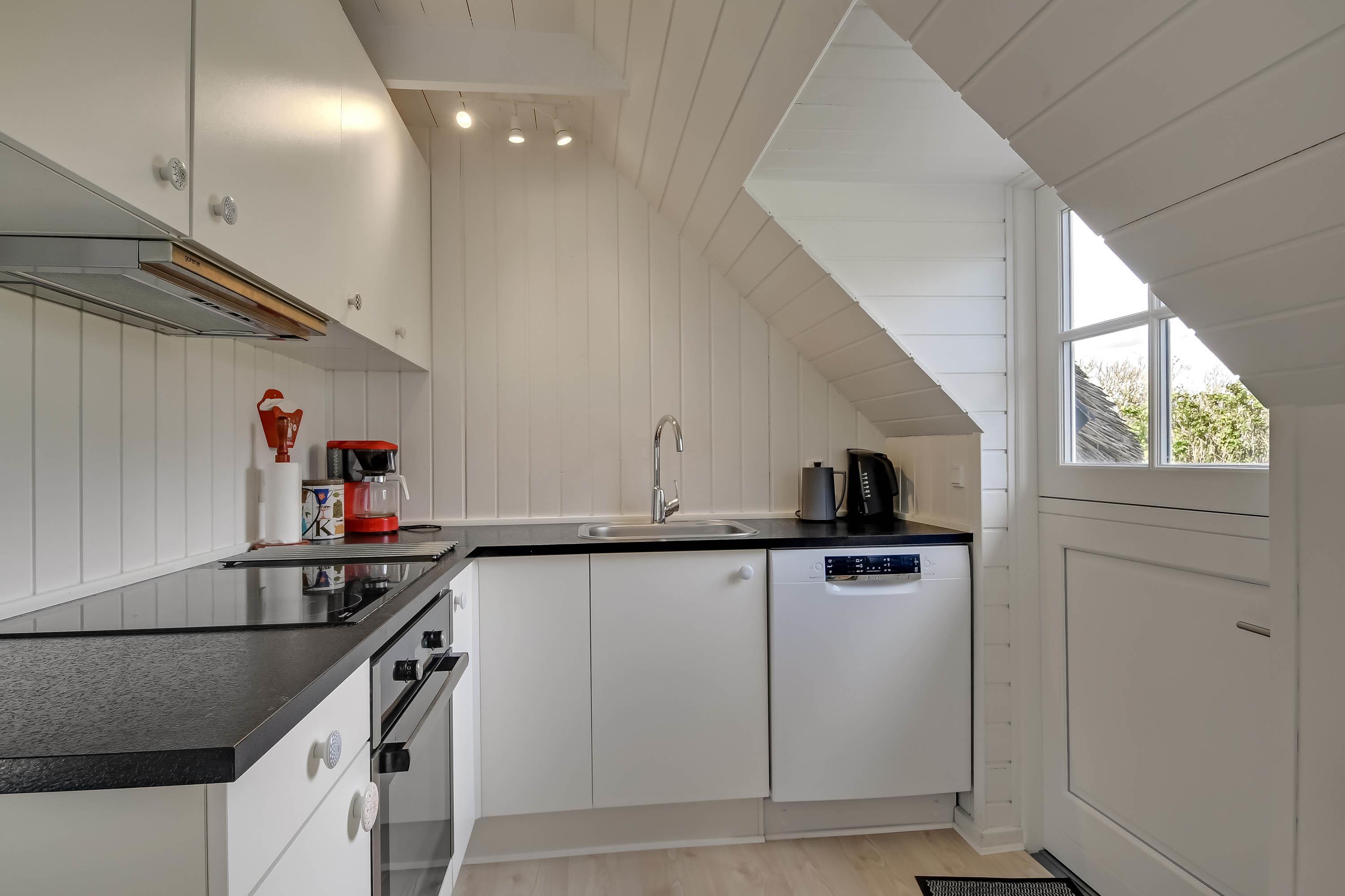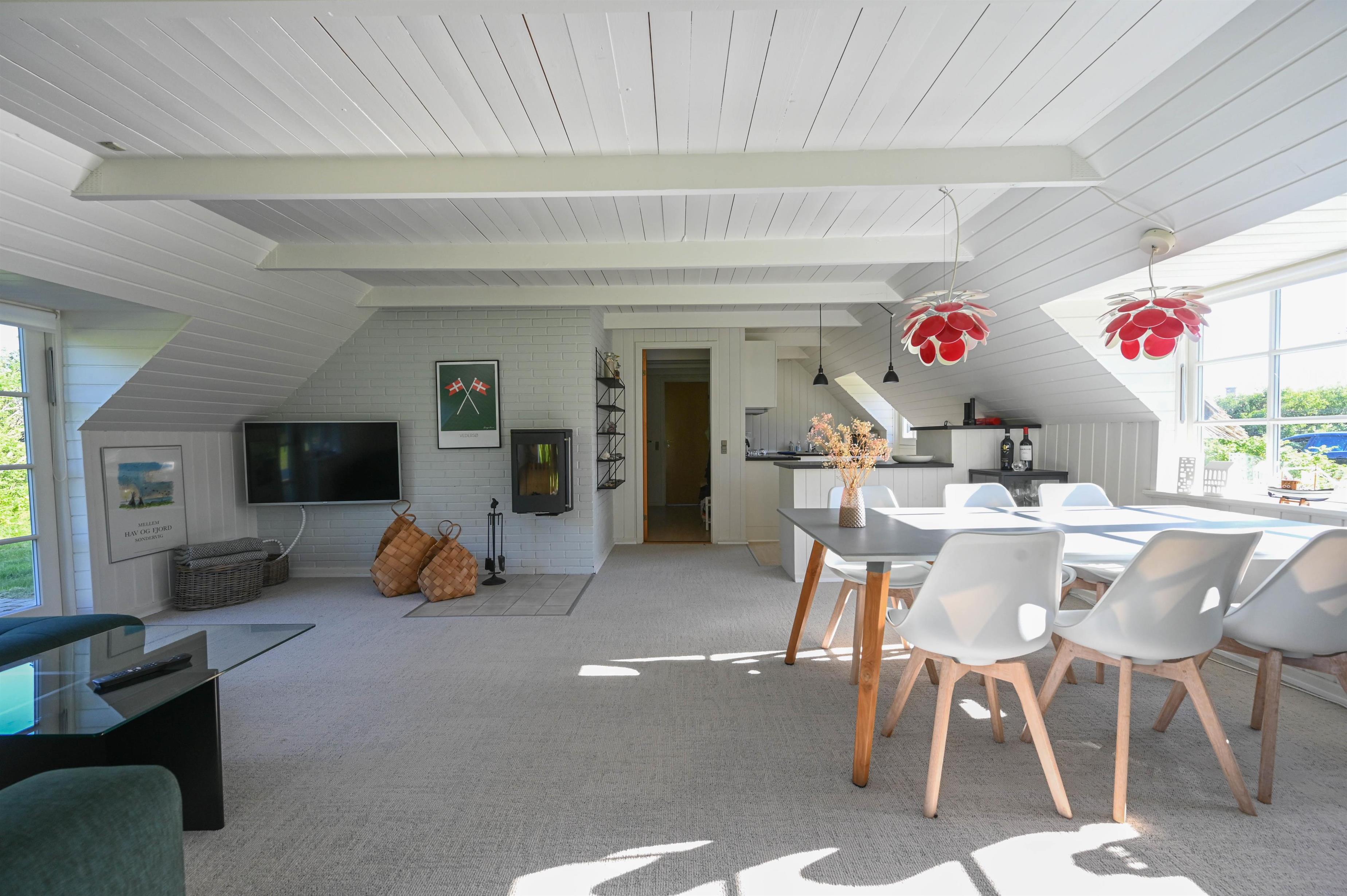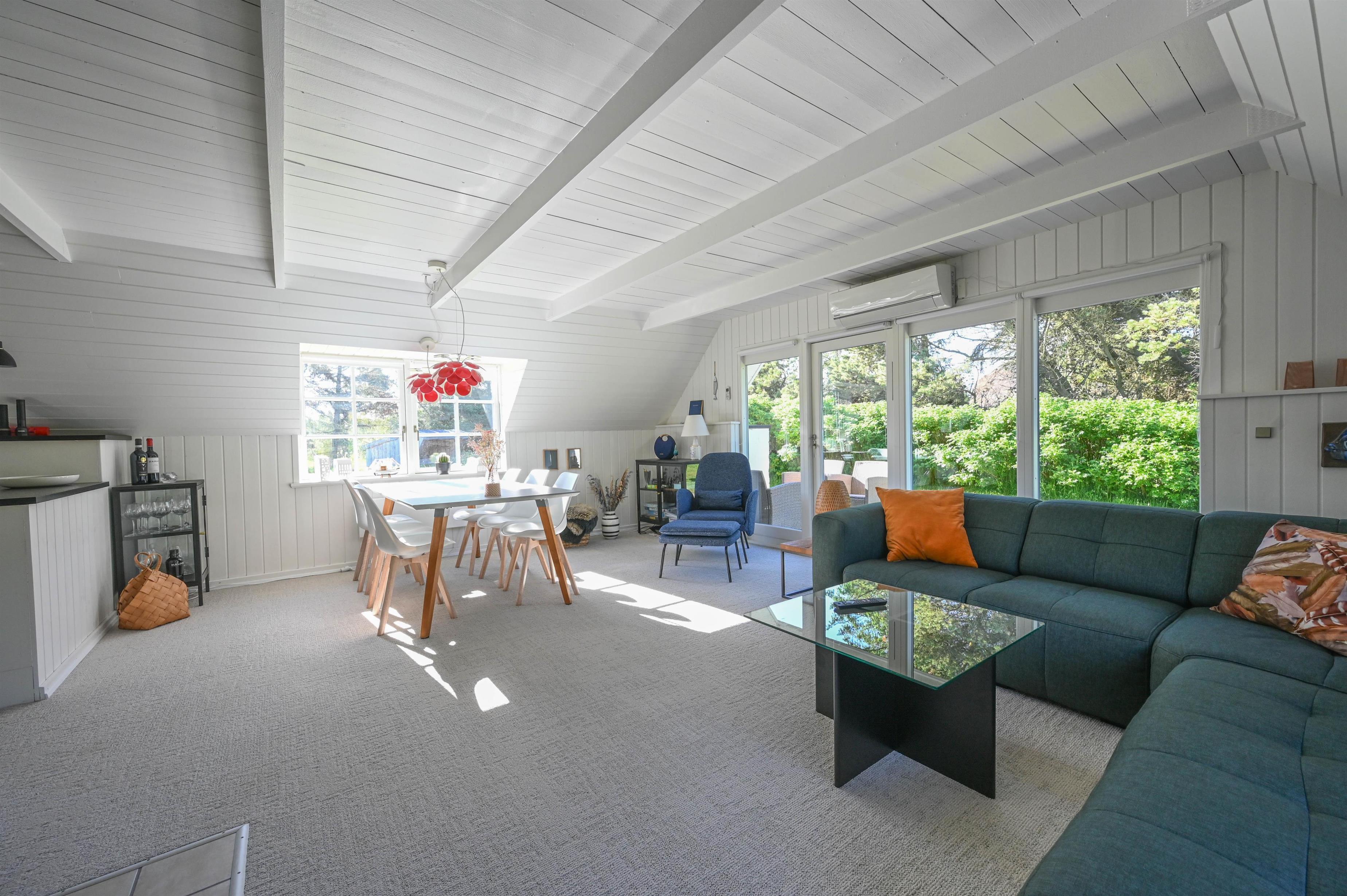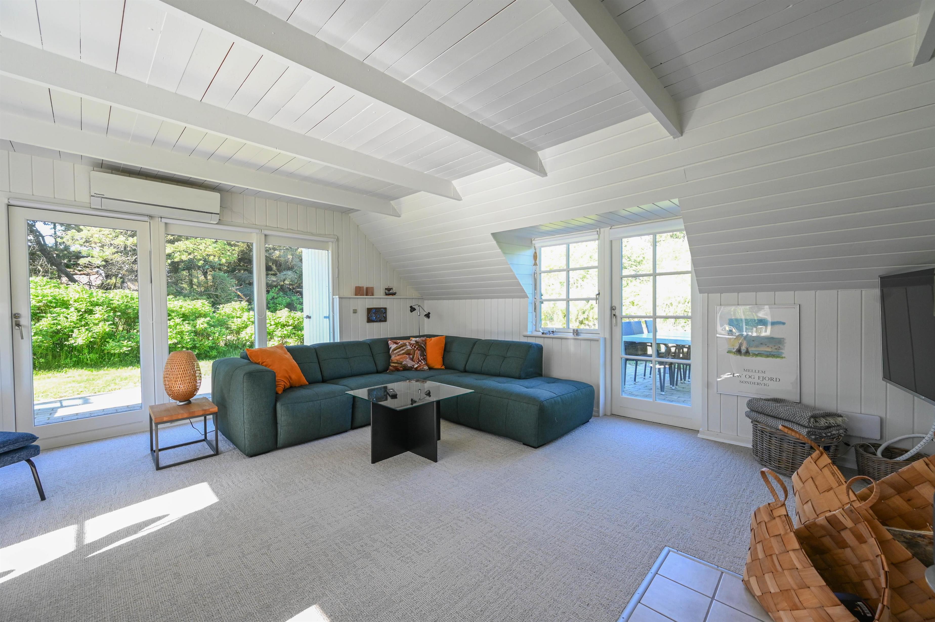 Feriehuset fremstår smagfuldt og lyst indrettet, med en varm atmosfære og en planløsning, der giver plads til både samvær og afslapning.