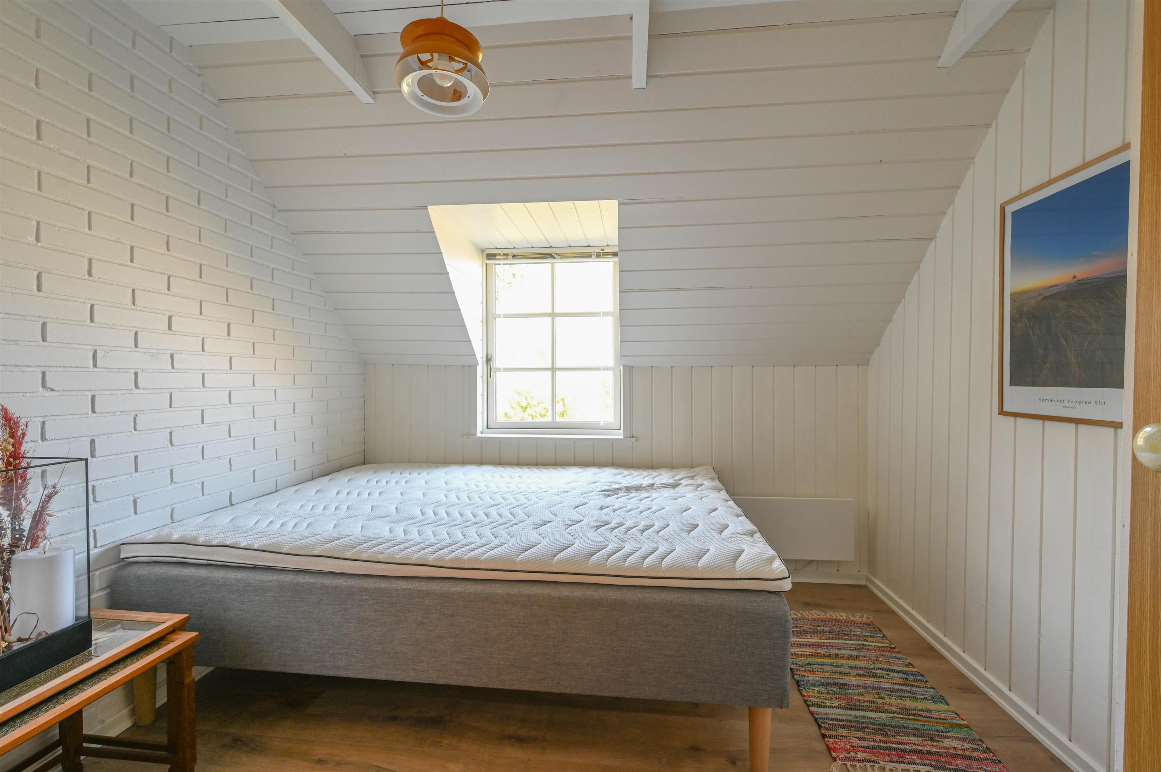 I stuen sørger brændeovnen og varmepumpen for behagelig varme året rundt, og den hyggelige sofagruppe inviterer til rolige aftener med film, spil eller en god bog.
