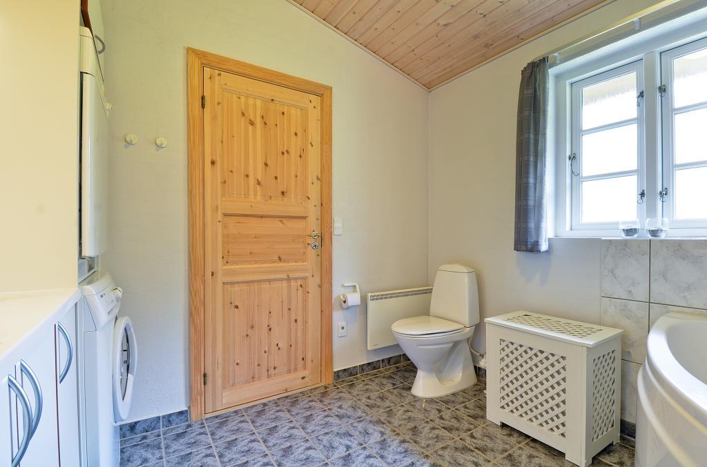 Stort og lækkert badeværelse med spa, bruser, gulvvarme, vaskemaskine og tørretumbler