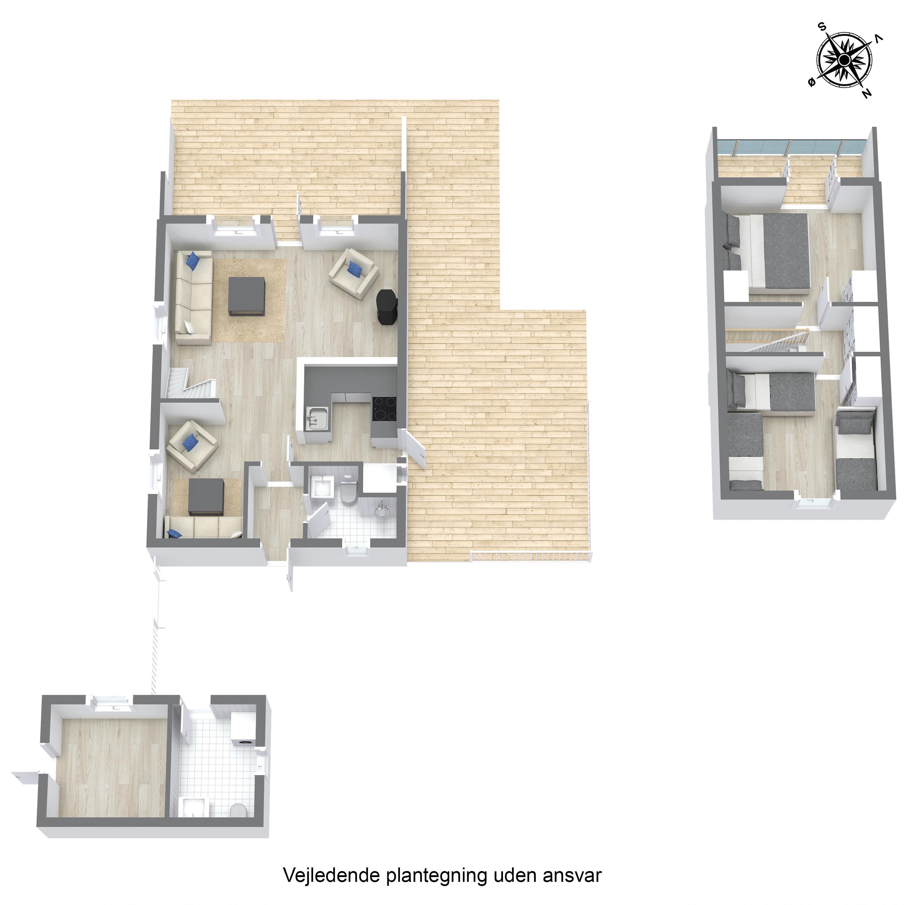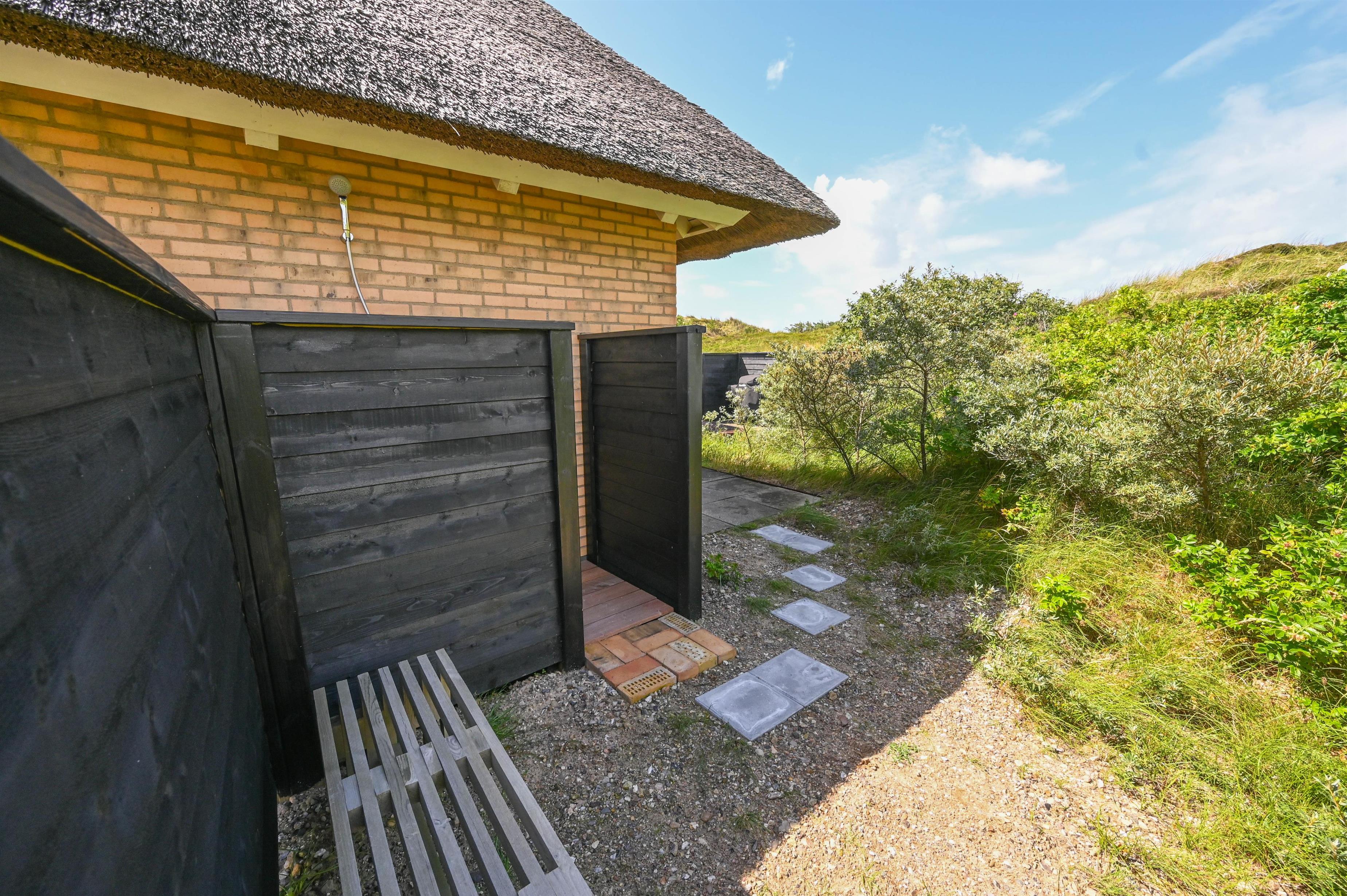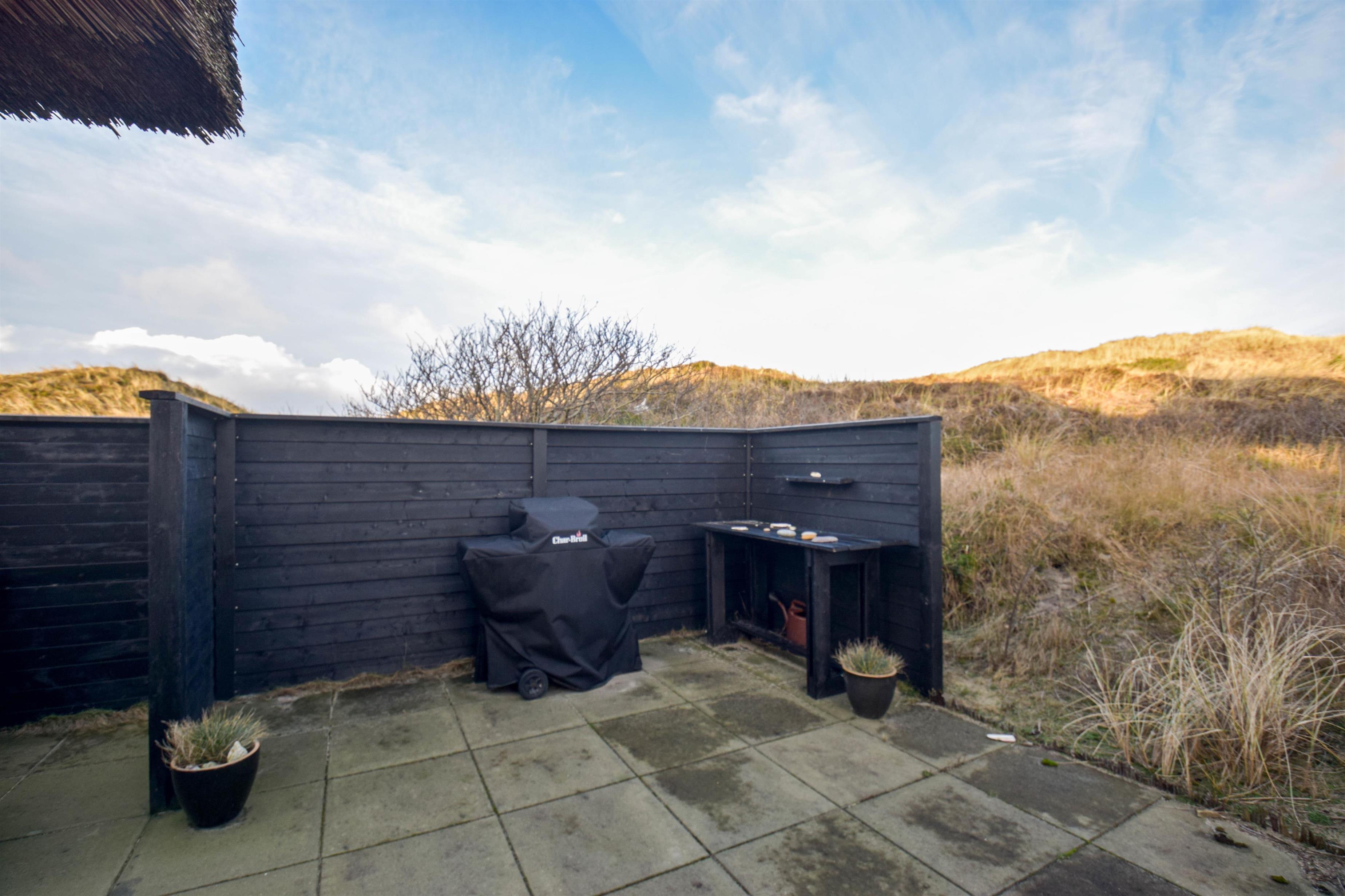 Den store kuperede klitgrund på 3.414 m² giver masser af privatliv og god plads til at nyde ferien i fred. Rundt om huset finder I flere terrasser med sol og læ, så I altid kan finde et sted at nyde en kop kaffe, et glas vin eller blot stilheden.