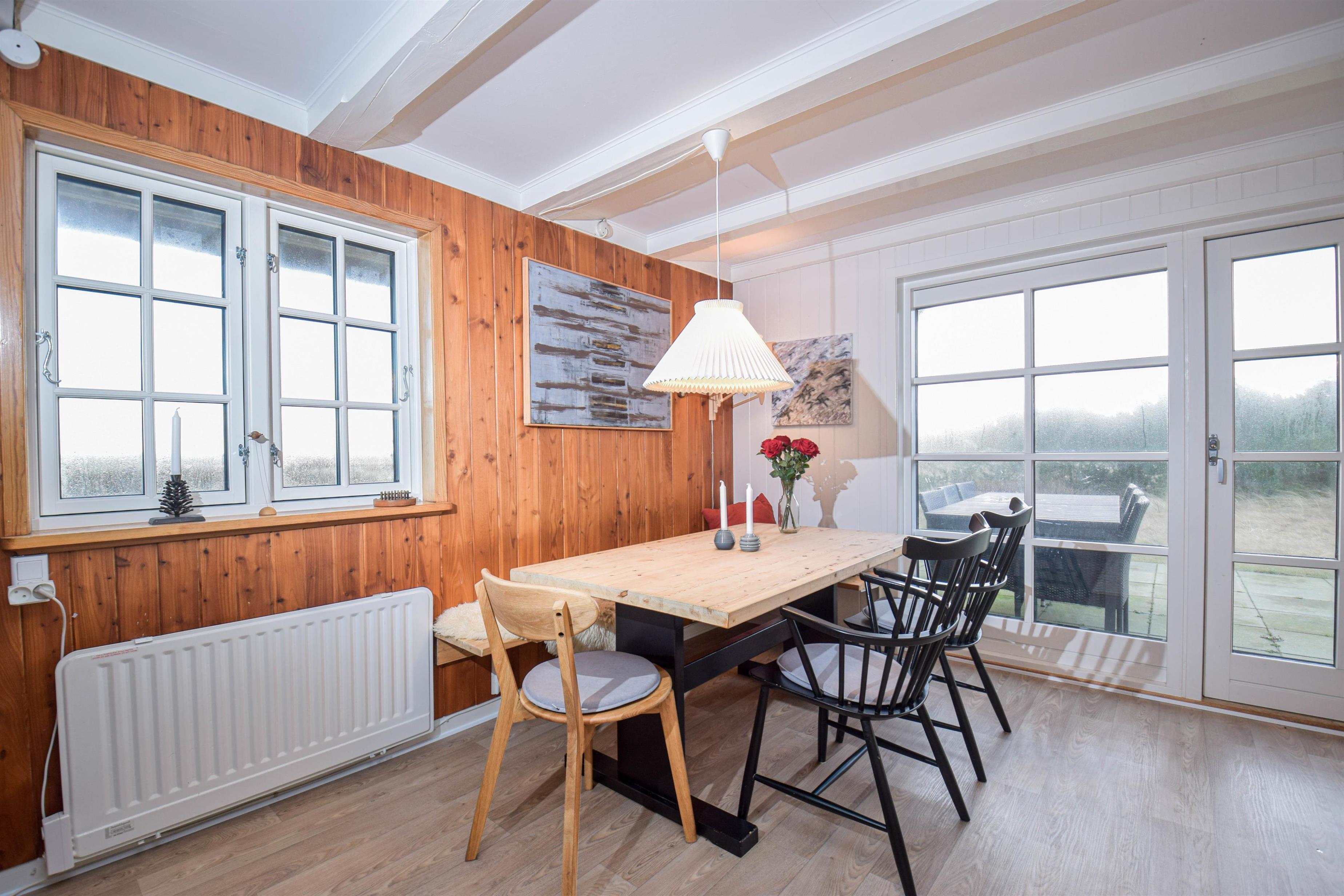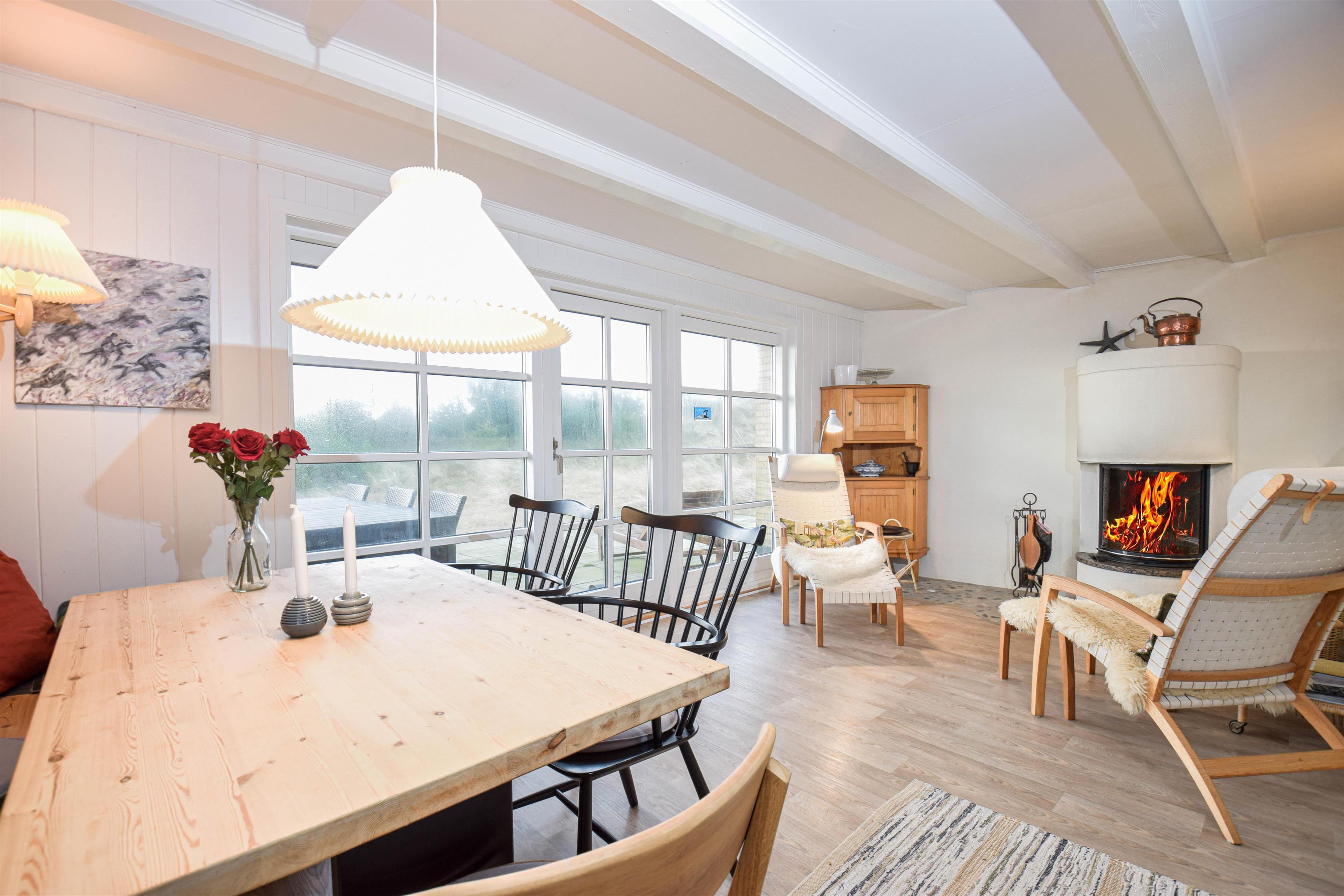 Så finder I det hele her – i dette velholdte feriehus, der ligger midt i klitterne med smuk udsigt over engene ved Vest Stadil Fjord.