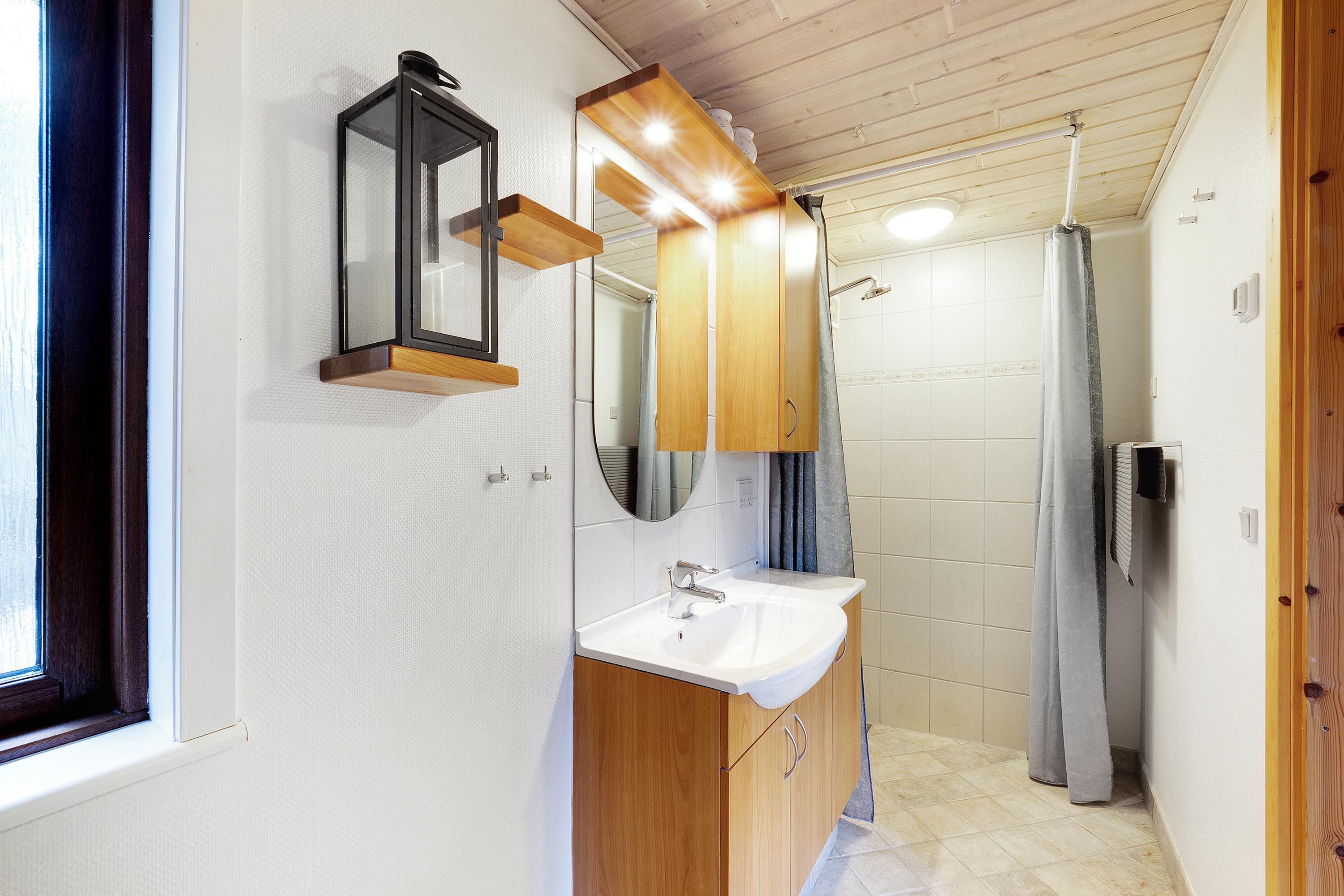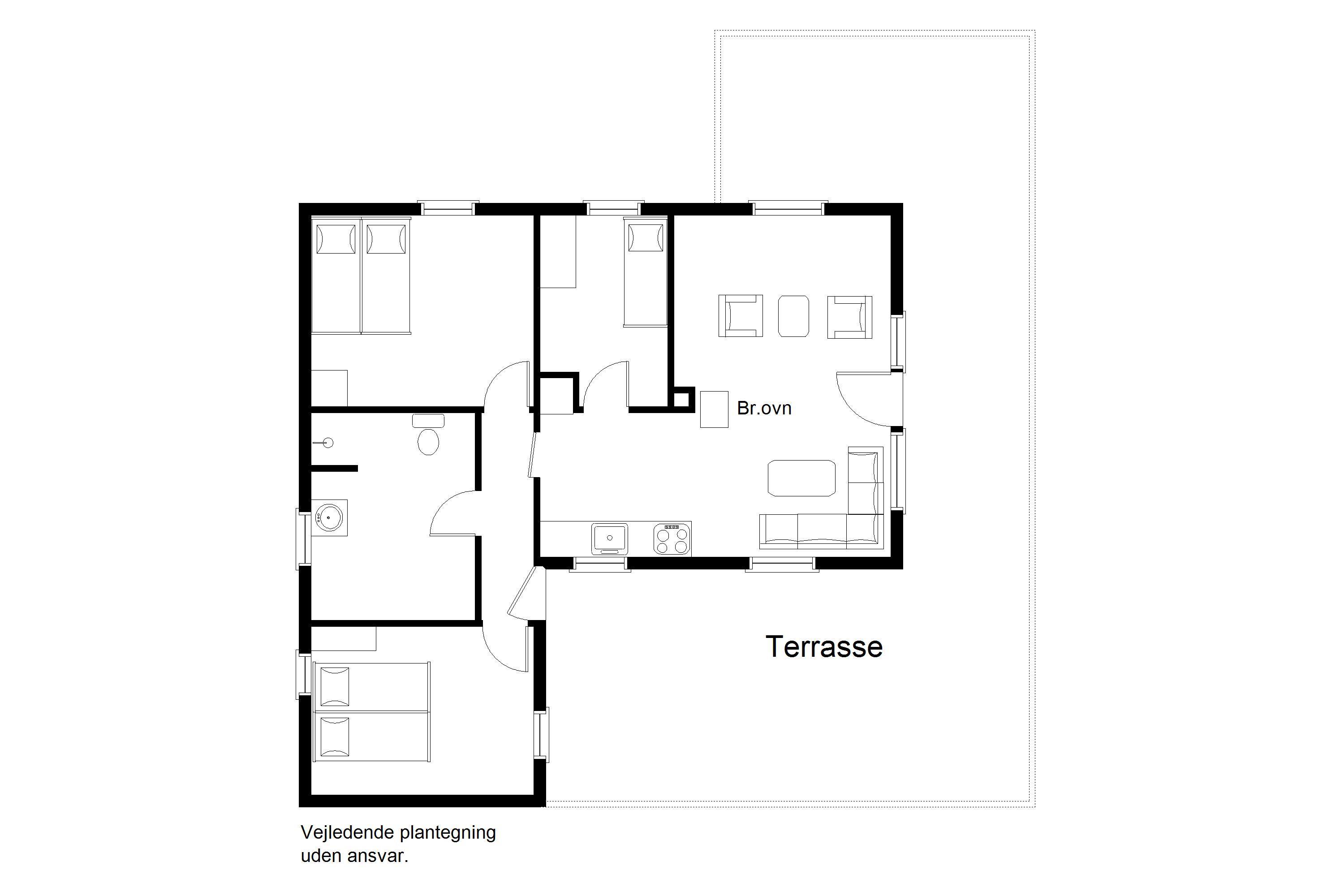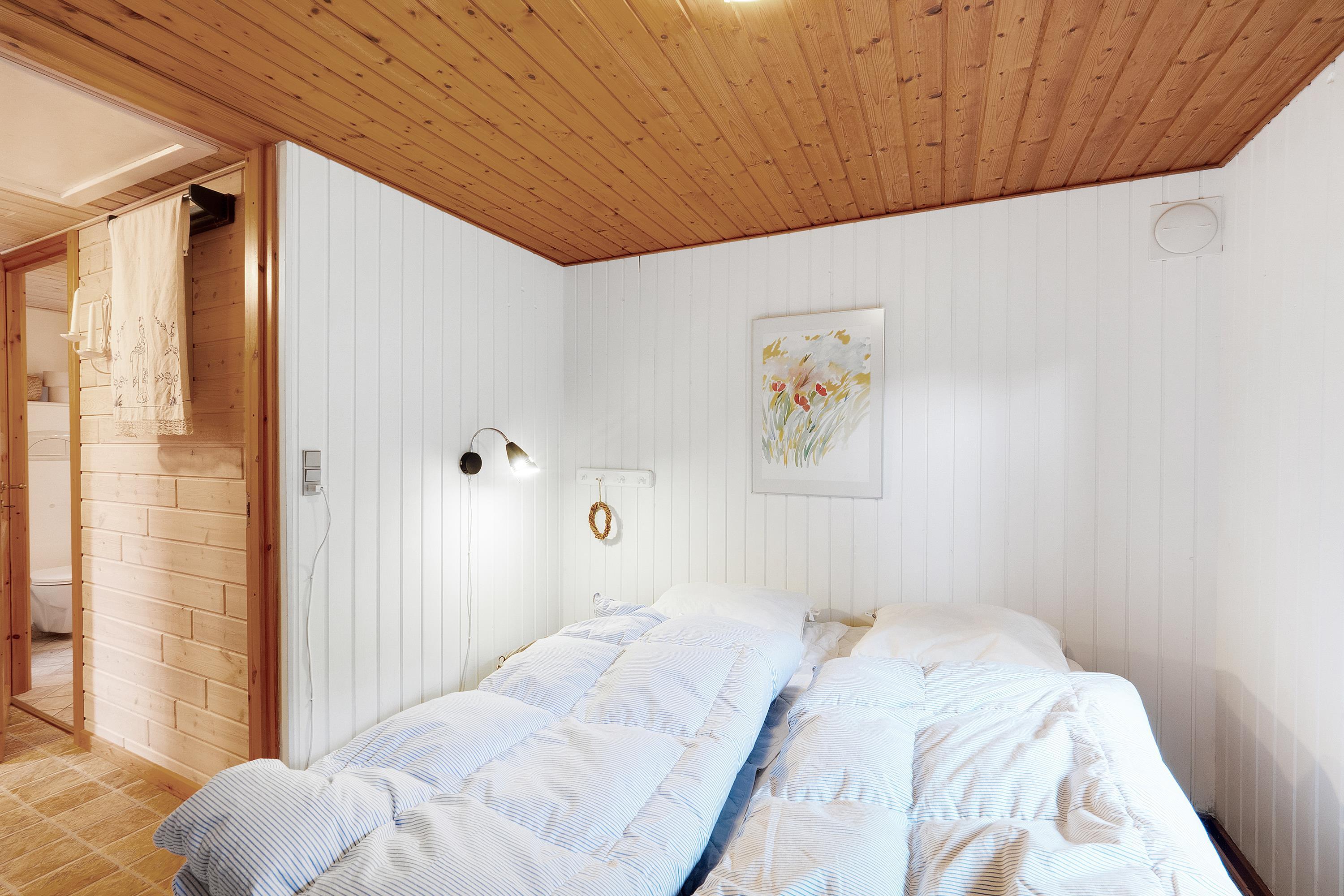 Indenfor finder du en hyggelig stue med trægulv, brændeovn og fjernsyn, hvor I nyde sommerhuslivet med hygge og brætspil. Sommerhuset har 67 kvm fordelt på tre værelser: to værelser med dobbeltseng og et værelse med køjeseng – ideelt til par eller den lille familie.