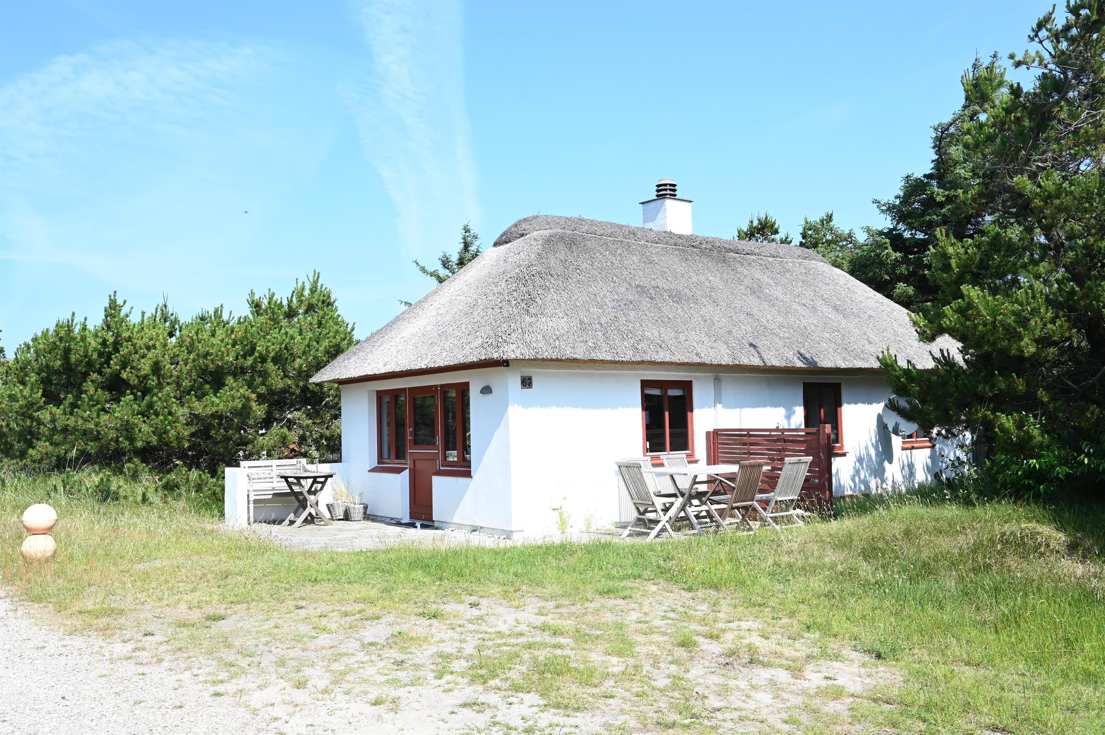 Huset har et karakteristisk stråtag og en dejlig træterrasse, hvor du kan nyde de solrige dage eller de lune sommeraftener i fredelige omgivelser. Det er et hus med masser af charme og sjæl.
