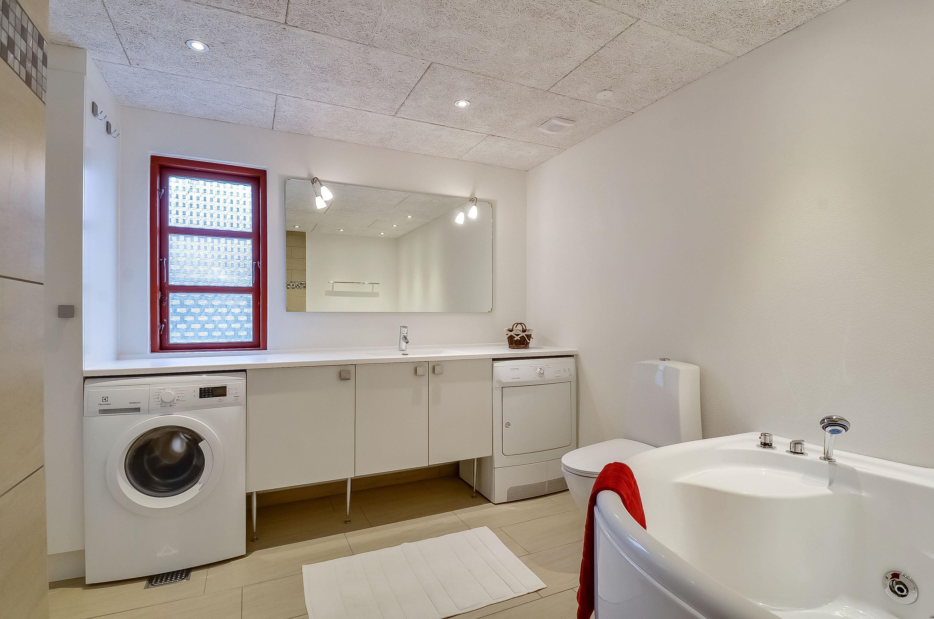 For at sikre et behageligt indeklima året rundt er huset udstyret med varmepumpe både i stueplan og på 1. sal – så du altid kan nyde den perfekte temperatur, uanset årstid.