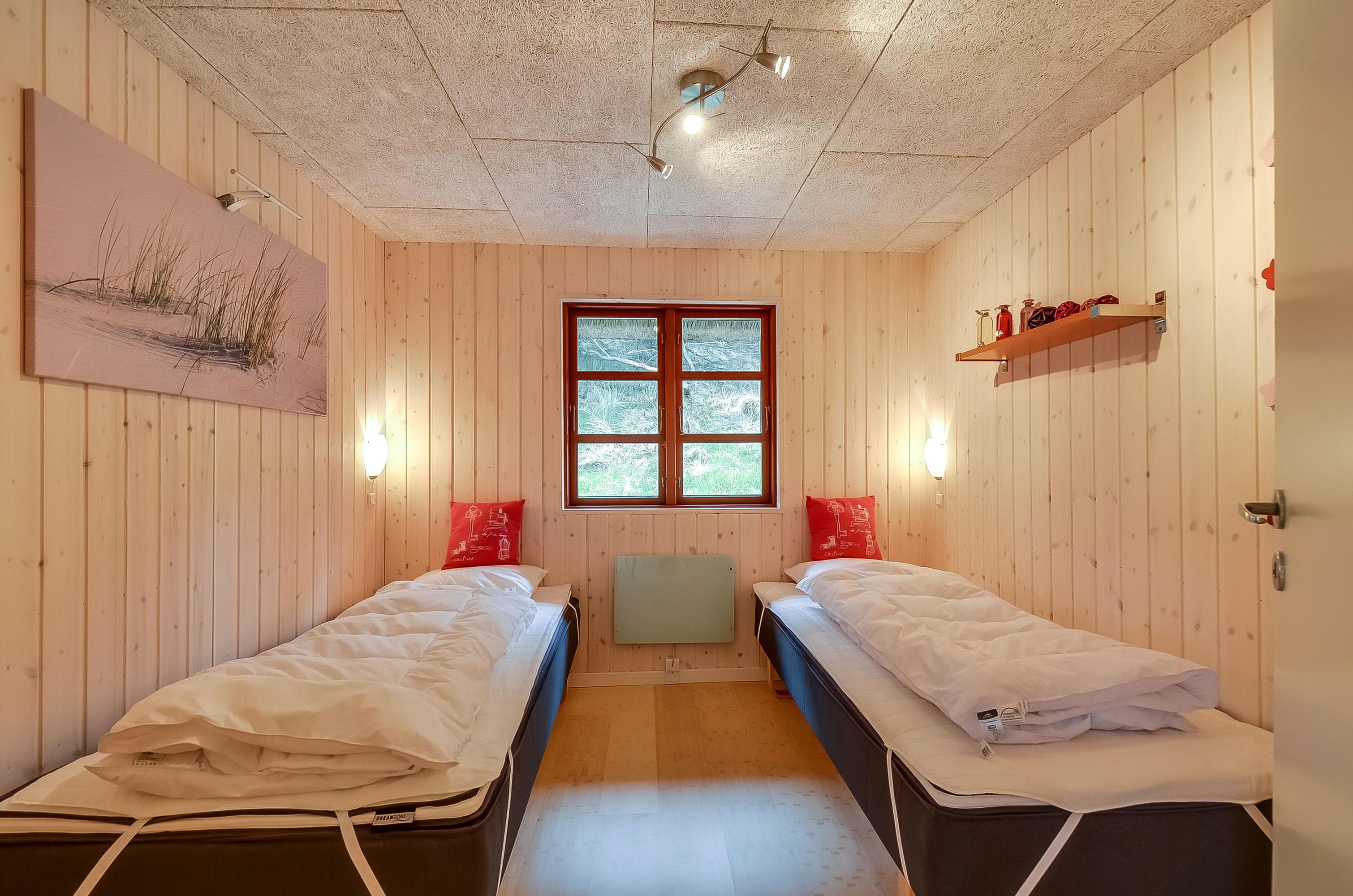 Når du træder ind i huset, mødes du af en indbydende entré med trappe til 1. sal. I stueplan finder du et rummeligt soveværelse med dobbeltseng samt et værelse med to enkeltsenge – perfekt til børnene eller gæsterne.