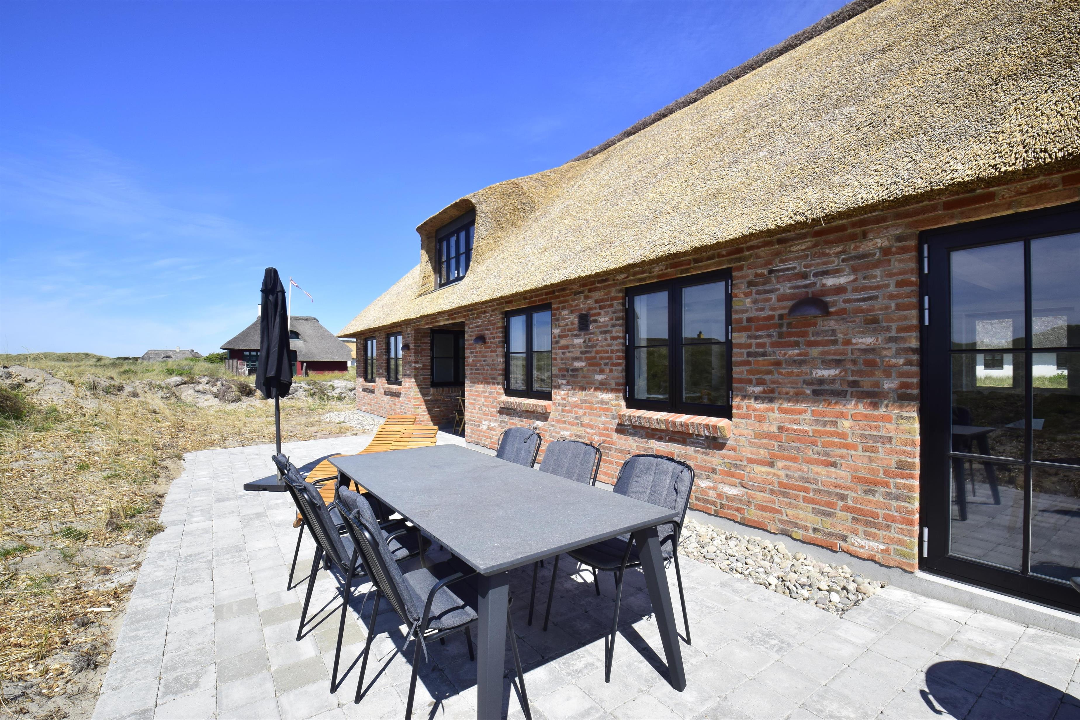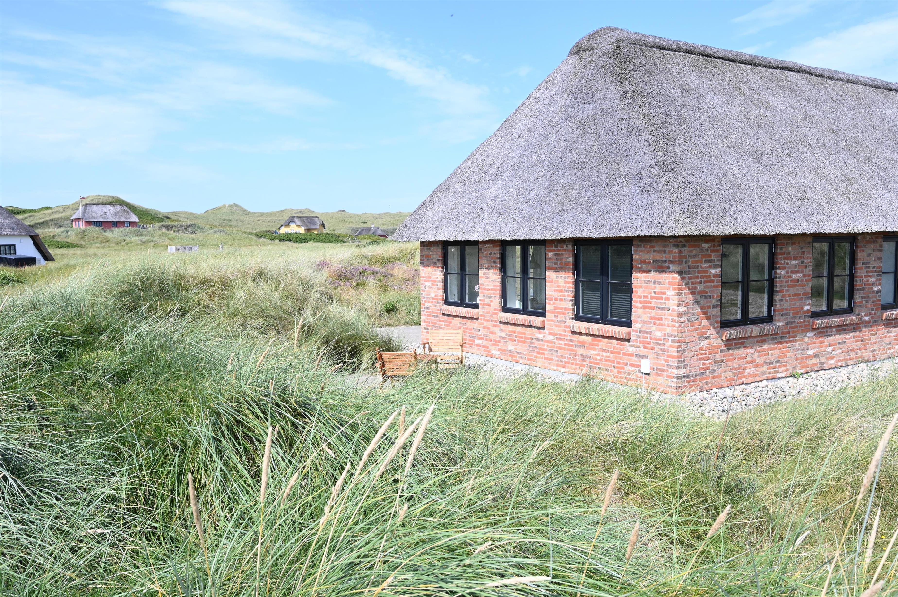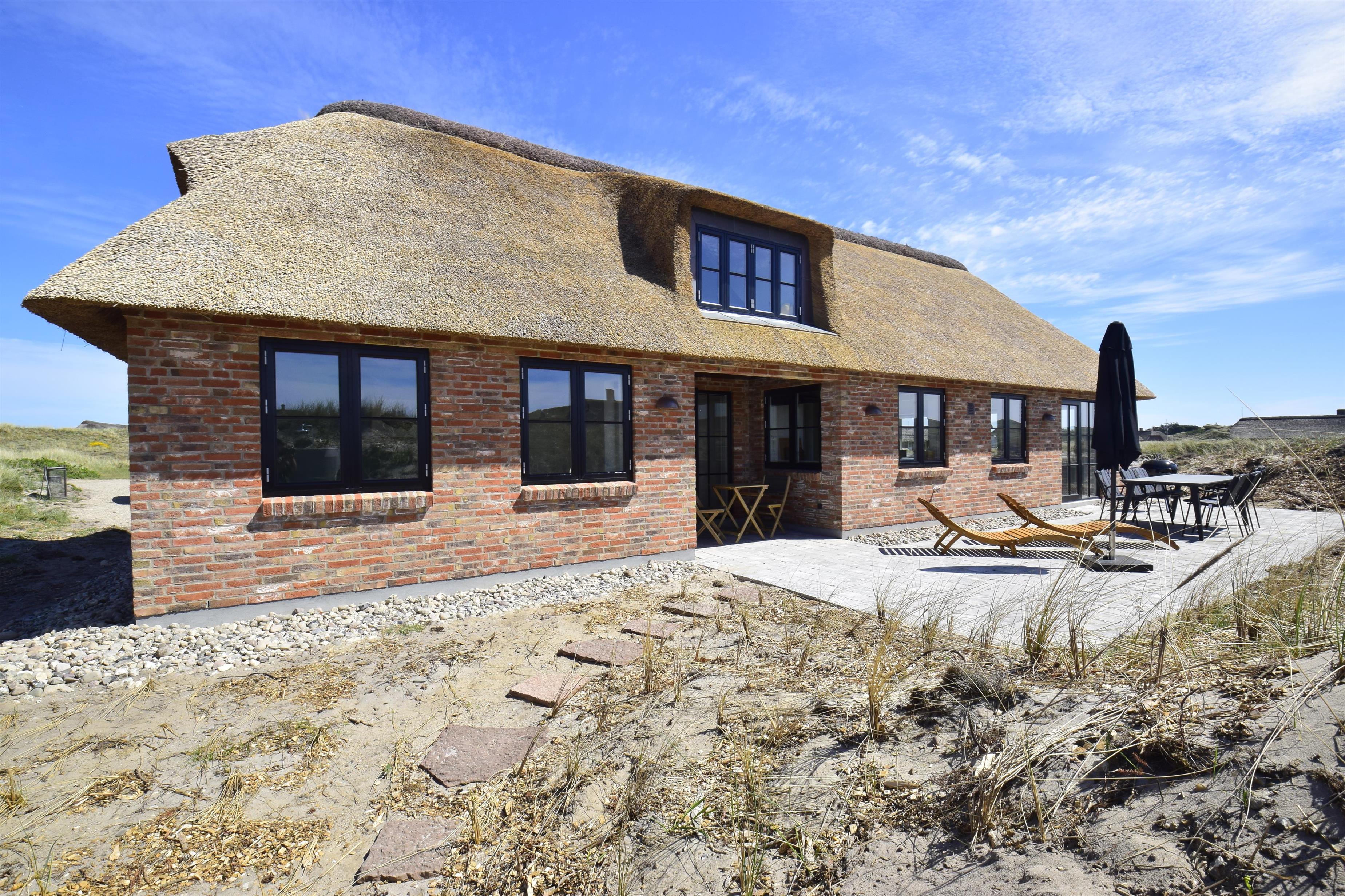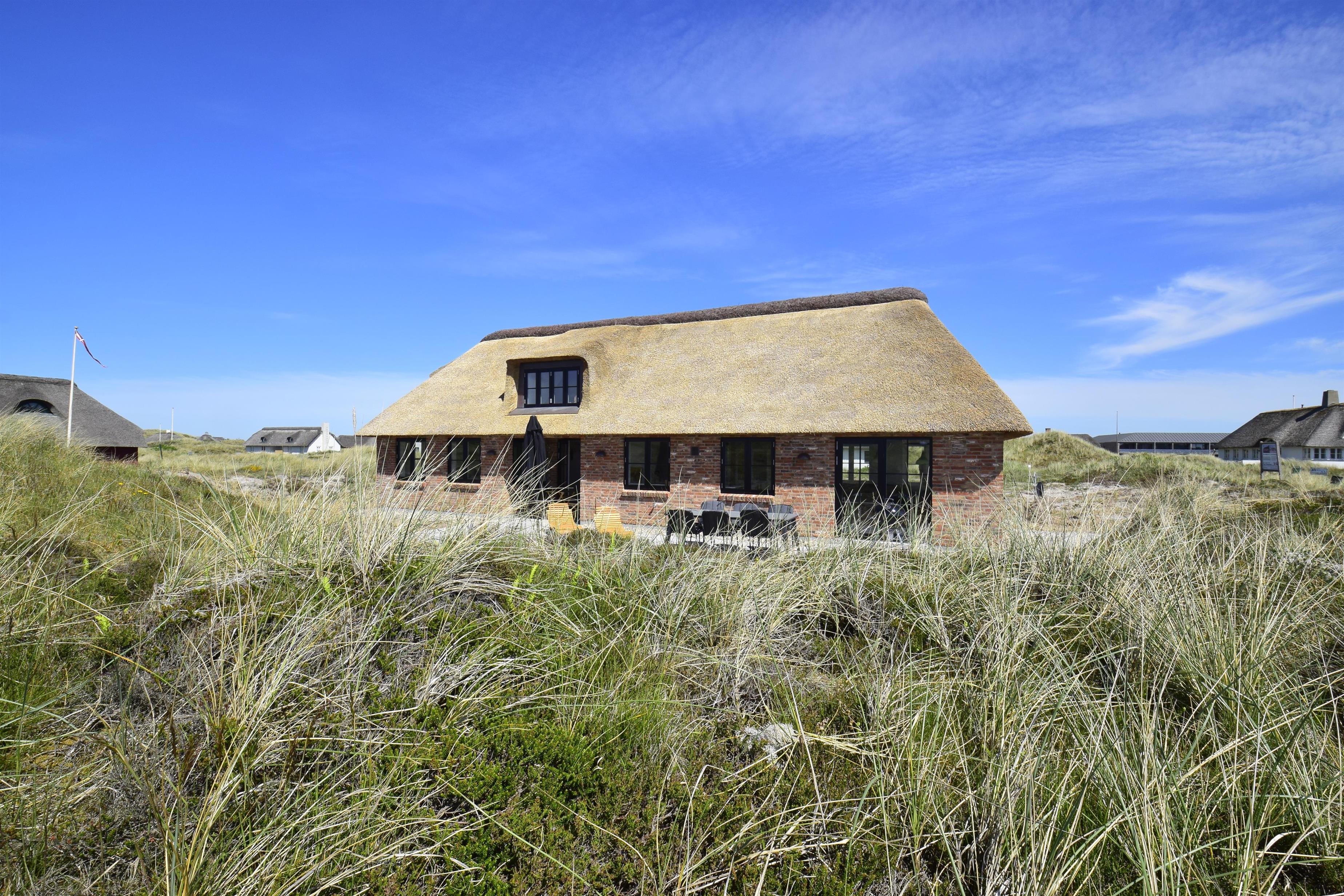 På en smuk 2.420 kvm. klitgrund i det gamle Vedersø Klit, kan du nu leje dette flotte feriehus med udsigt til Sømærket og kun 350 meter fra vandkanten. Huset er bygget i kvalitetsmaterialer, hvor byggestilen er tilpasset de oprindelige autentiske feriehuse ved Vedersø Klit. Huset indeholder alt det der skal for at skabe rammerne til en afslappet ferie i naturskønne omgivelser. Udsigten til de naturskabte klitter kan nydes både fra værelser, stue, køkken og badekar.