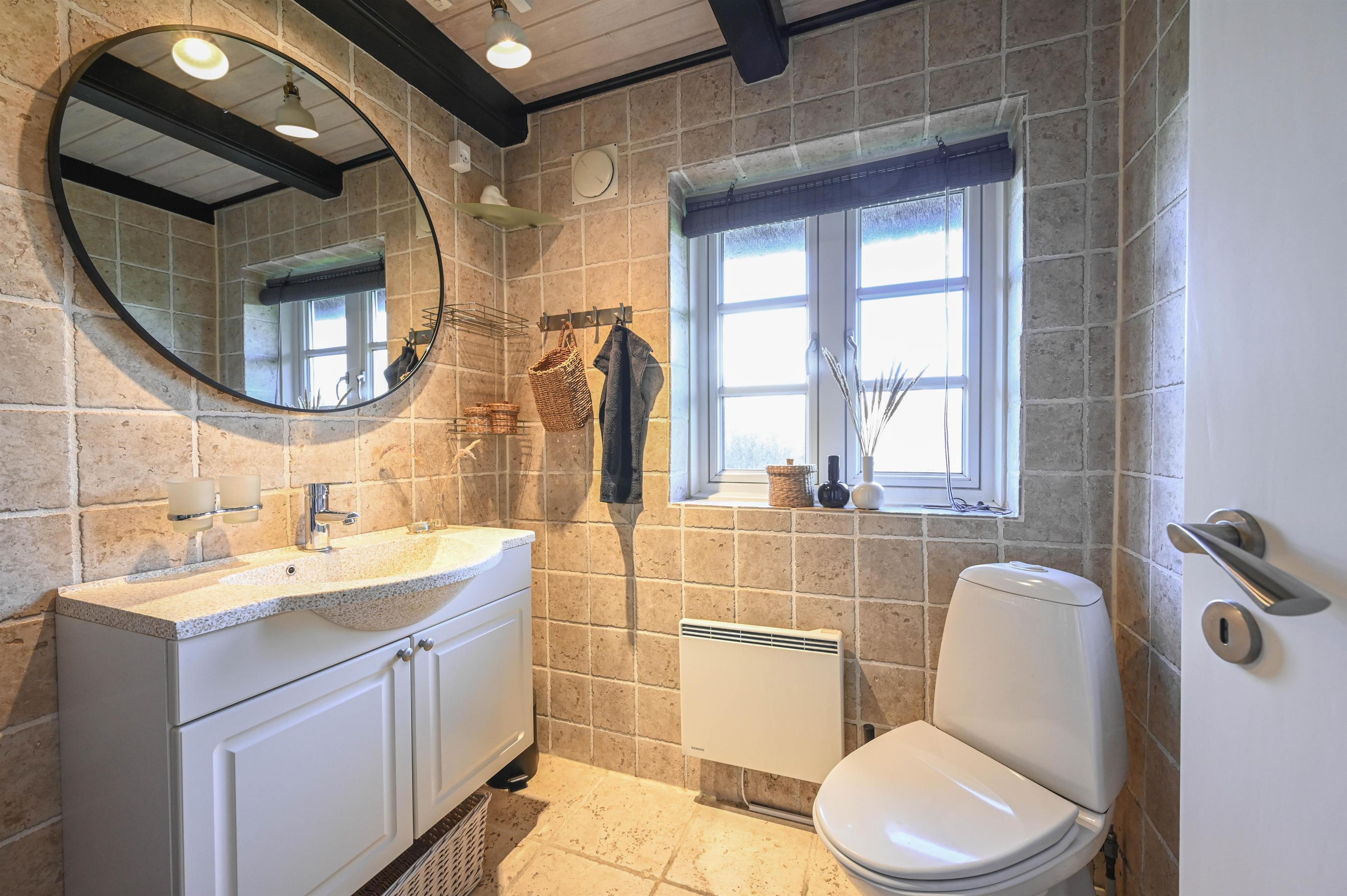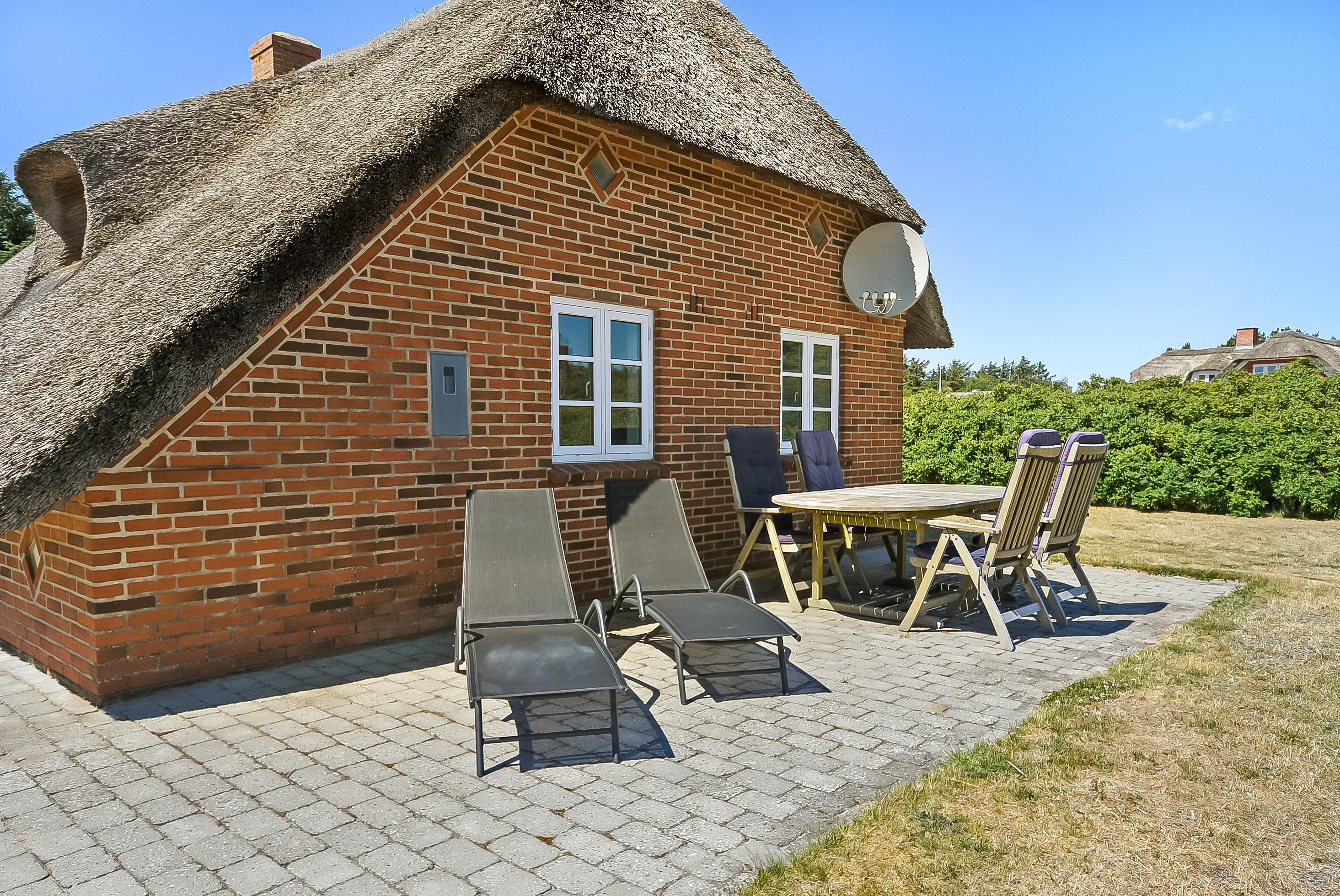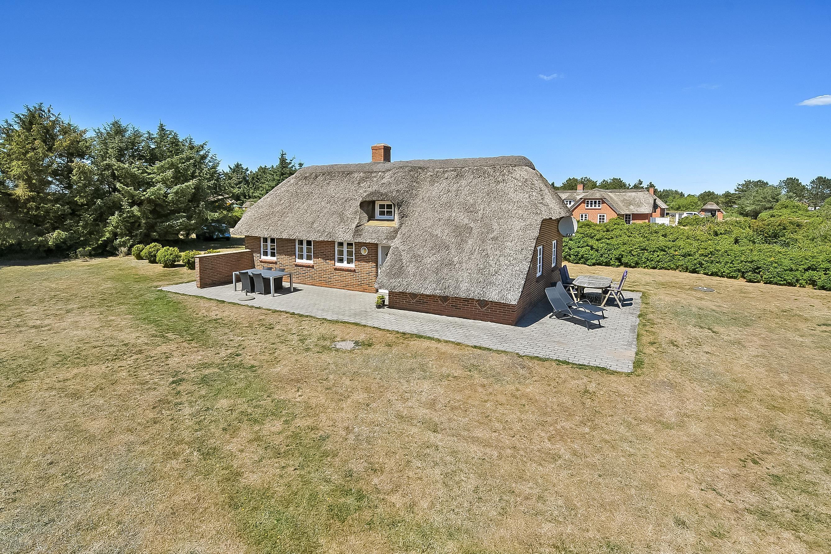 Kun 800 meter fra det brusende Vesterhav, midt i den smukke vestjyske natur, ligger dette charmerende murstenshus med stråtag – et feriehus med sjæl, varme og klassisk dansk atmosfære.