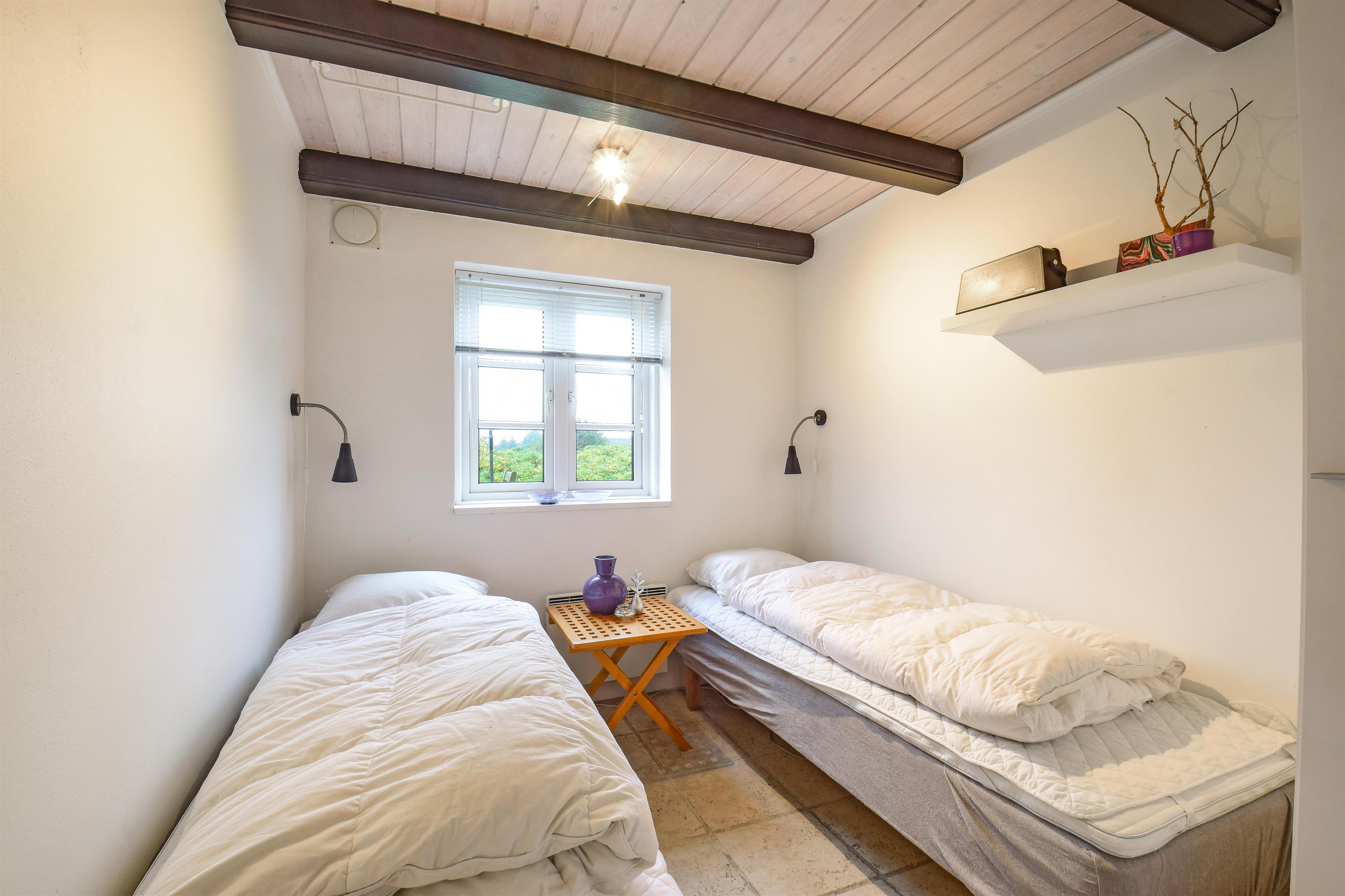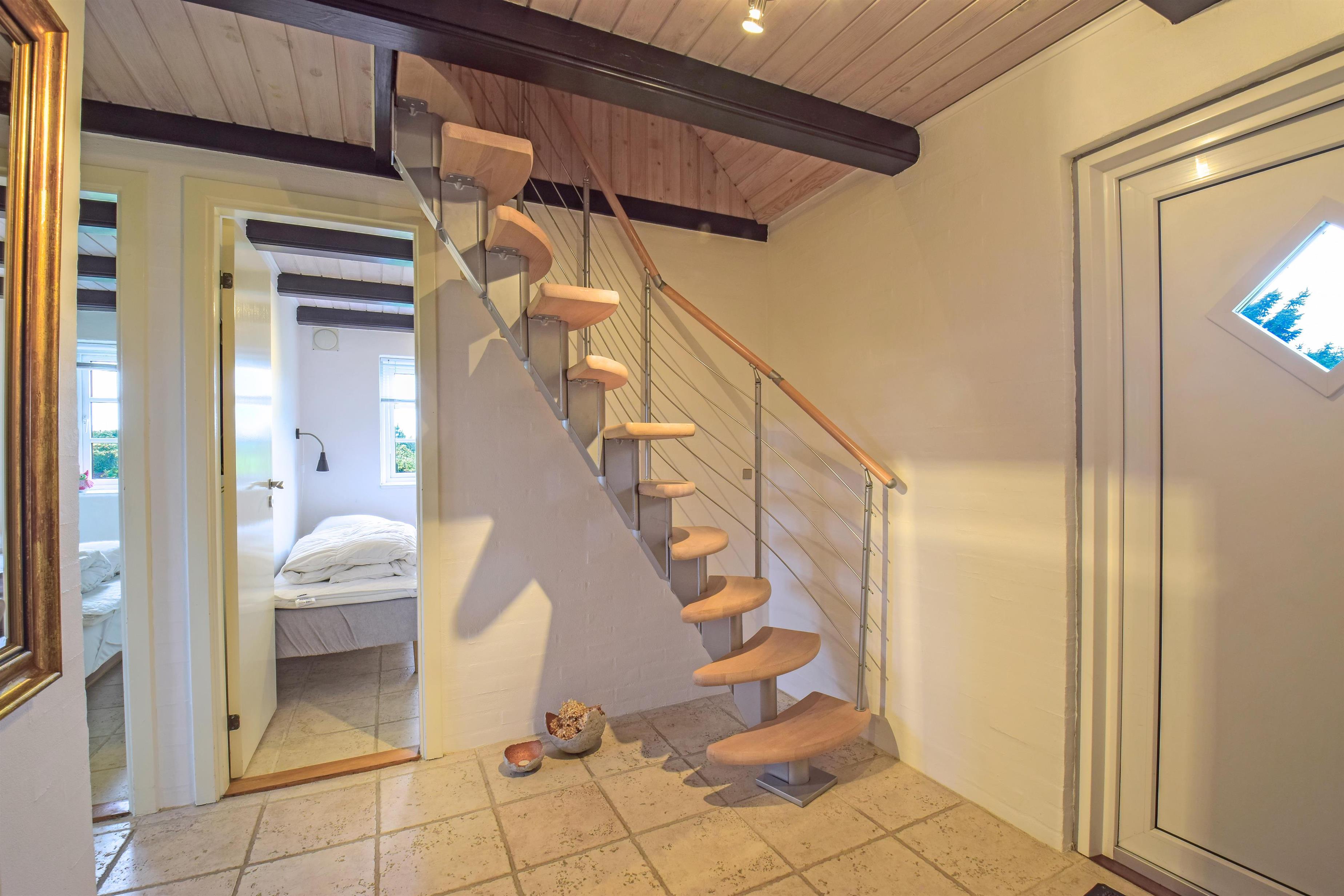 Ved ankomsten mødes I af en stor og praktisk entré med trappe til første sal, hvor der ligger et lyst værelse med to enkeltsenge – ideelt til gæster eller som ekstra soveplads.