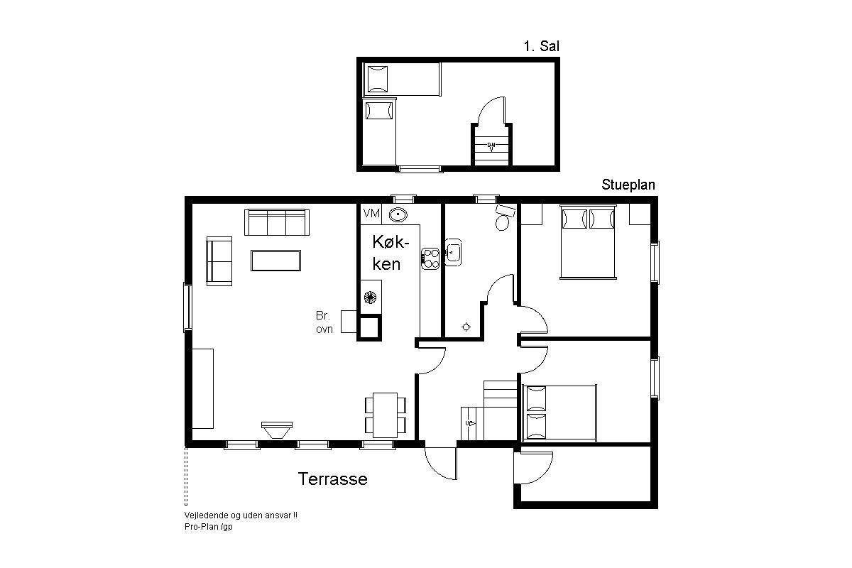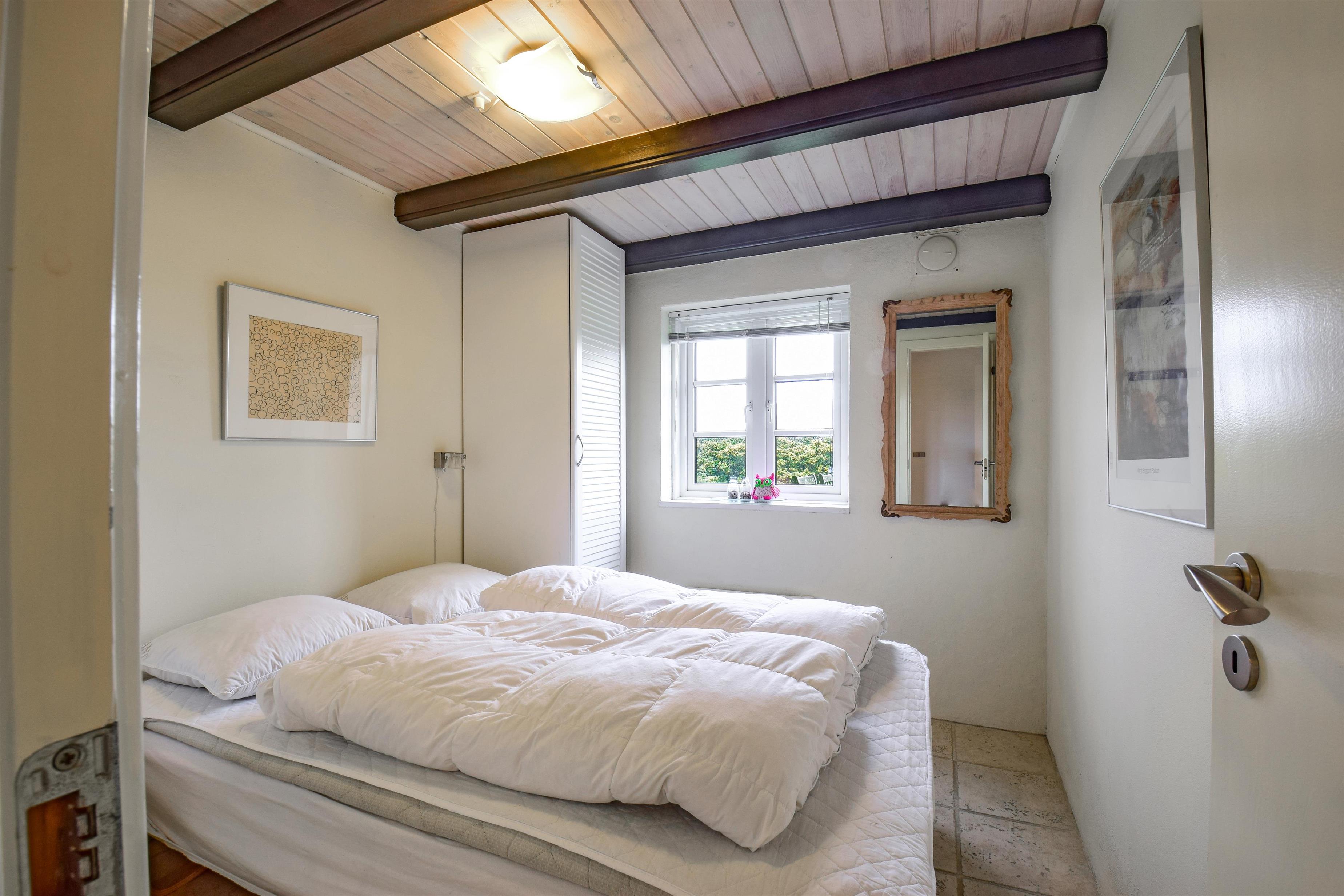 Derudover byder huset på et flot badeværelse med brusehjørne samt to gode soveværelser med dobbeltsenge.